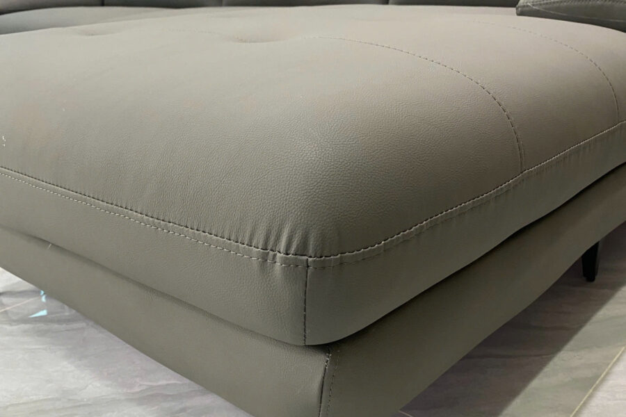 Ánh xám giúp bề mặt da trông mềm mại và mượt mà hơn, làm nổi bật thiết kế phân tầng của sofa.