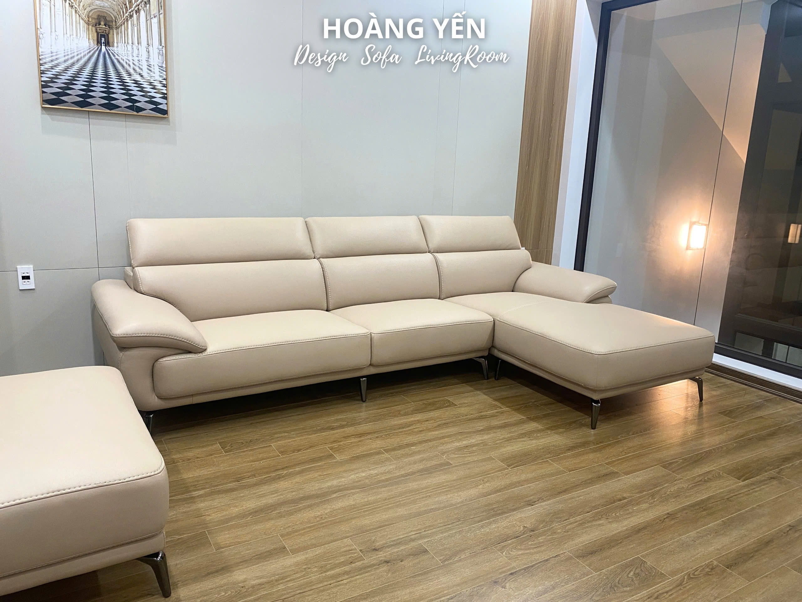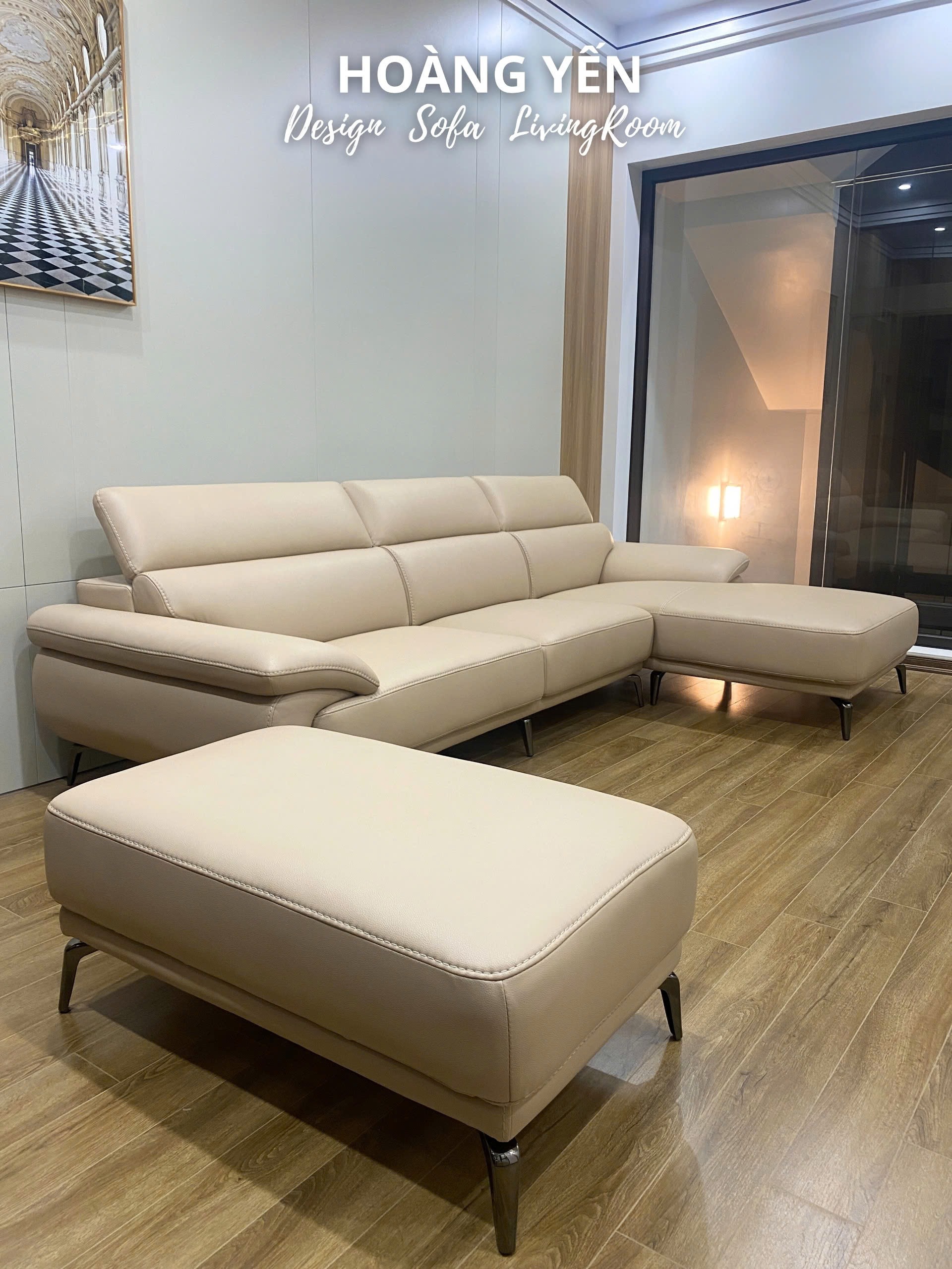 Kích thước: góc L 3*1.8m và đôn to 60*100