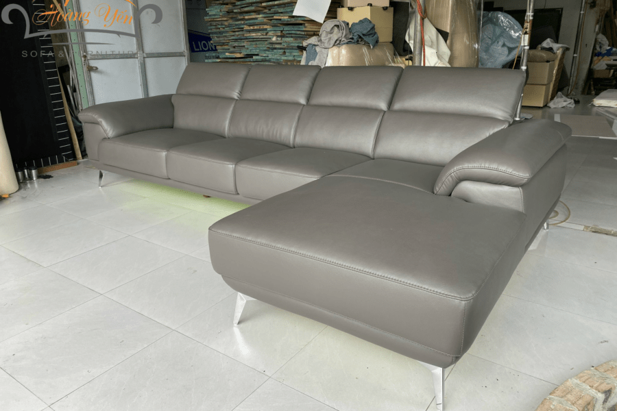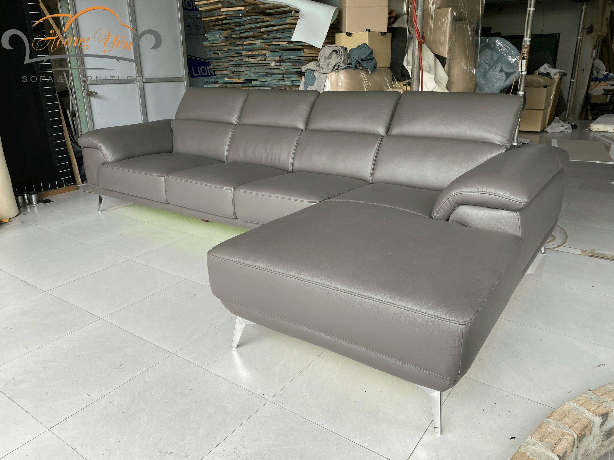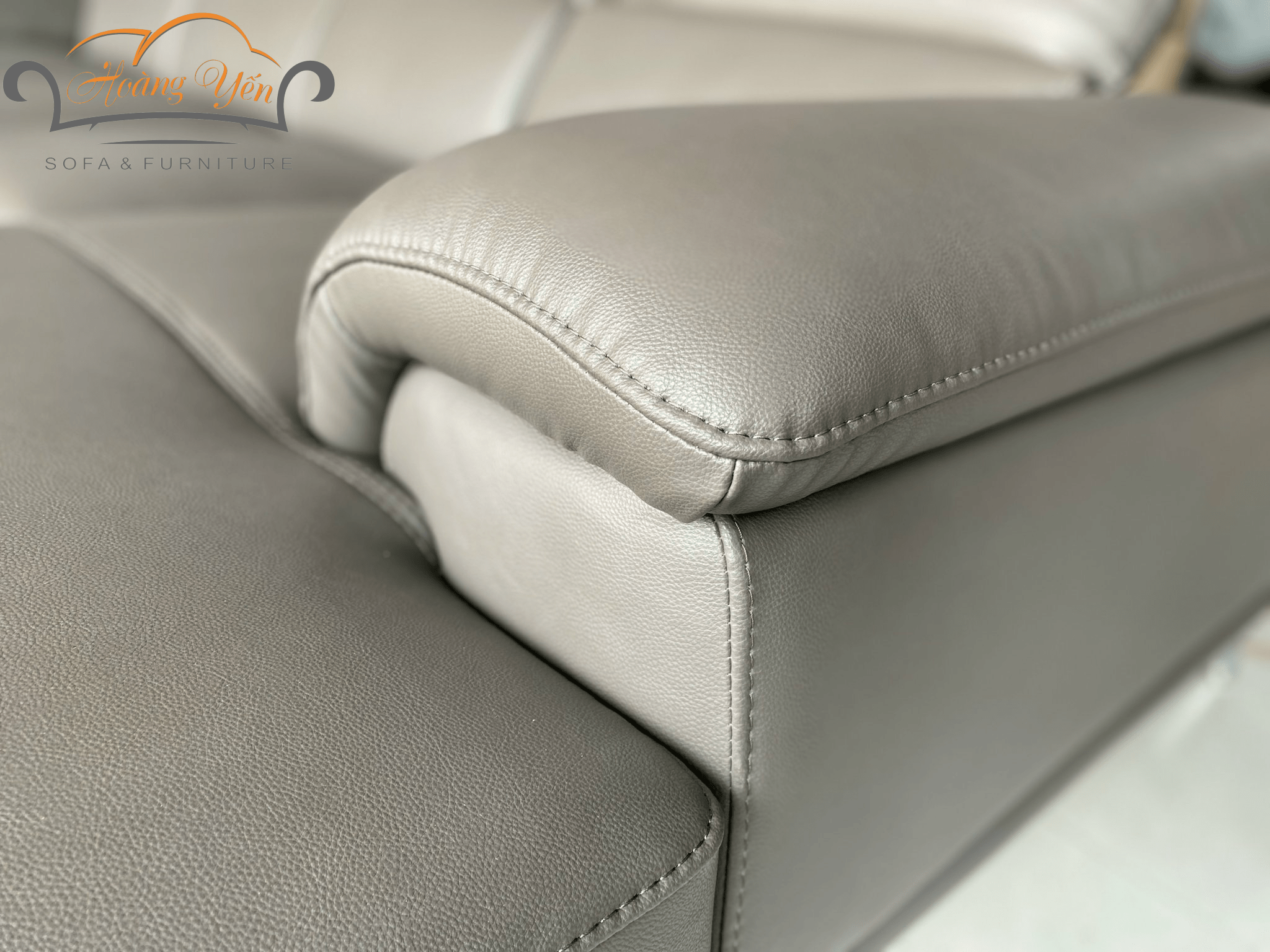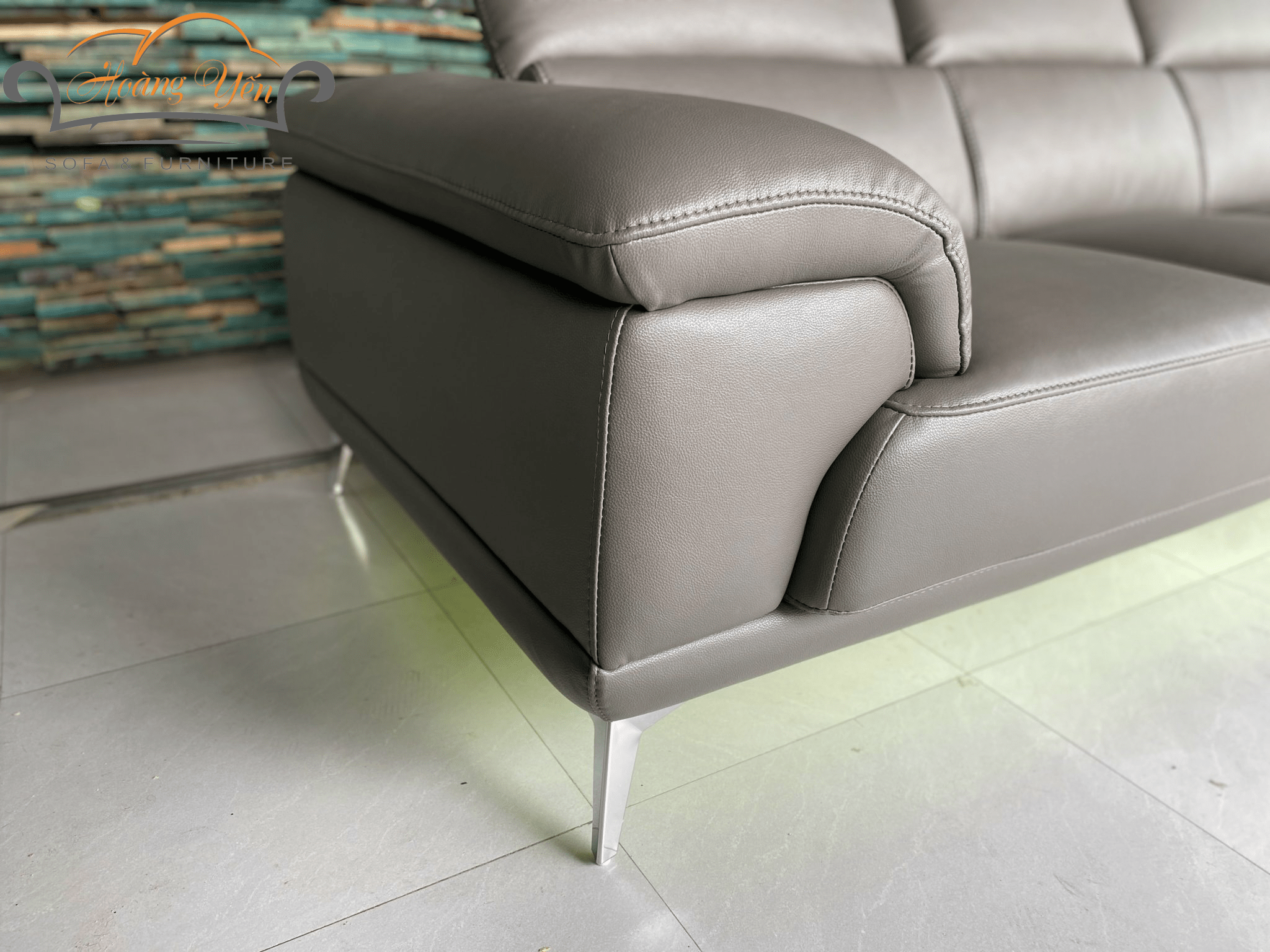 Bộ sofa da HY372 màu ghi với kích thước 350*180, được làm bằng dòng da cao cấp 2 lớp NANO có giá là 28.000.000.