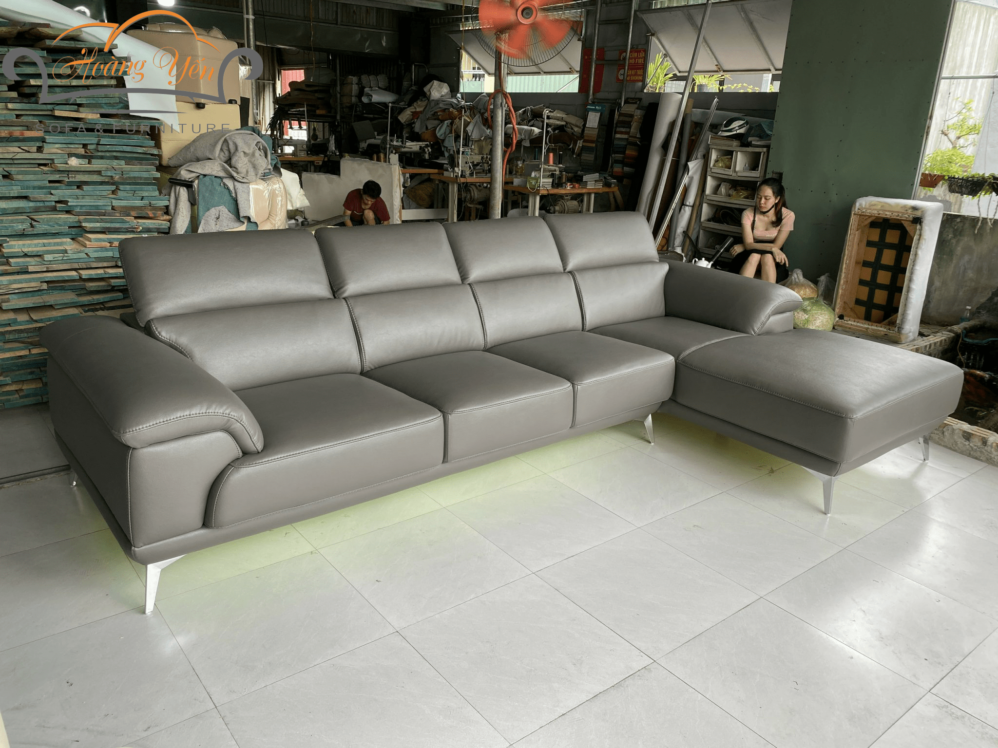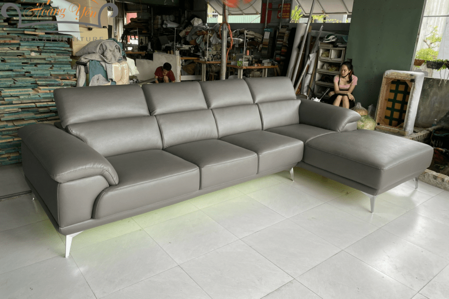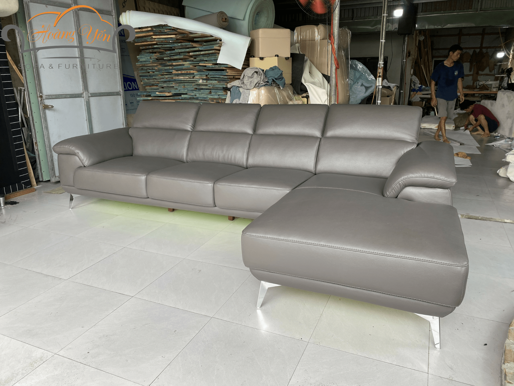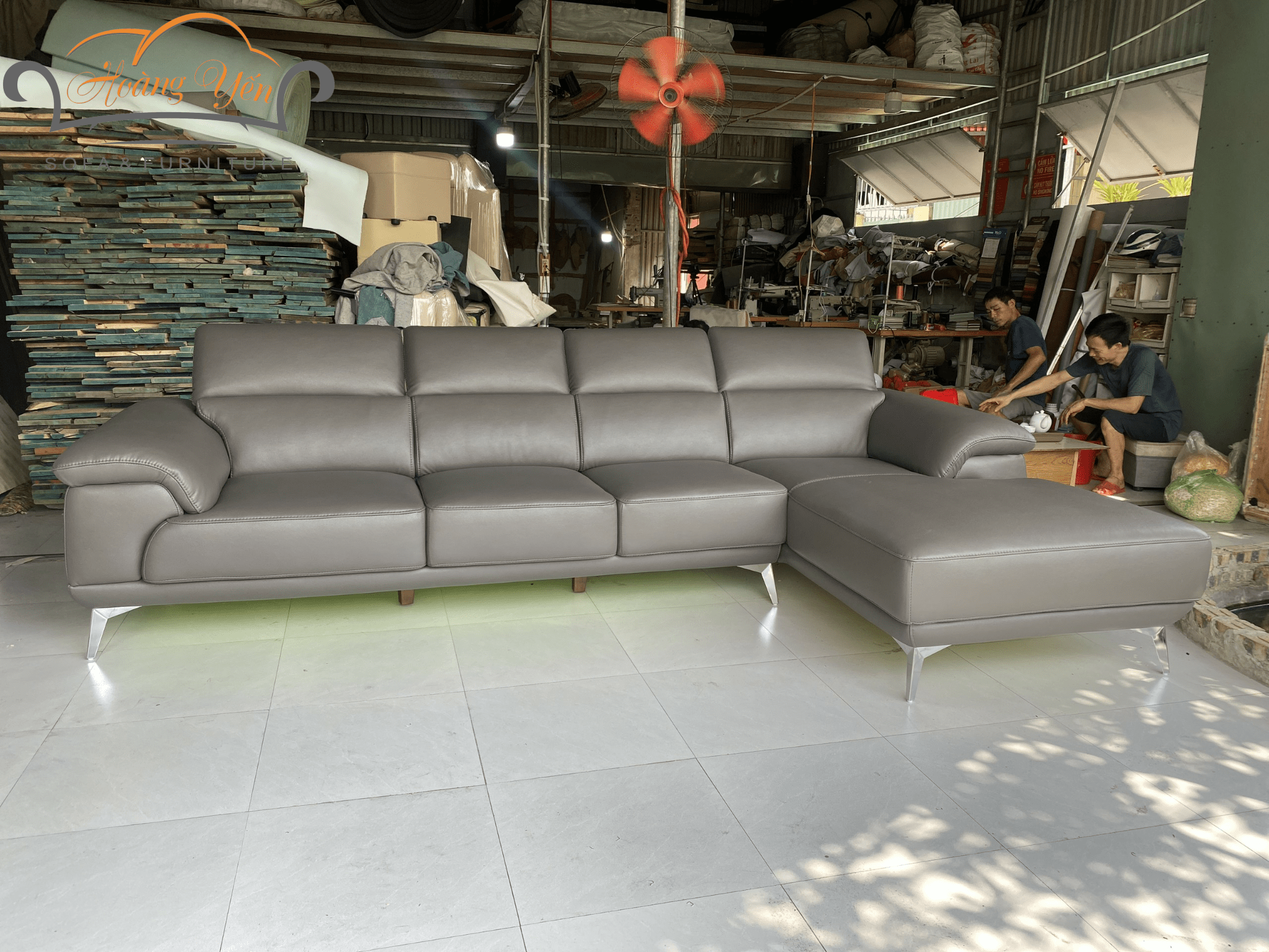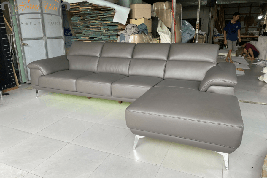 Bộ sofa da HY372 màu ghi với kích thước 350*180, được làm bằng dòng da cao cấp 2 lớp NANO có giá là 28.000.000.