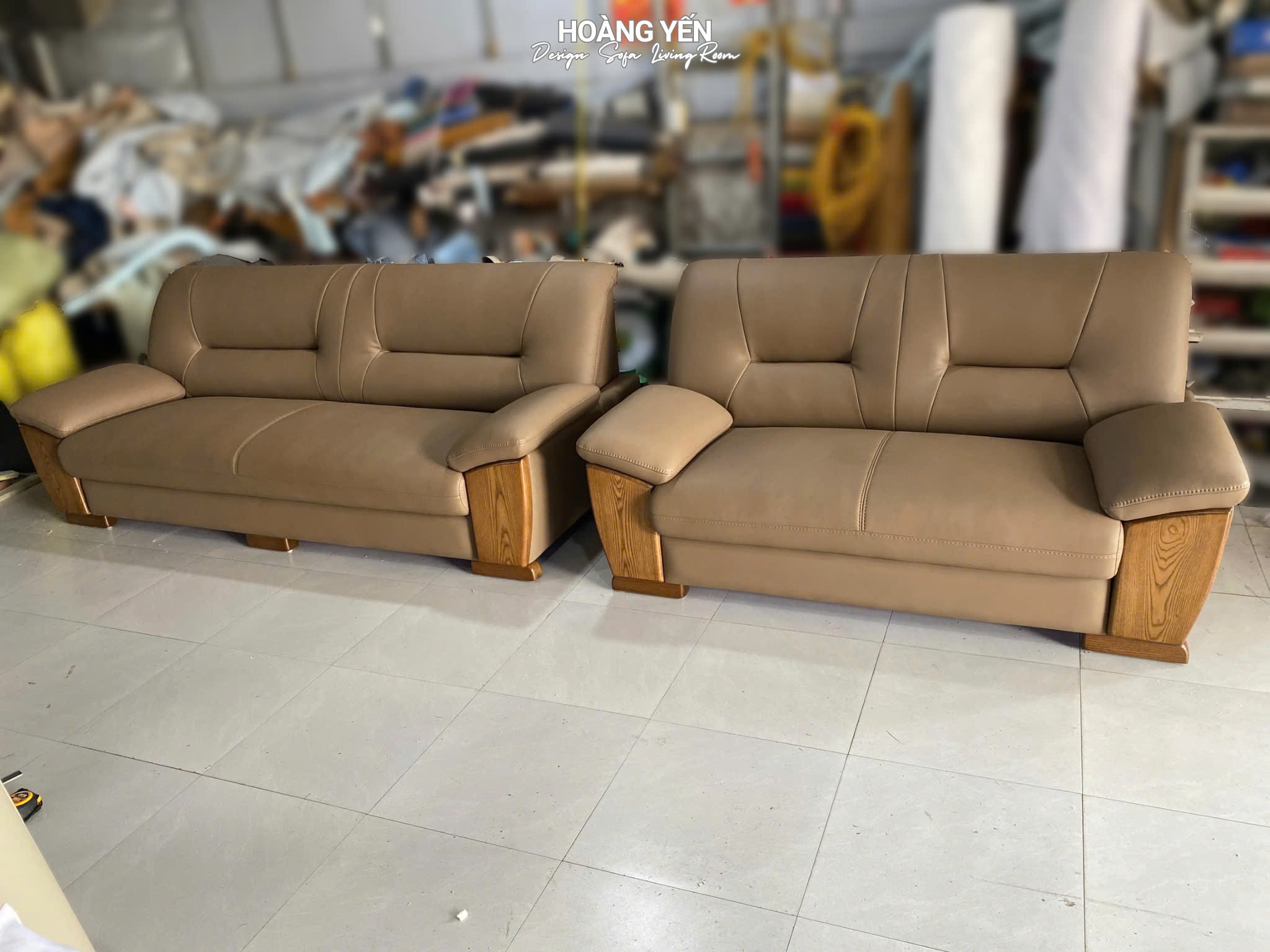 2. Vật liệu sản xuất sofa khi bàn giao SHY378 màu nâu nhạt.