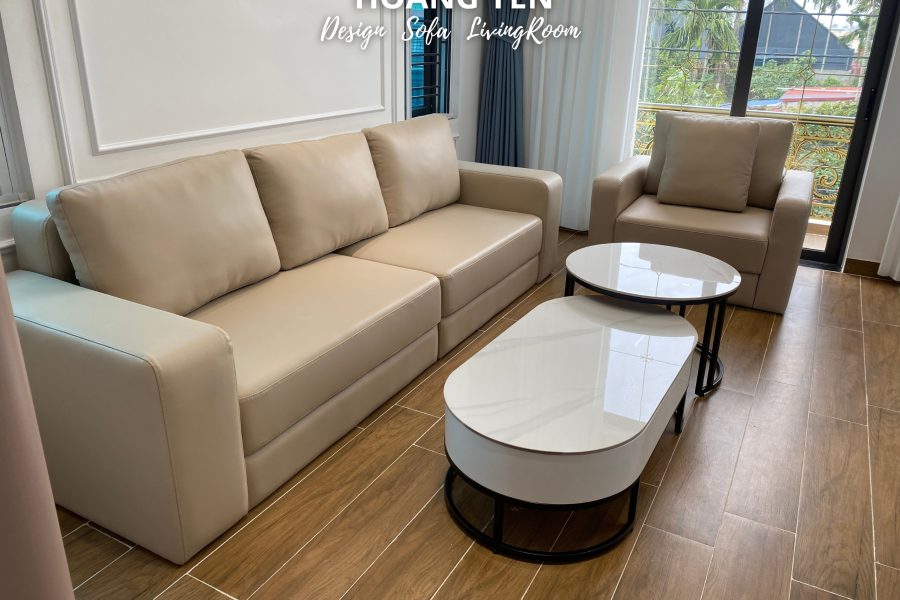 Bàn giao sofa da phòng khách SHY413 với gam màu kem trang nhã, dễ phối nội thất và giúp mở rộng không gian.