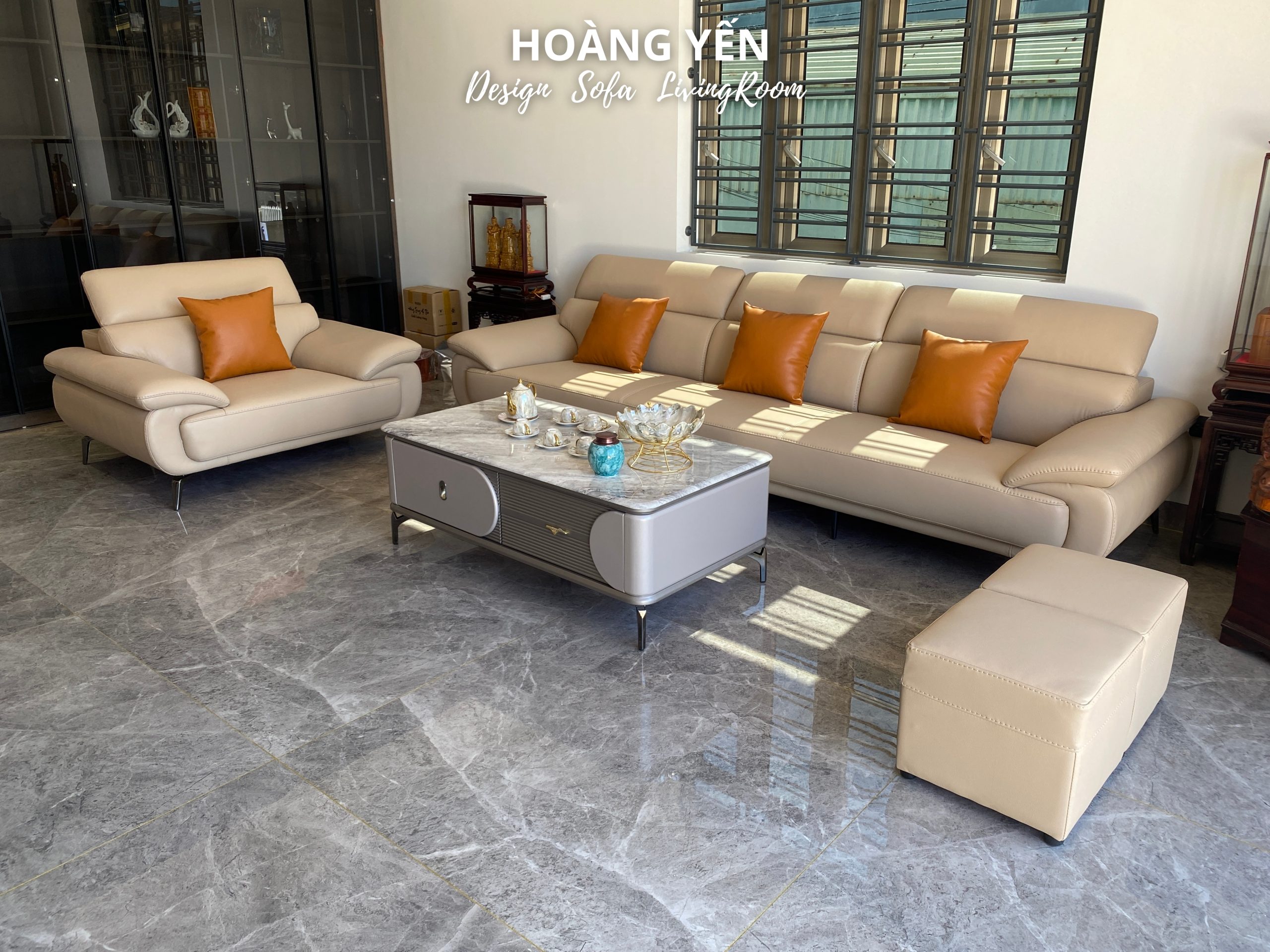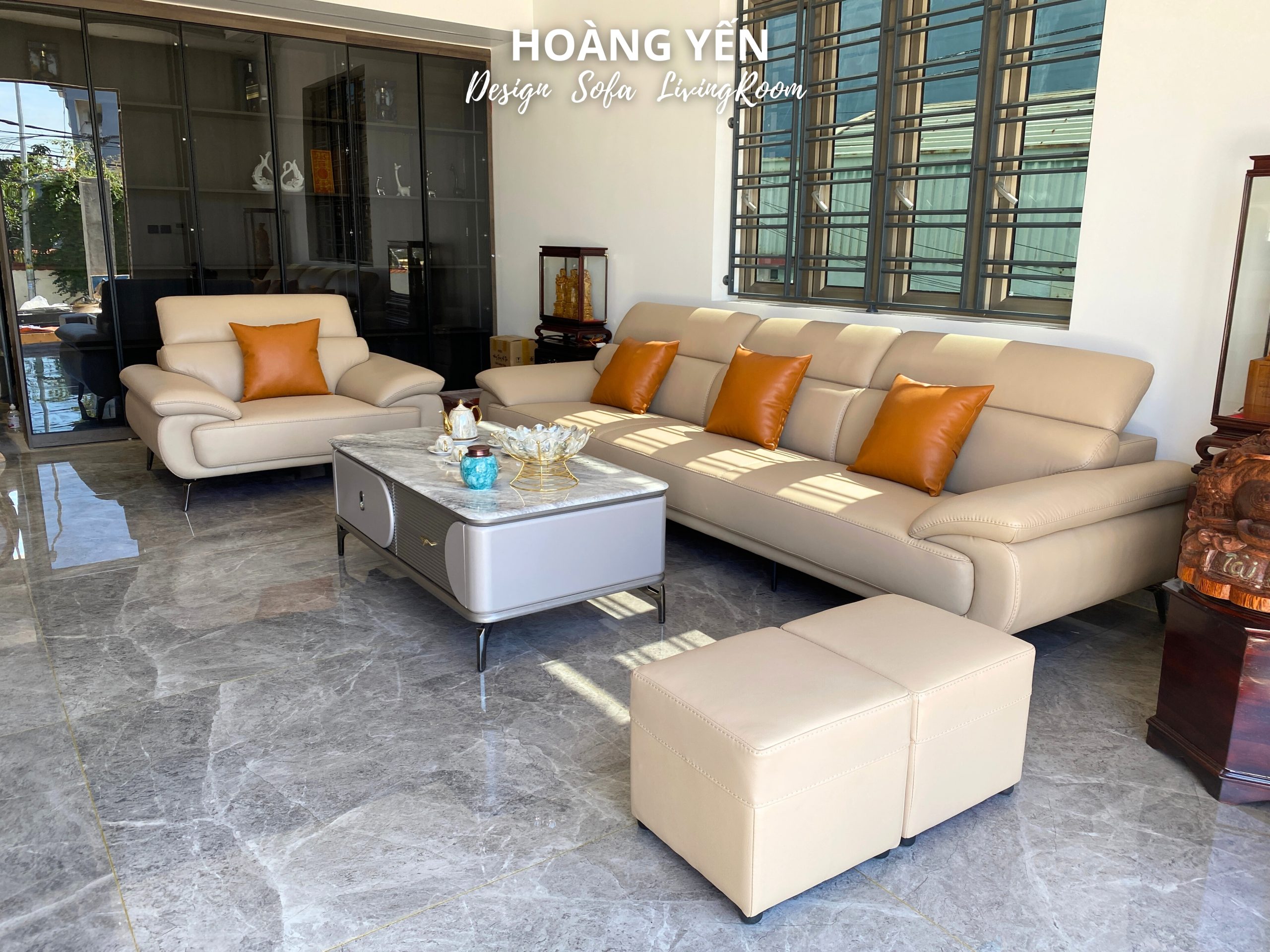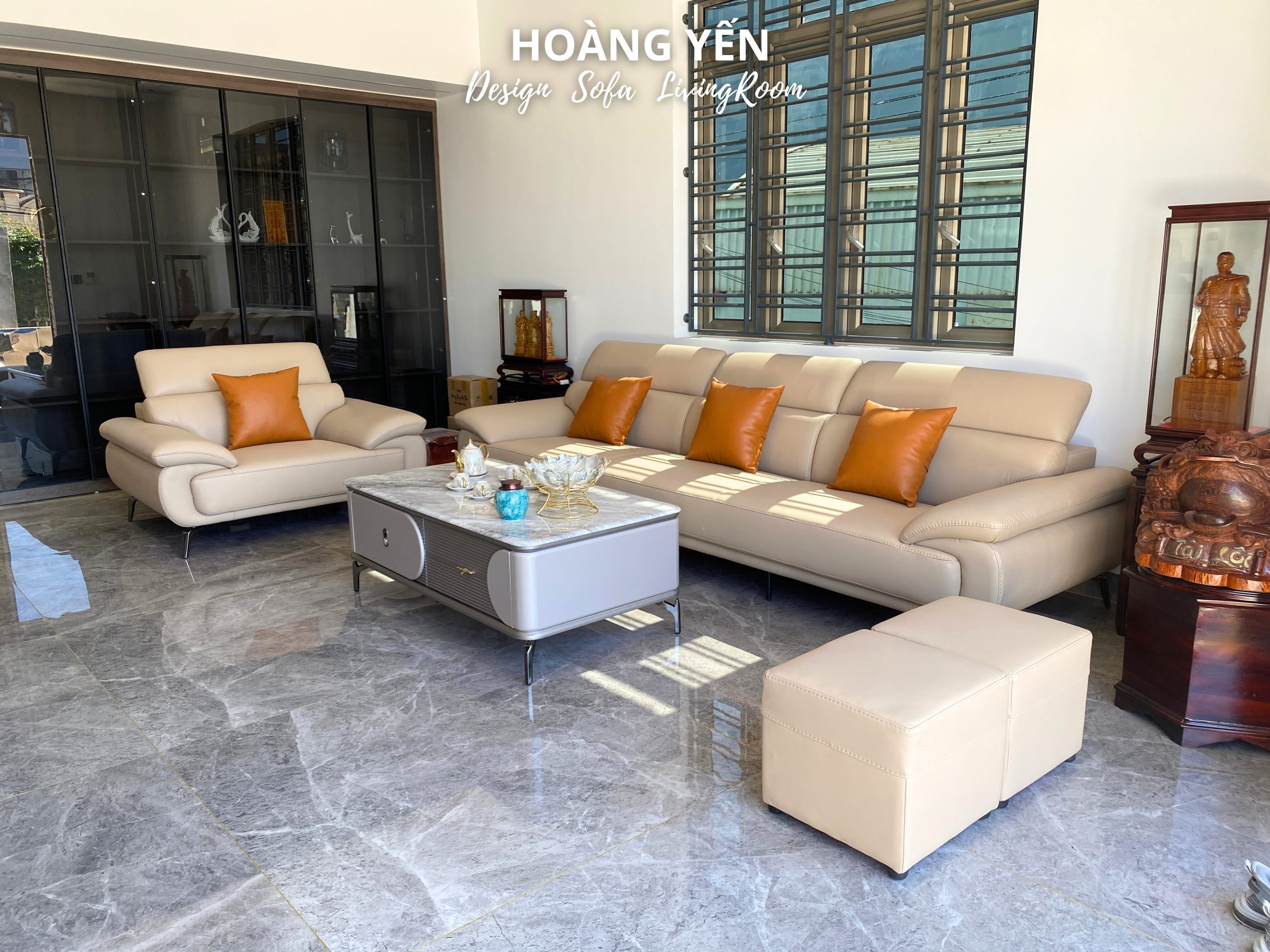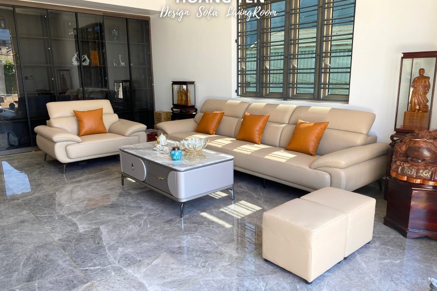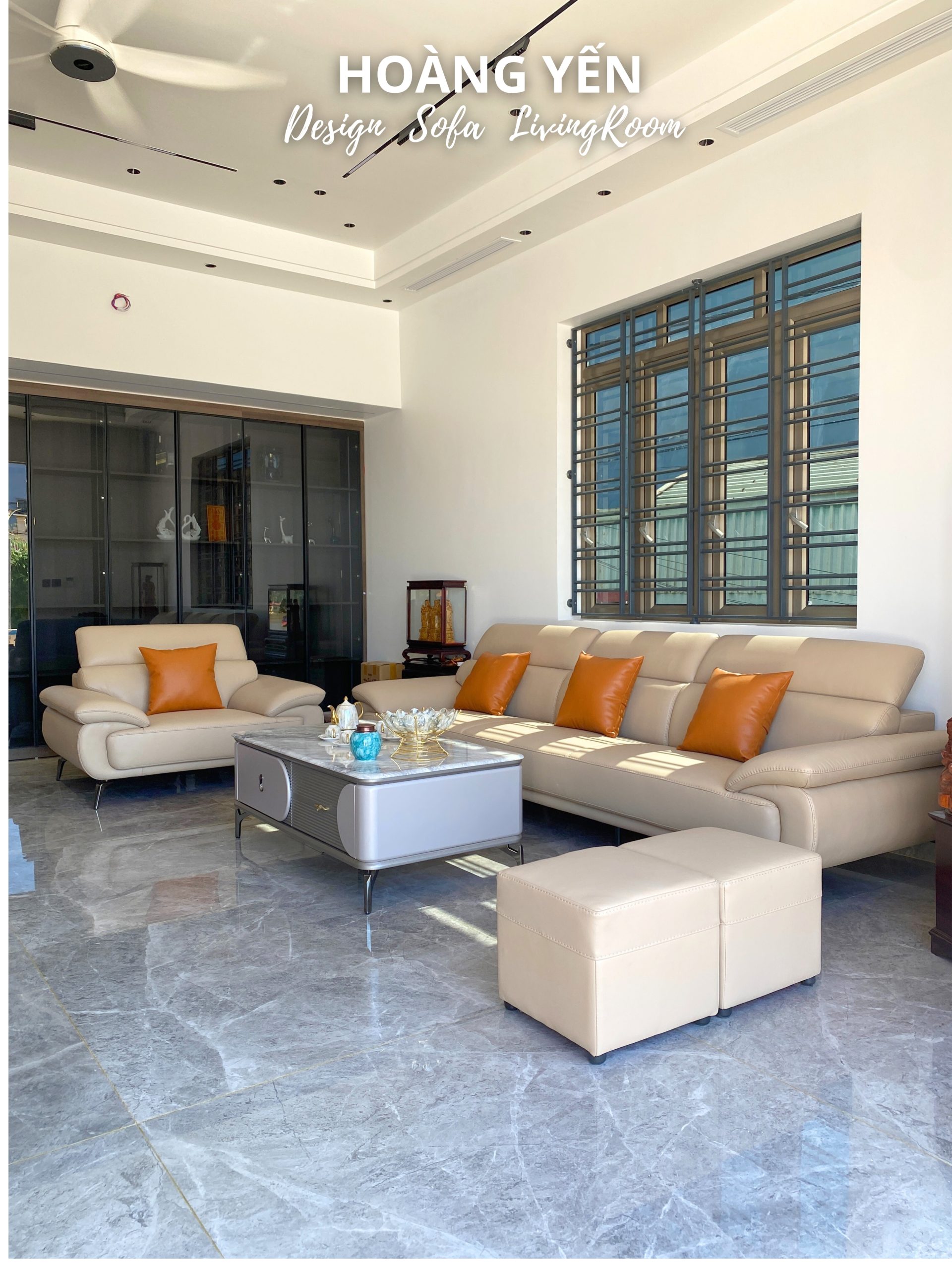 – Phong cách sofa khi bàn giao sofa da phòng khách SHY434 kem vàng: