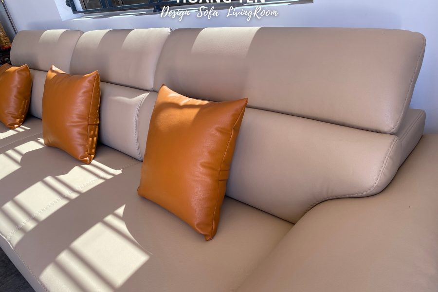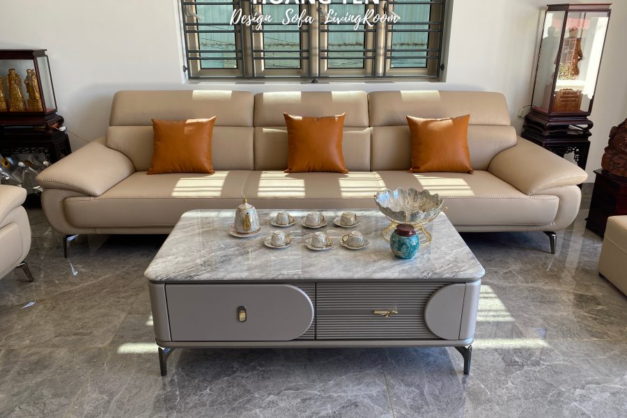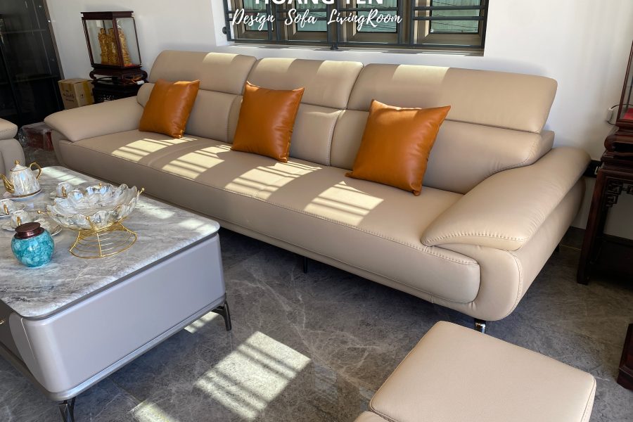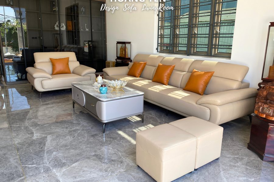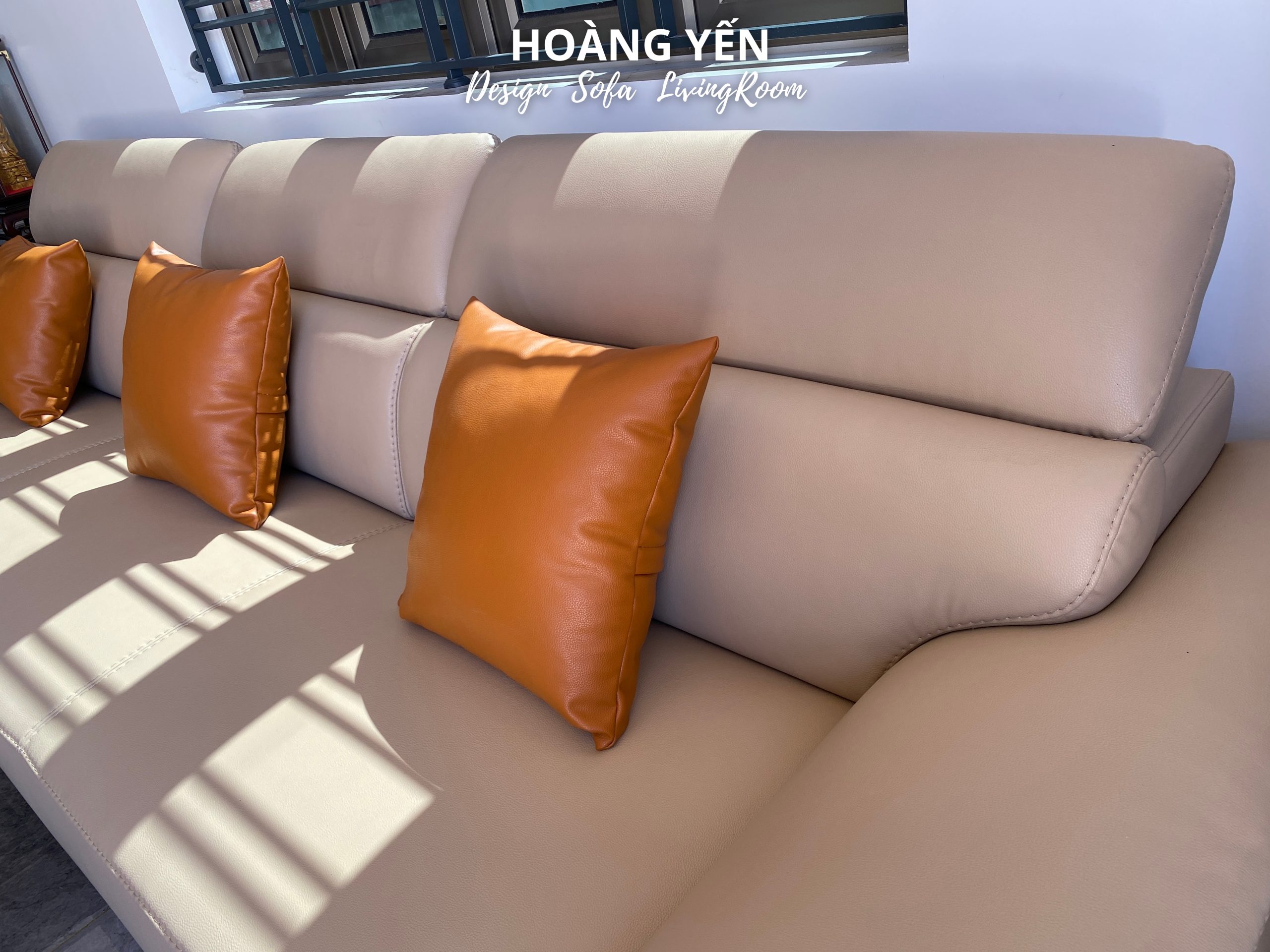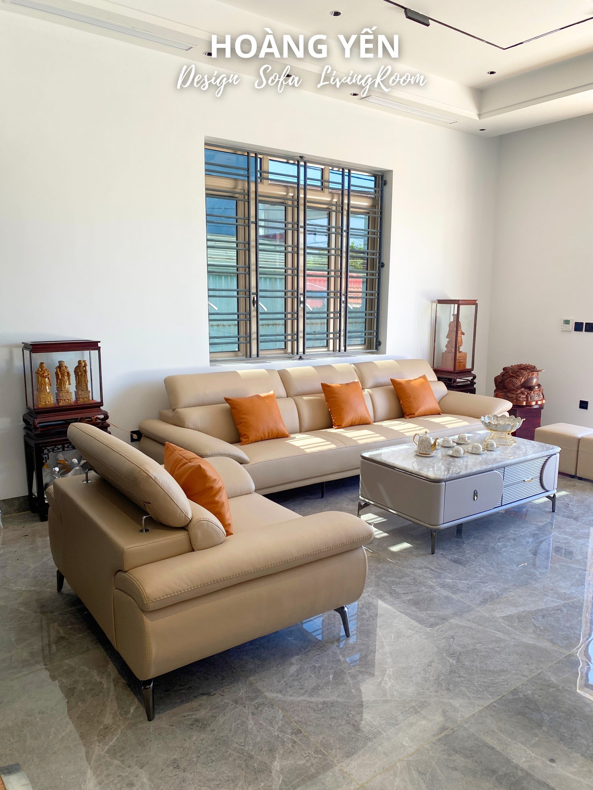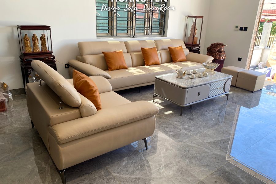– Phong cách sofa khi bàn giao sofa da phòng khách SHY434 kem vàng: