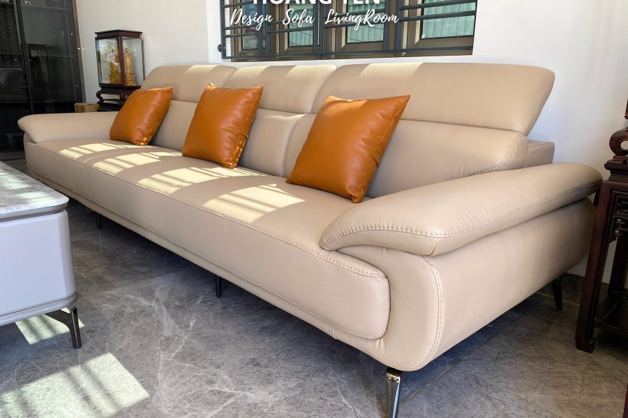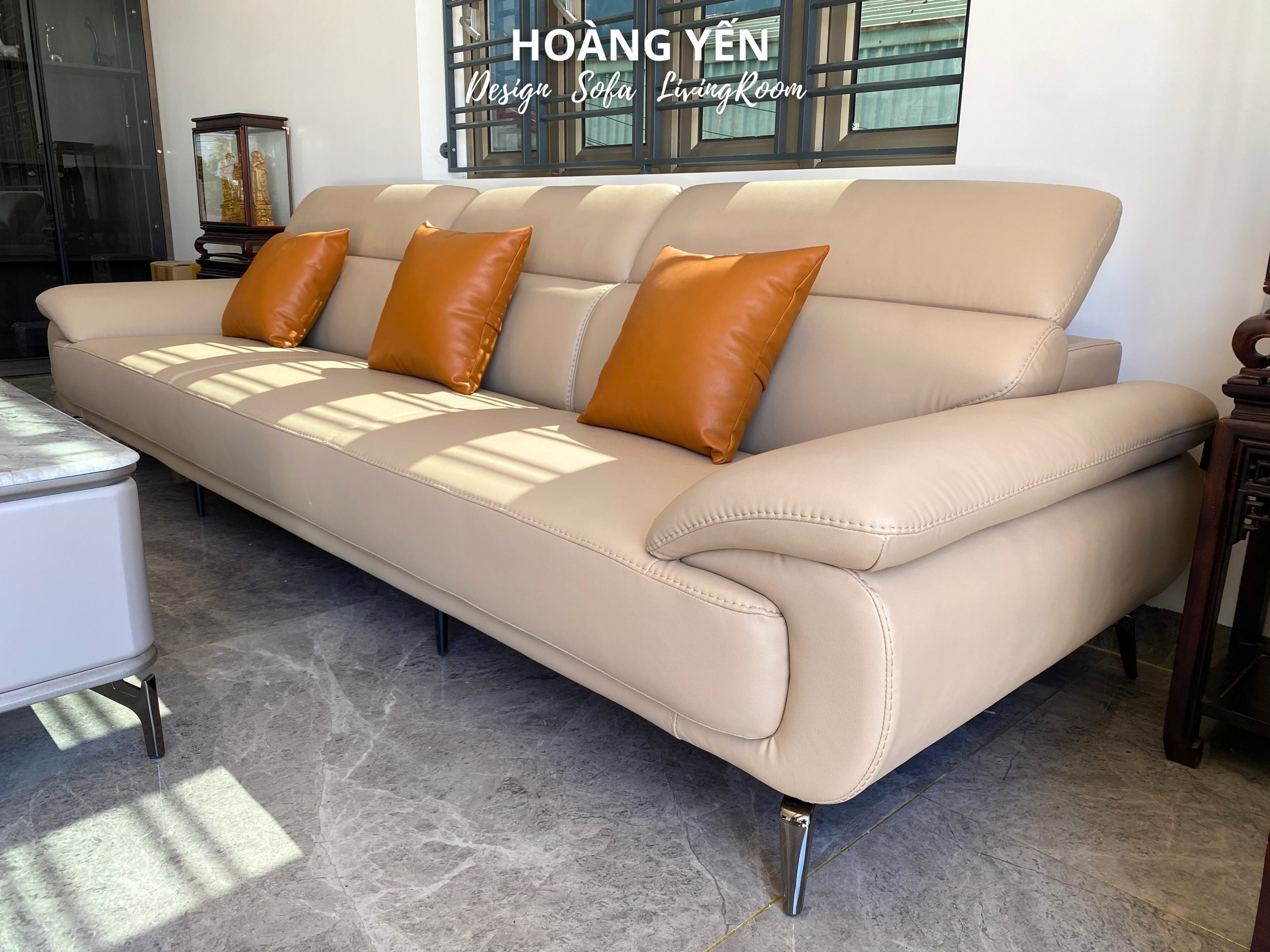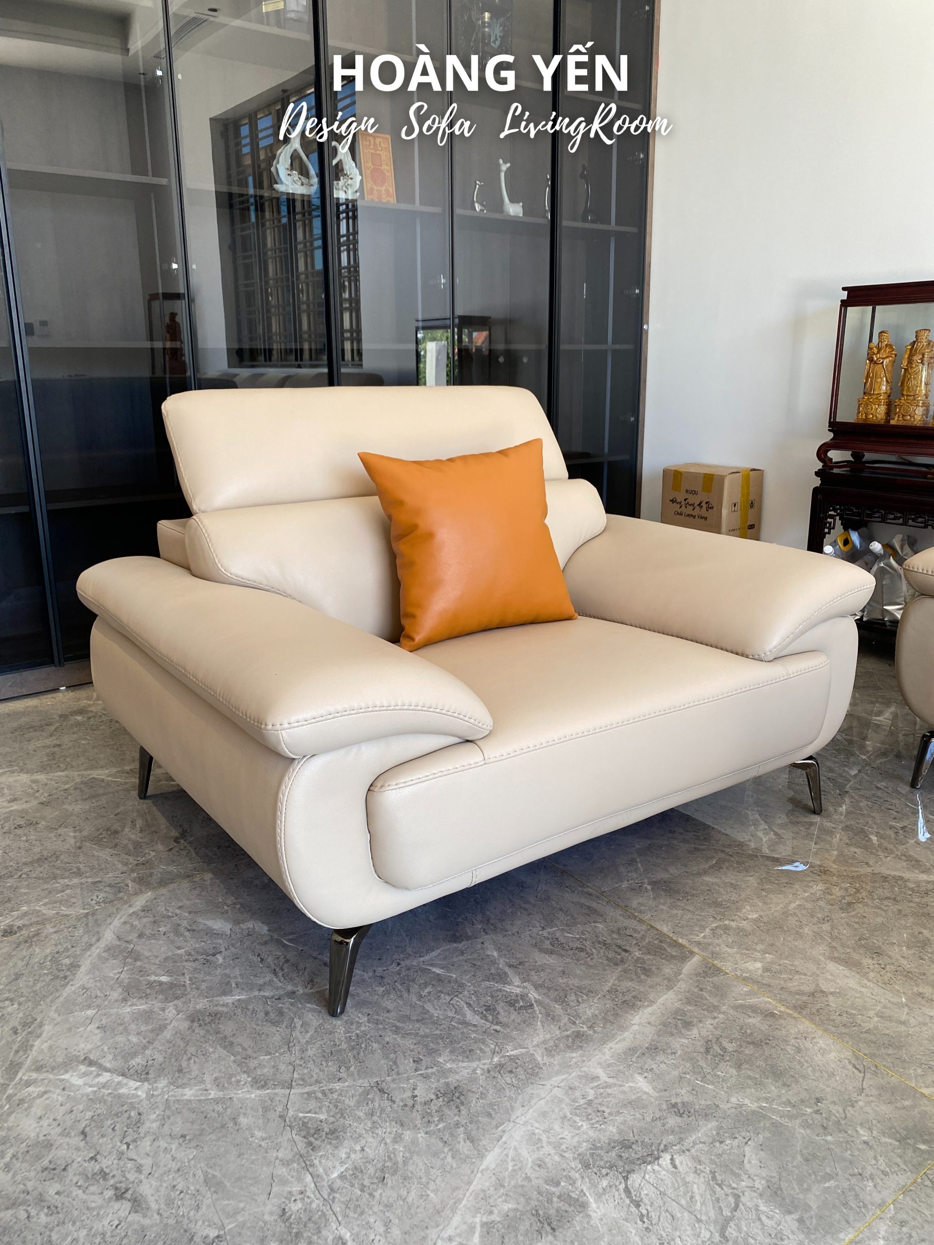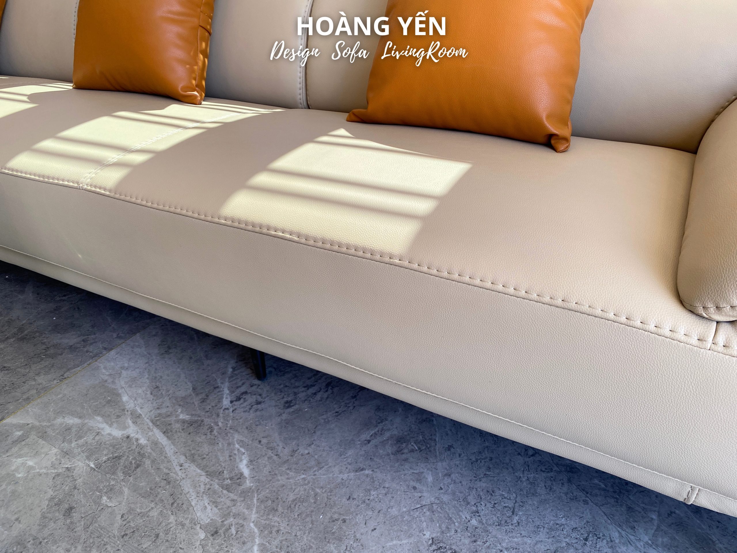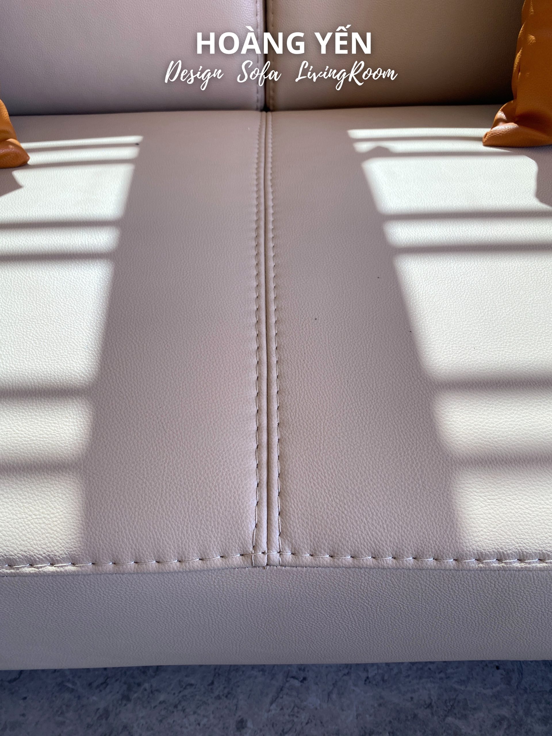 Sofa cao cấp HY434 kem sáng với kích thước văng dài 3.2m, ghế đơn 1.3m, được làm bằng dòng da cao cấp 2 lớp NANO có giá là 29.300.000.