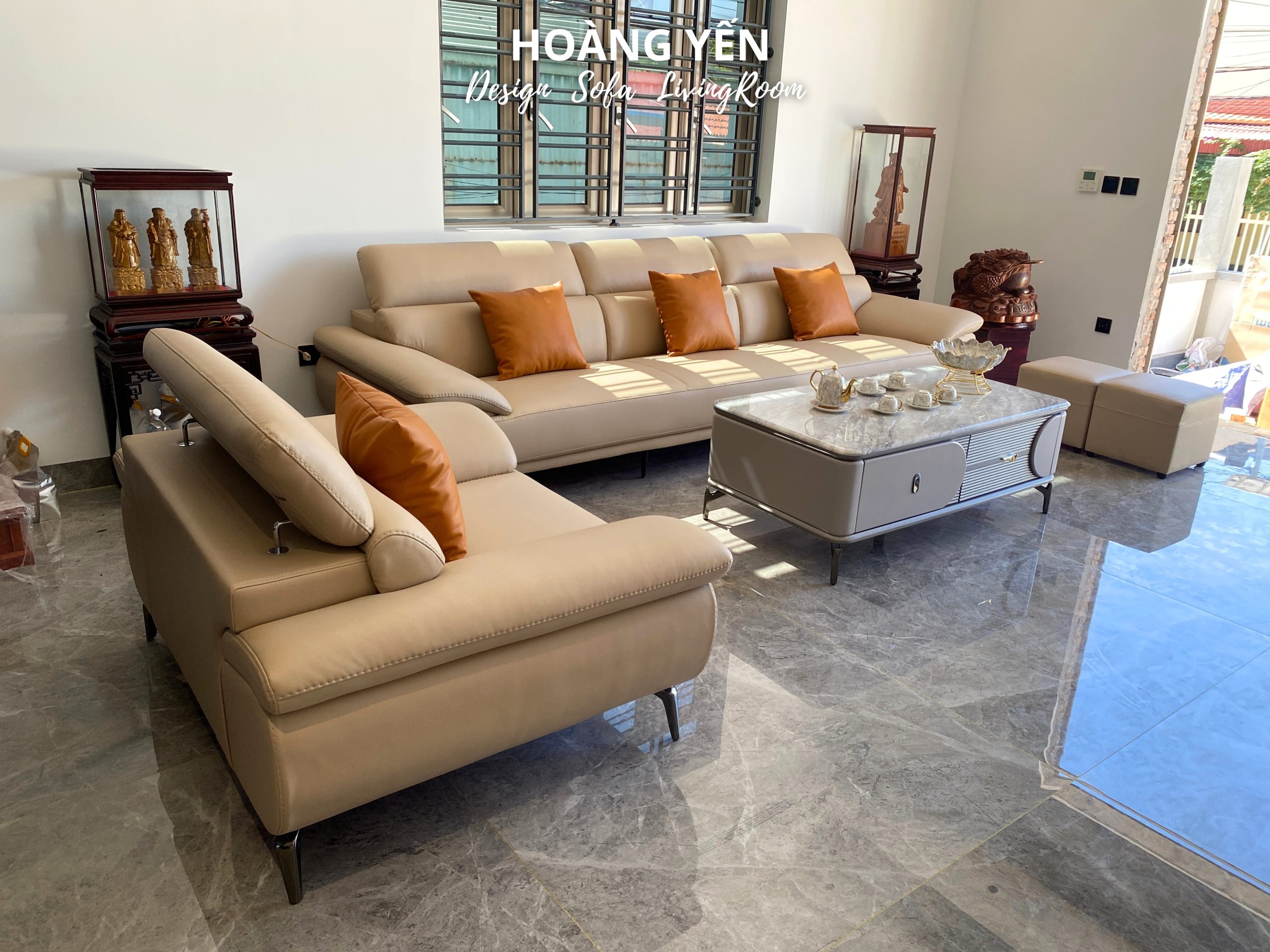 3. Giá thành sofa khi bàn giao sofa da phòng khách SHY434 kem vàng.