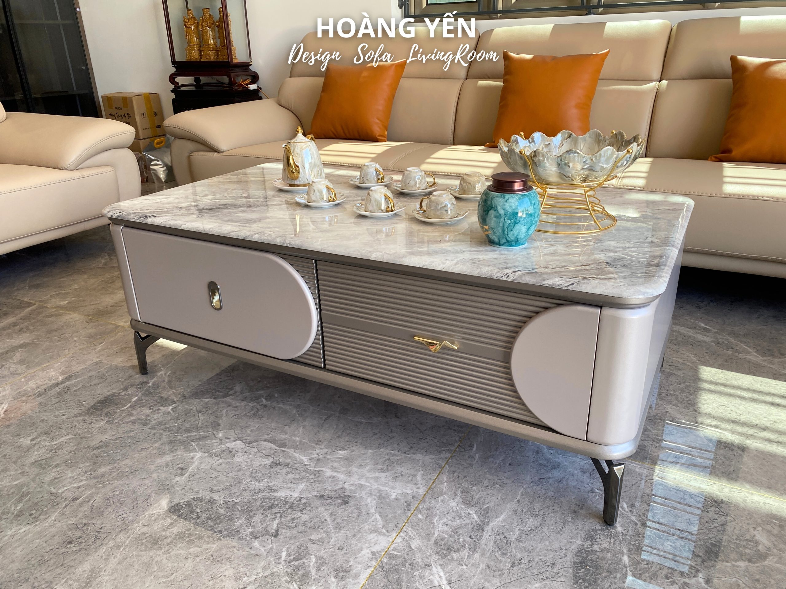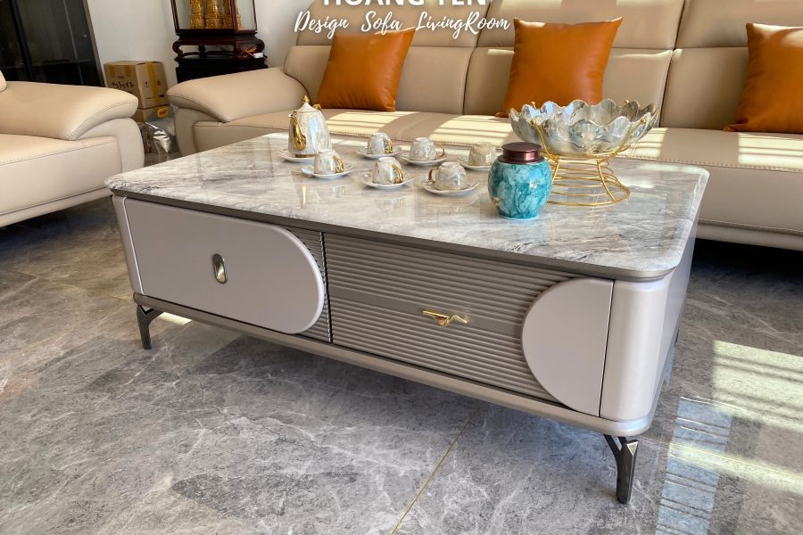 Bàn giao sofa da phòng khách SHY434 kem vàng khiến không gian có cảm giác được mở rộng.