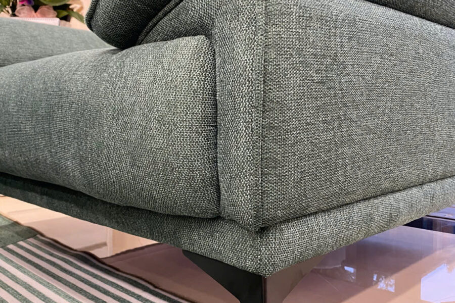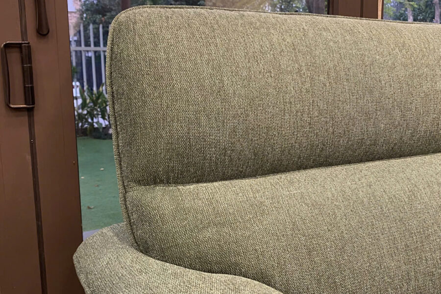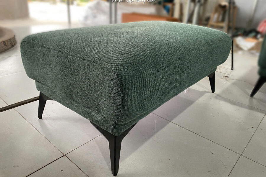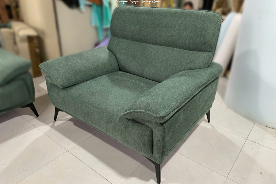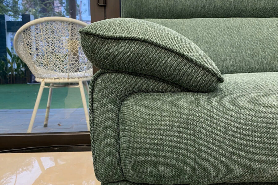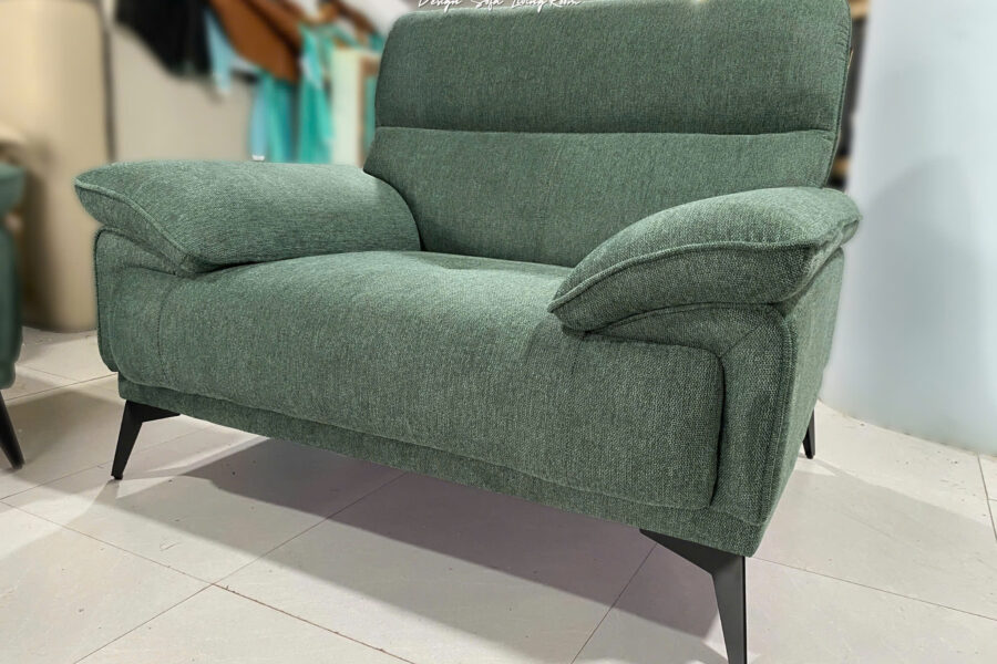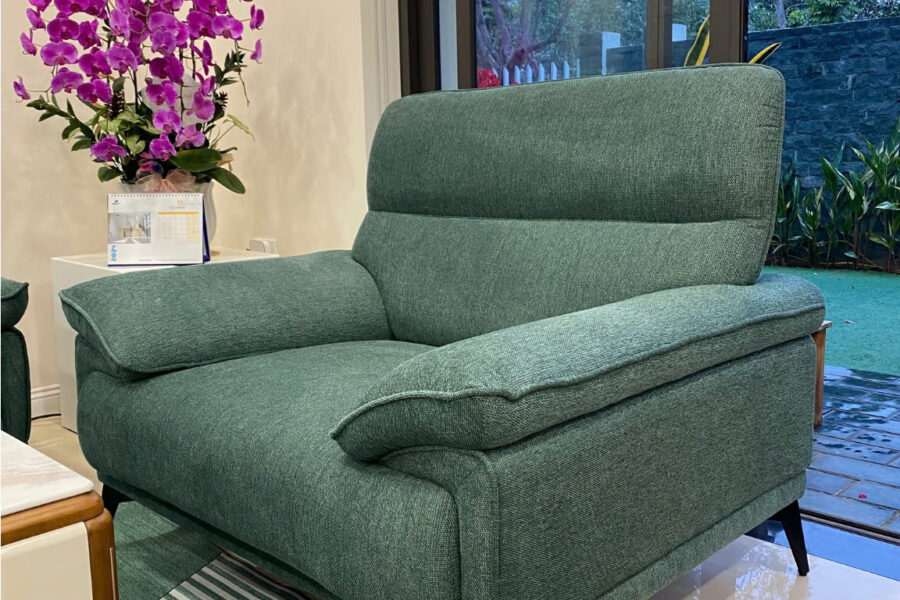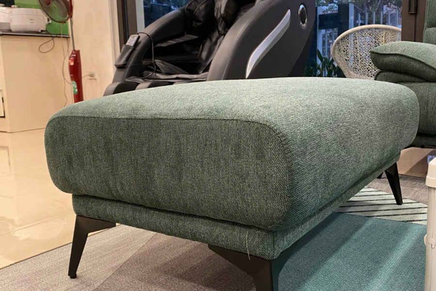 Bộ sofa nỉ này có màu xanh rêu trầm, là tông màu pha giữa xanh lá cây đậm và một chút sắc xám nhẹ.