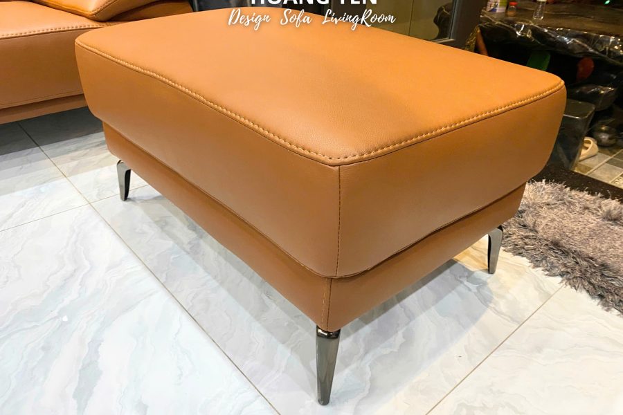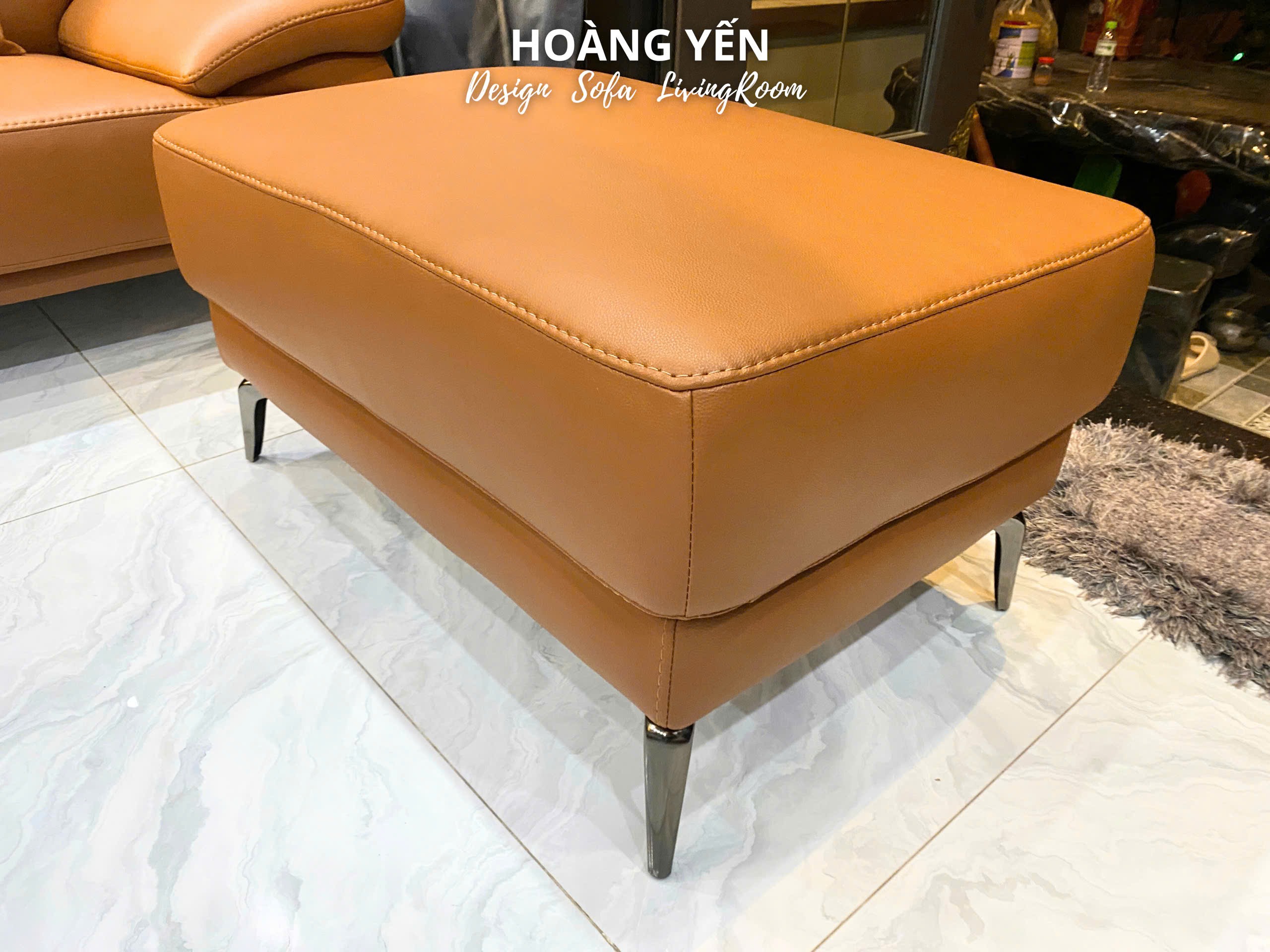 HY434 màu cam bò với kích thước văng dài 2.8m, ghế đơn 1.3m, đôn to 60*80, được làm bằng dòng da NANO cao cấp 2 lớp, có giá là 30.600.000.