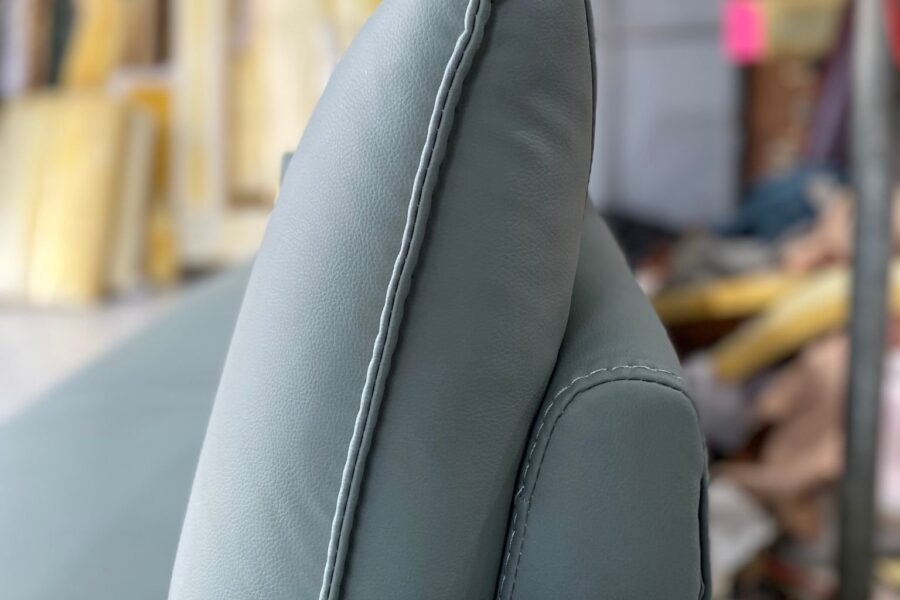 Phần mép ngoài của tựa lưng được may viền nổi tinh xảo, giúp form ghế thêm cứng cáp, giữ dáng bền bỉ theo thời gian.