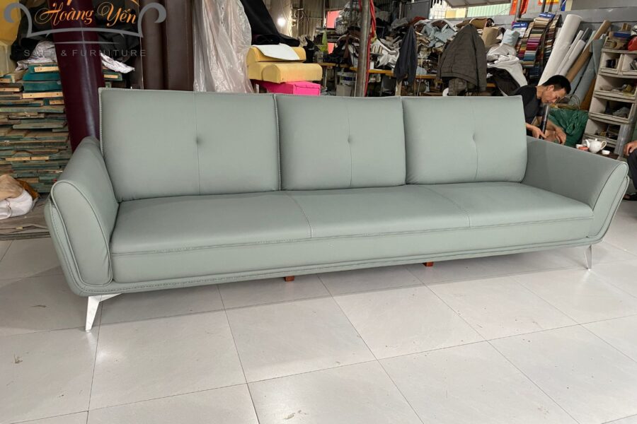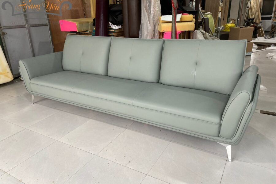 HY366 màu xanh với kích thước văng dài 2.8m, được làm bằng dòng da HC cao cấp 2 lớp, có giá là 12.600.000.
