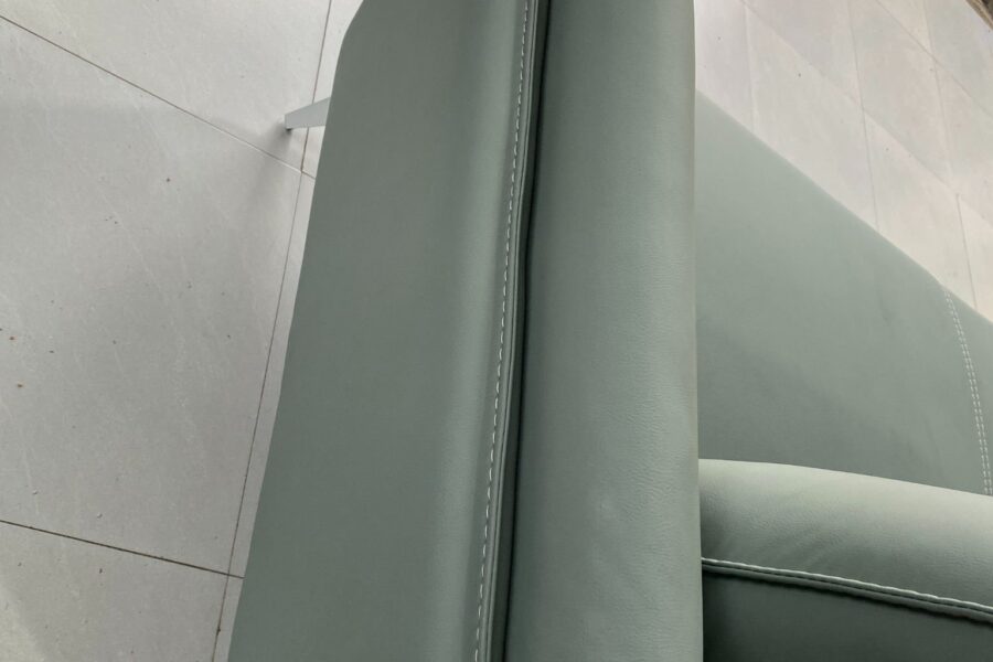 Ánh xanh nhẹ làm cho sofa có vẻ tươi mới, trẻ trung, sắc ghi xám thì nhã nhặn, điềm tĩnh và cao cấp.