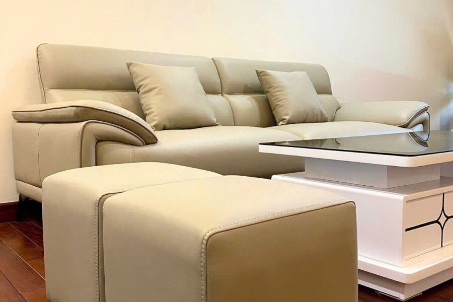 Bàn giao sofa văng da SHY405 làm nổi bật sự sạch sẽ và tinh tế cho không gian phòng khách.