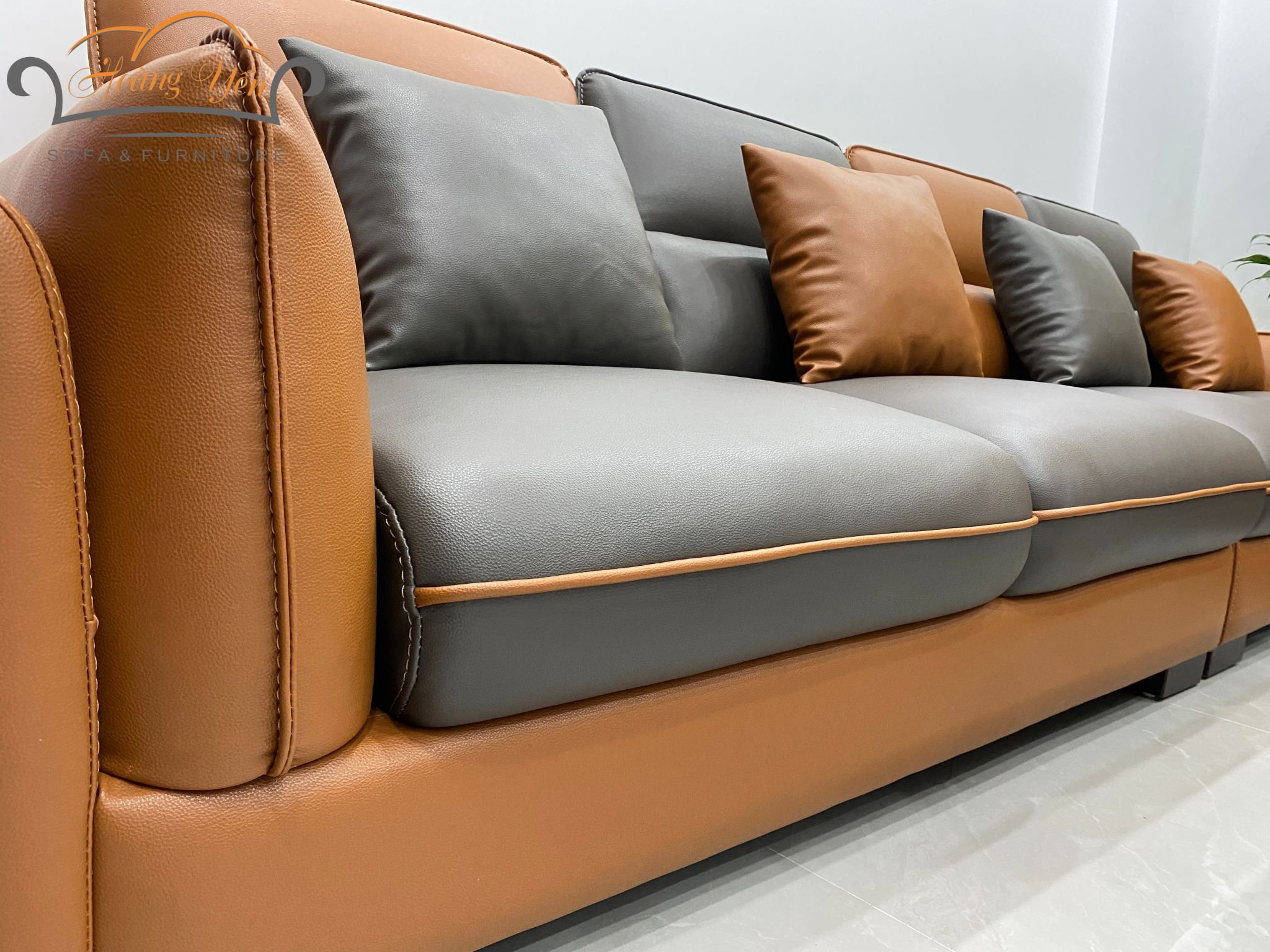 Sofa da đẹp SHY402 được phối hai màu tinh tế, hiện đại, tạo chiều sâu thị giác.