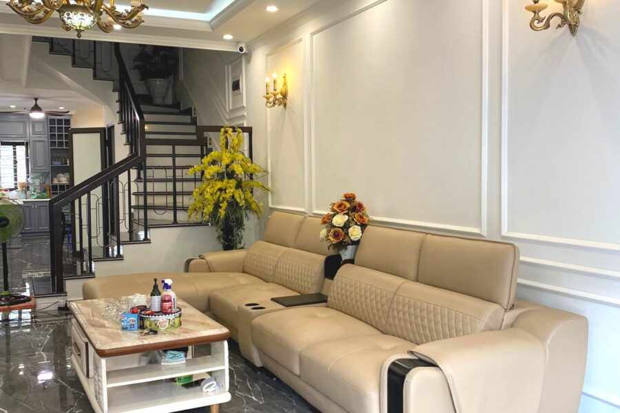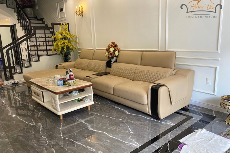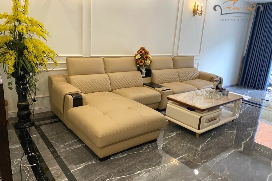 Sofa phòng khách hiện đại và tích hợp tiện ích trang trí cao.