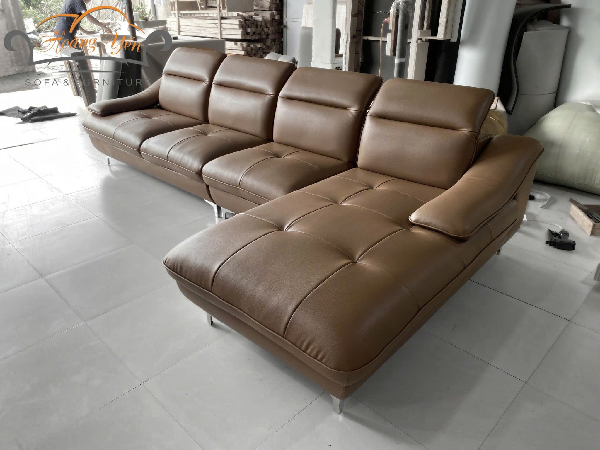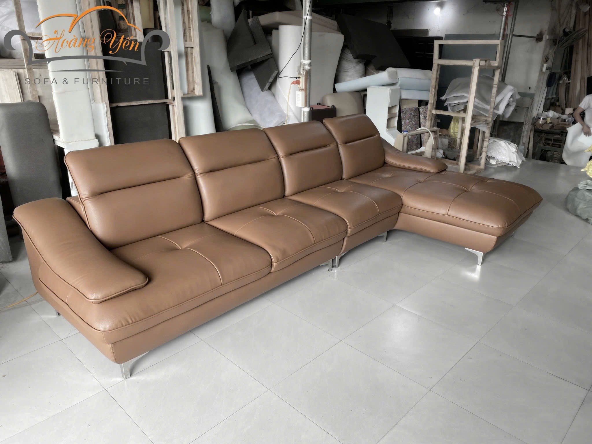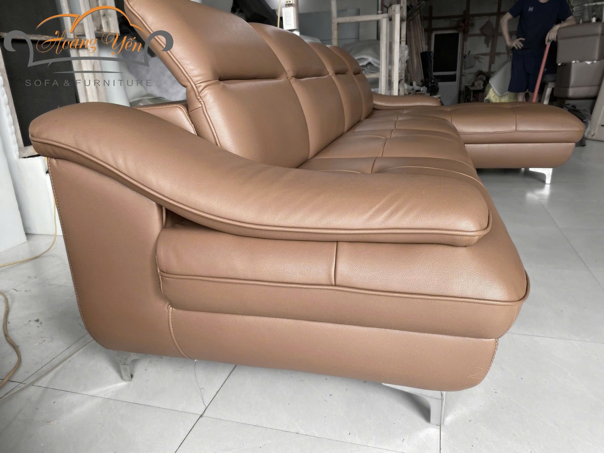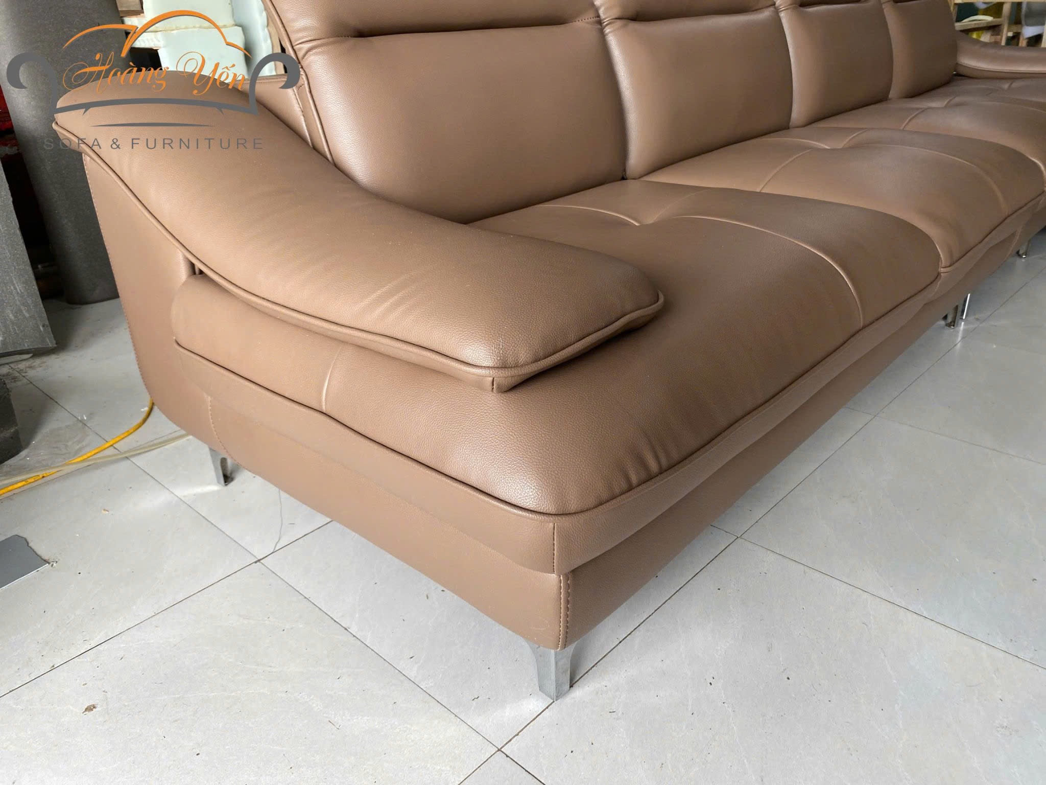 Bộ sofa da HY226 màu nâu với kích thước 320*180 góc L, sử dụng da NANO có giá 26.700.000.