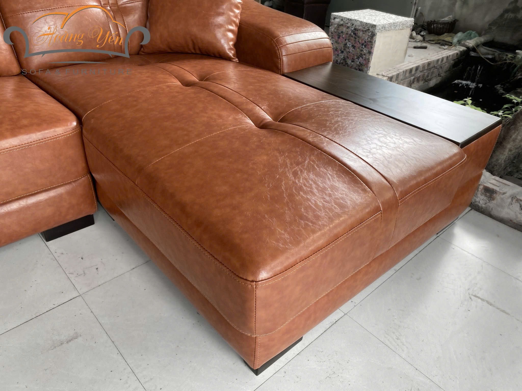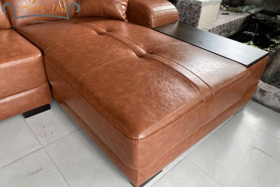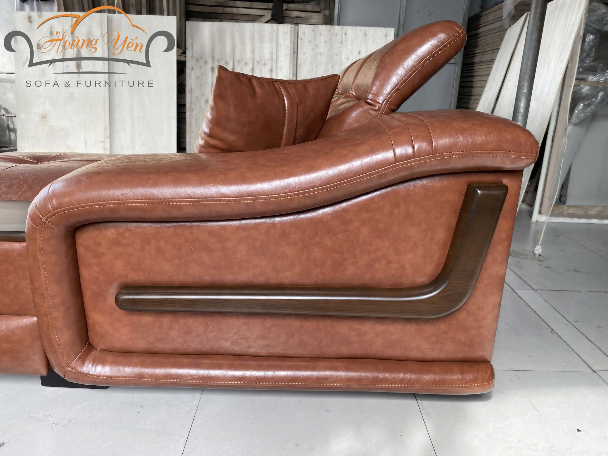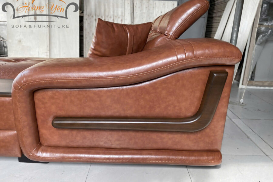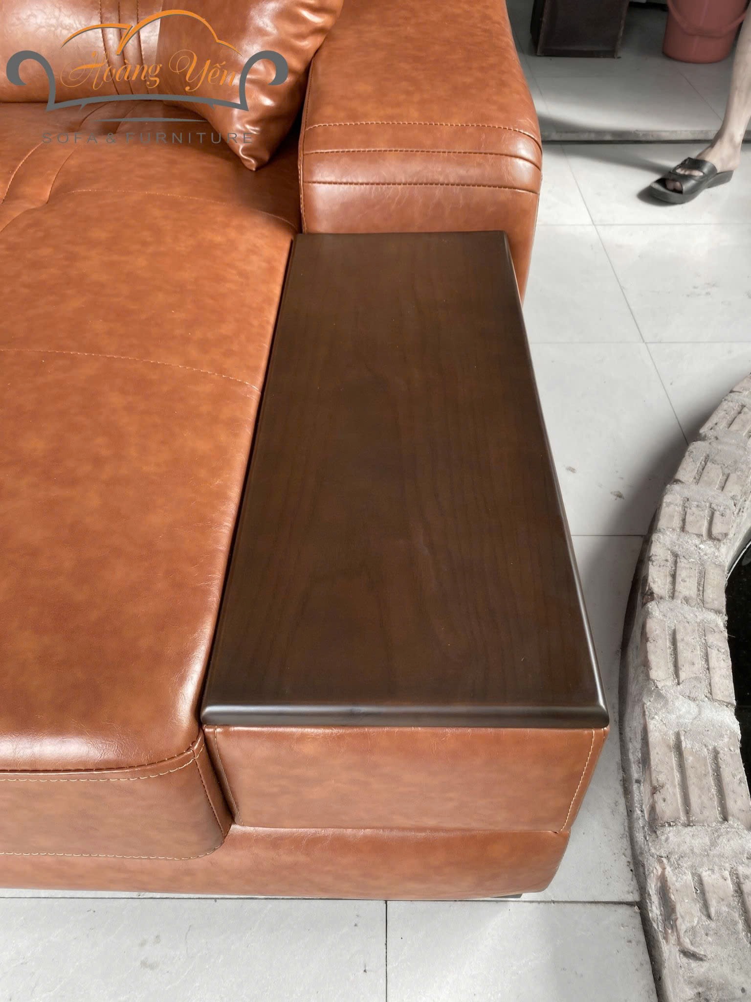 Sofa góc L này là sự kết hợp giữa da và phần gỗ đã khiến SHY305 pha chút cổ điển, sang trọng.
