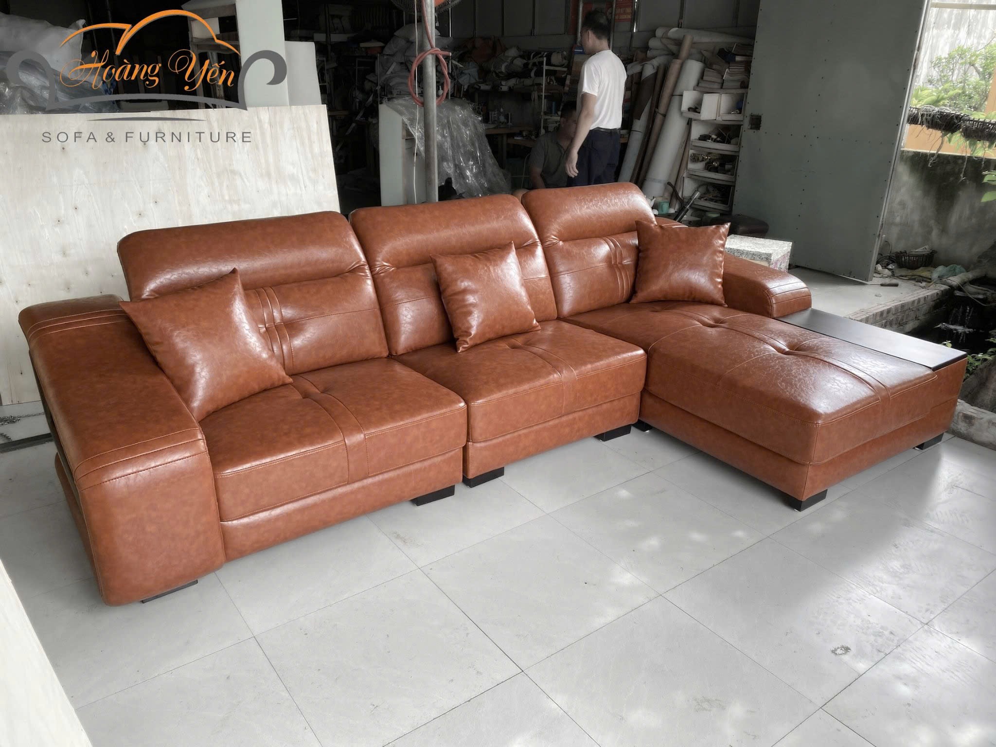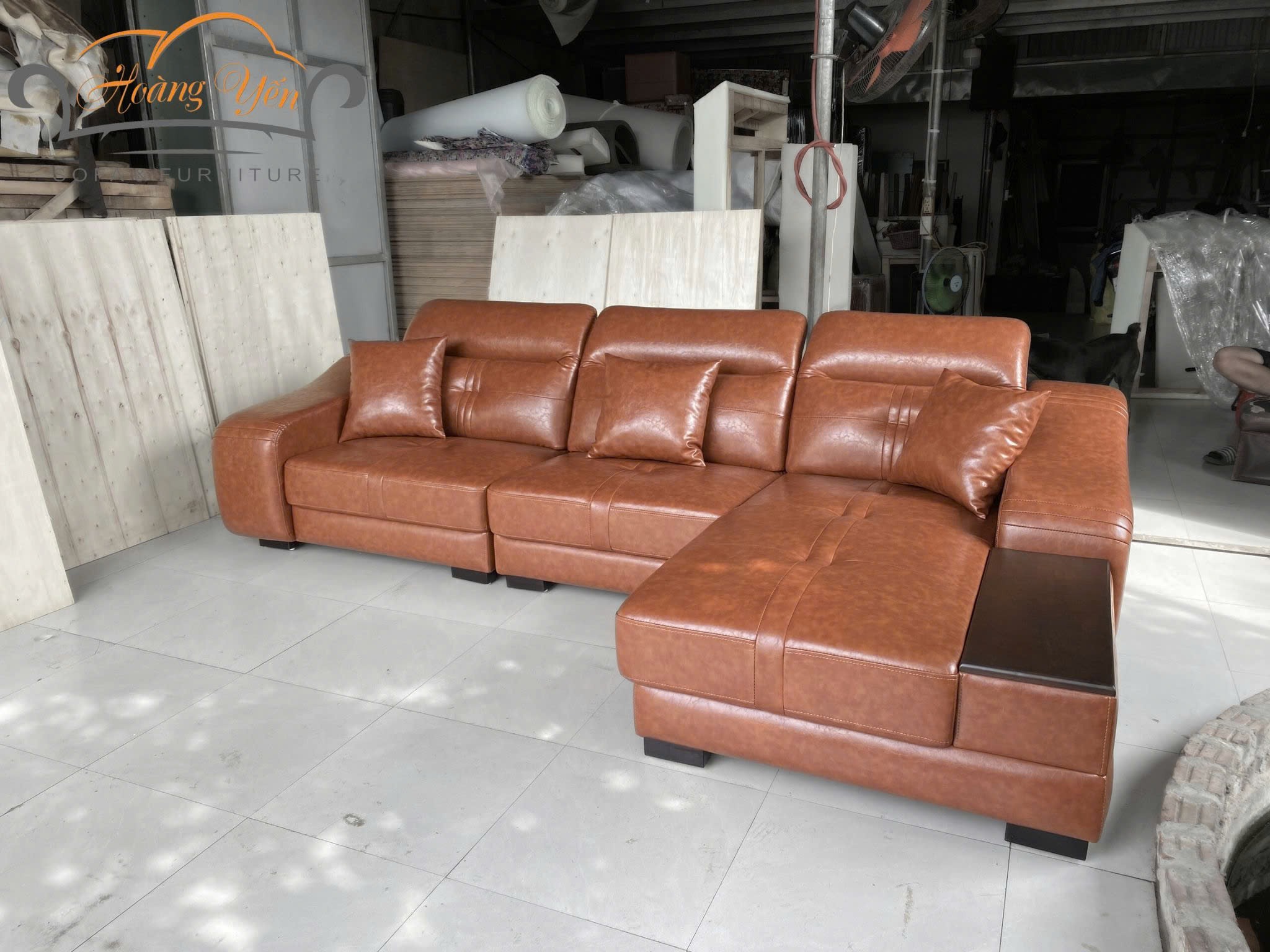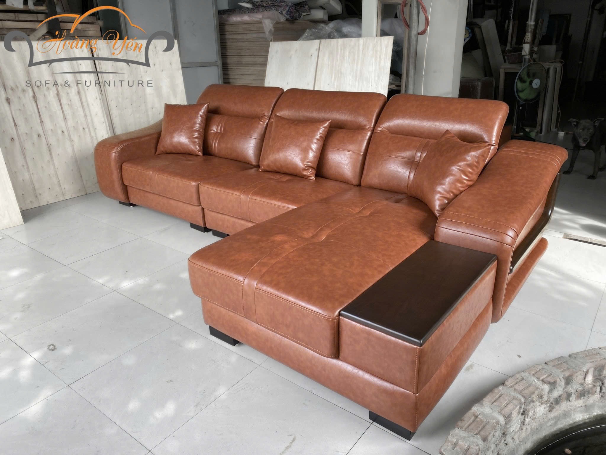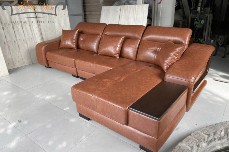 Sofa góc L này là sự kết hợp giữa da và phần gỗ đã khiến SHY305 pha chút cổ điển, sang trọng.
