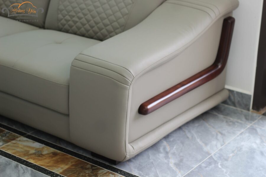 Sofa da SHY305 còn có phần tráp là sự kết hợp hoàn hảo giữa da và gỗ.