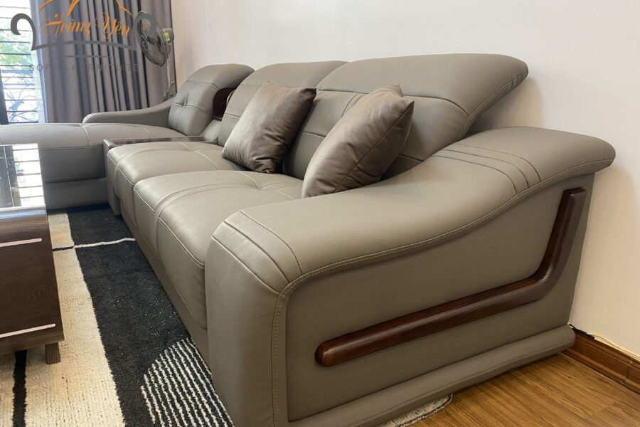 Còn phần gỗ ở đuôi góc L tạo điểm nhấn ấn tượng cho bộ ghế.