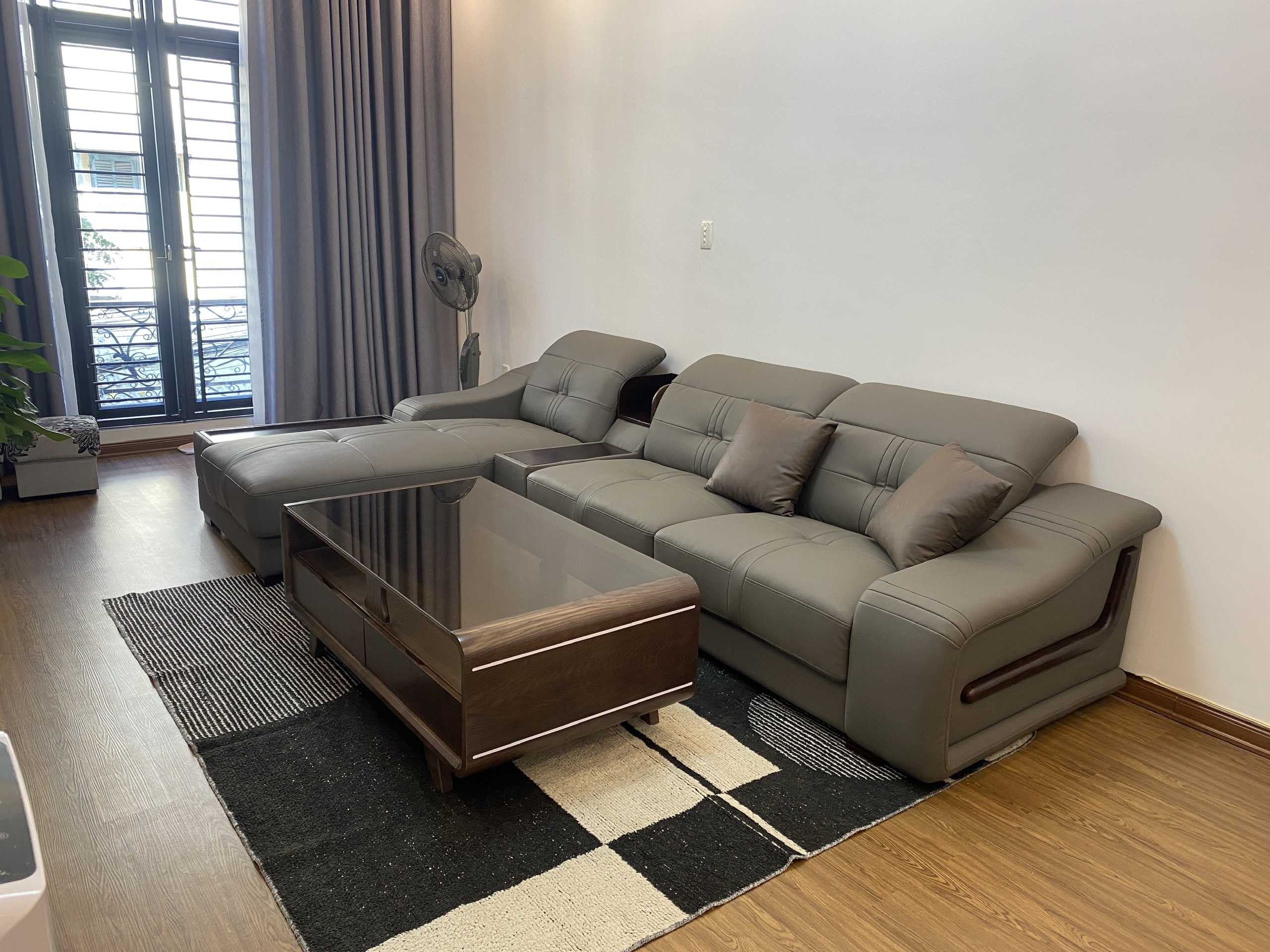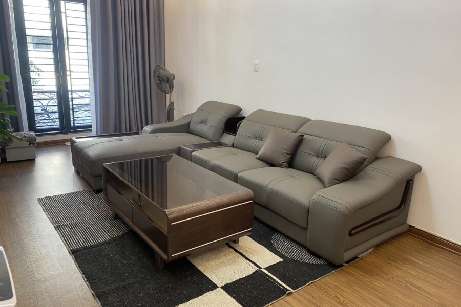 Sofa kèm 2 đôn nhỏ có thể ngồi lên tới 7-8 người thoải mái rộng rãi.