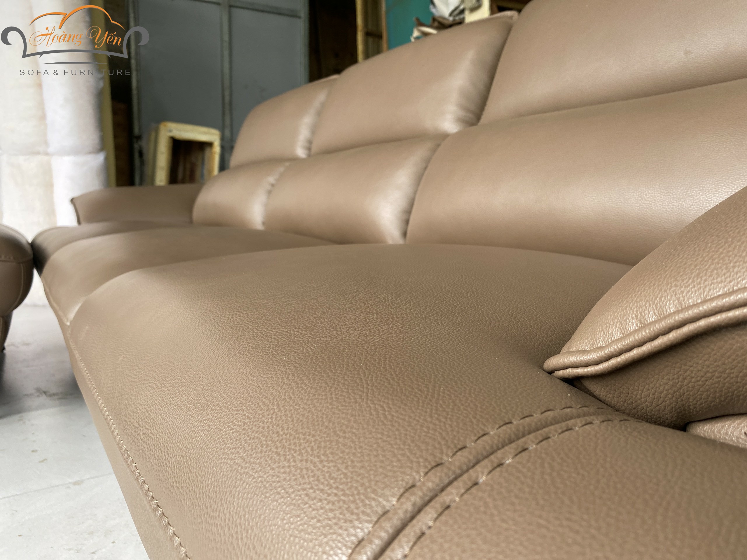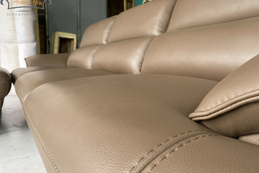 Sofa da SHY320 với tông màu nâu nhạt giúp phòng khách trở nên ấm cúng hơn, là điểm nhấn nhá của phòng khách.