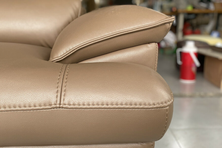 Đệm sofa da góc L SHY320 có độ phồng vừa phải, mặt đệm trơn tru dễ vệ sinh và được chia 3 khoan ngồi.