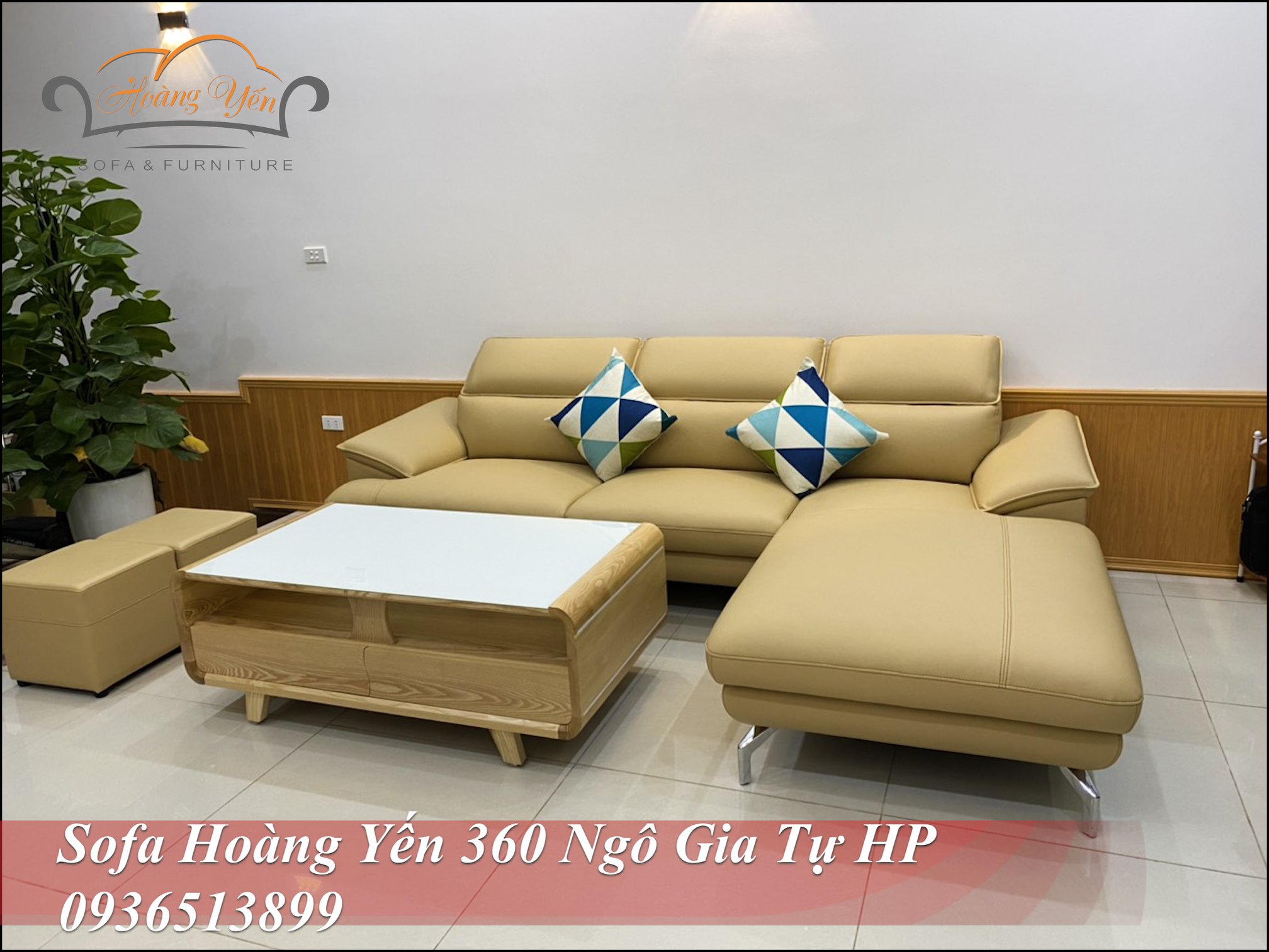 Bộ sofa da HY320 với kích thước văng dài 280, gồm 1 đôn to 60*80, 2 đôn nhỏ. Sofa góc này được làm bằng dòng da cao cấp 2 lớp NANO có giá là 23.400.000.