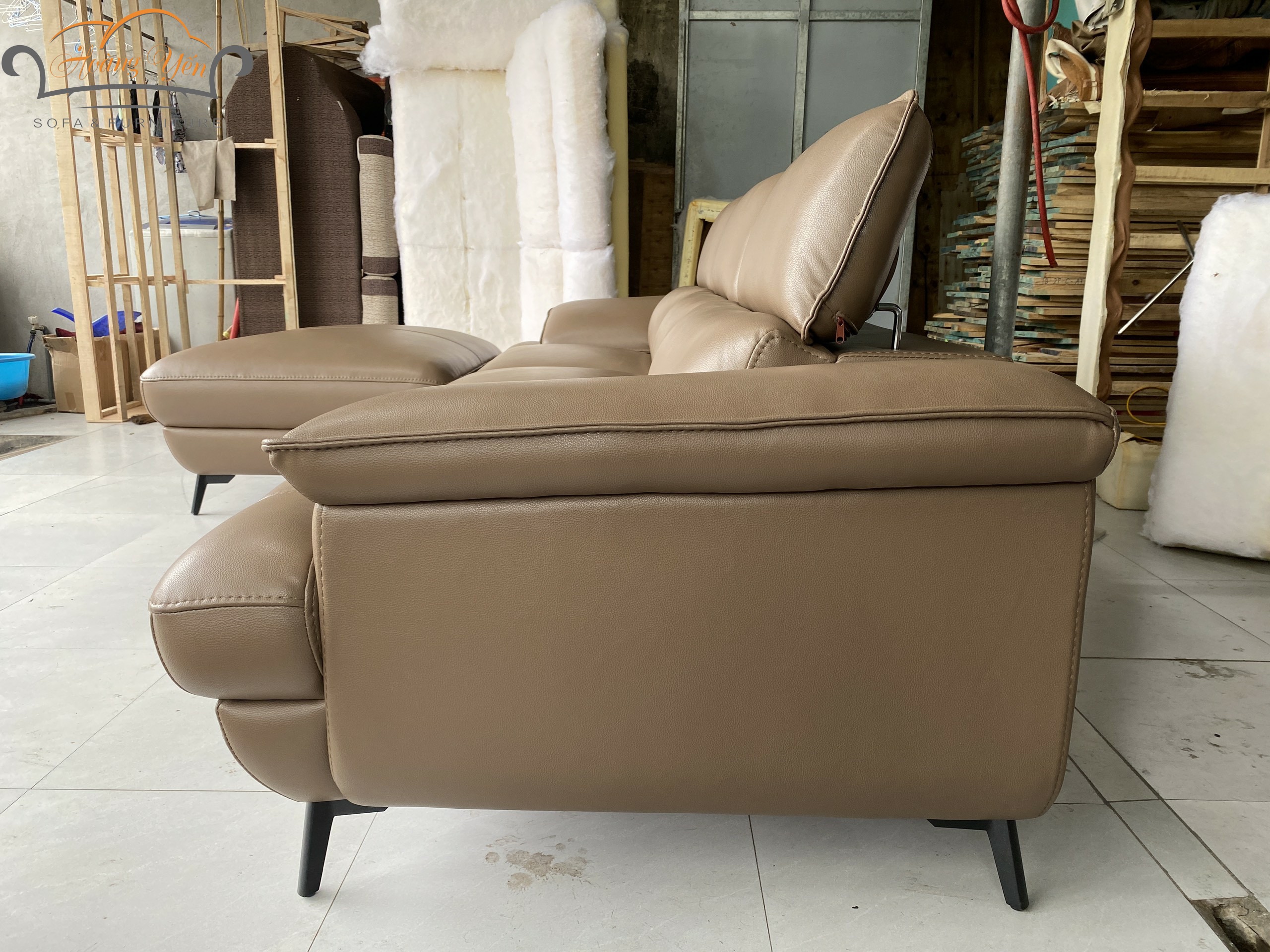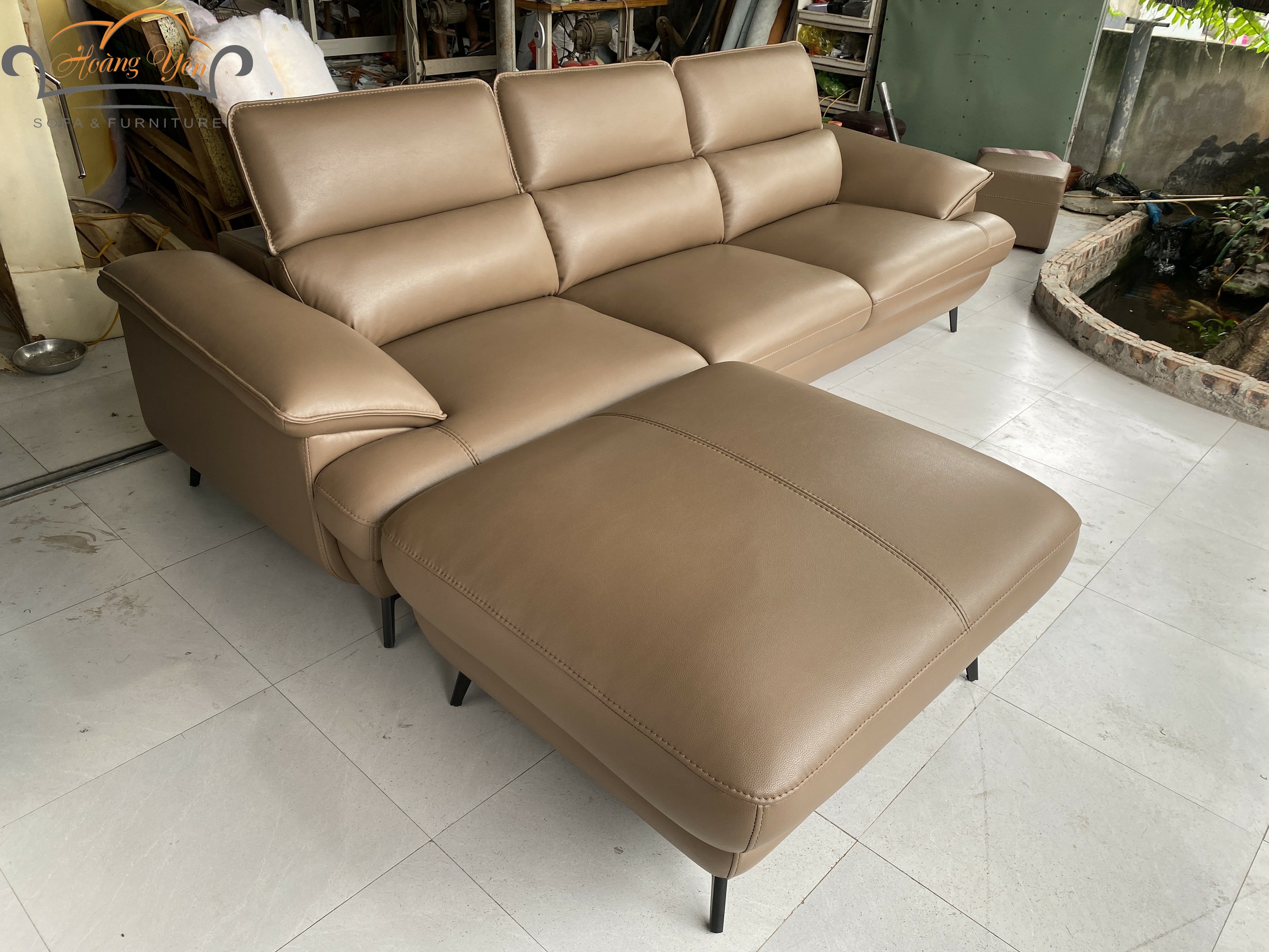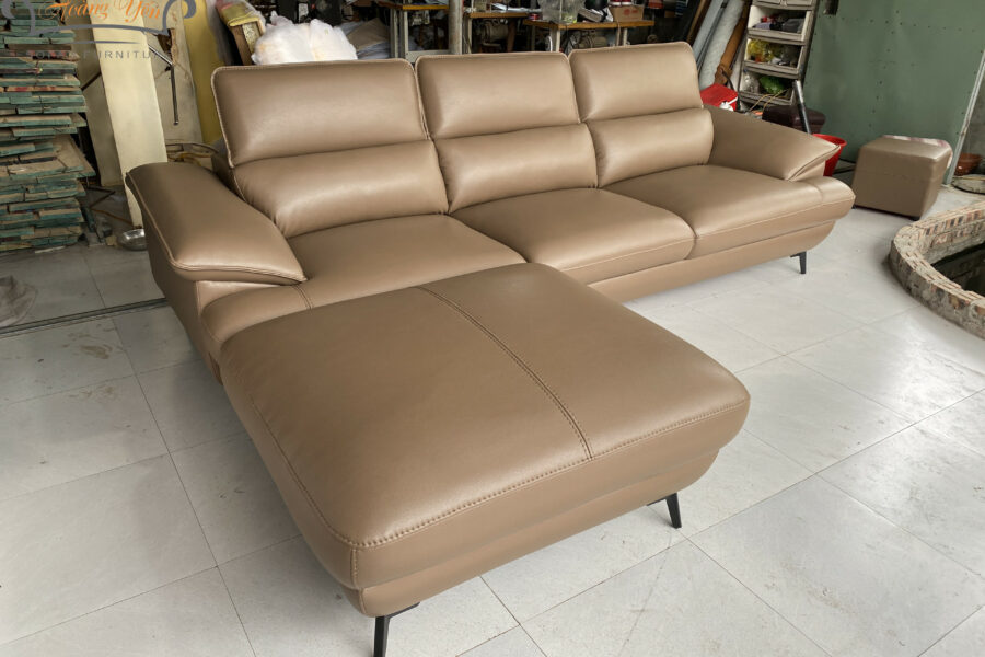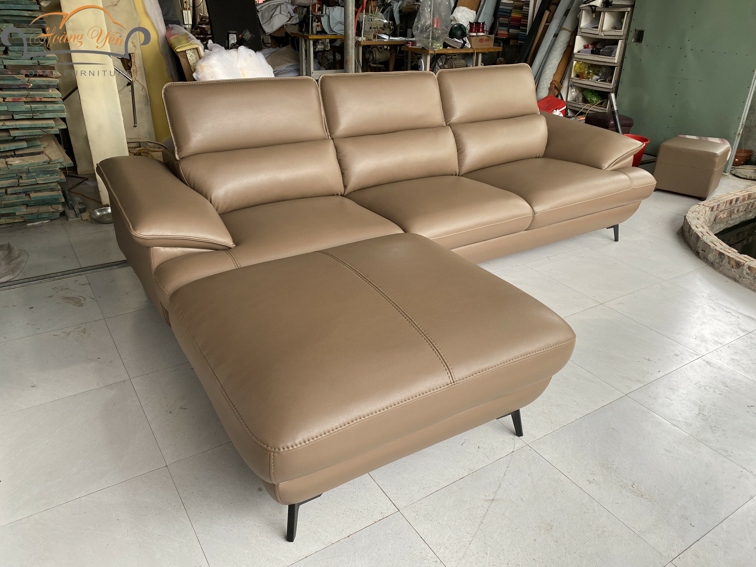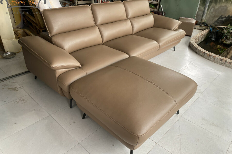 Sofa da góc L SHY320 có 1 văng dài 2.8m và 1 đôn to 60*80, dành cho phòng khách rộng từ 15-25m2.