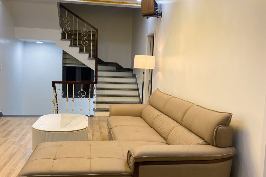 Sofa kèm 2 đôn nhỏ có thể ngồi lên tới 4-6 người thoải mái rộng rãi.