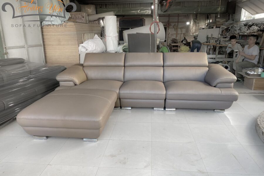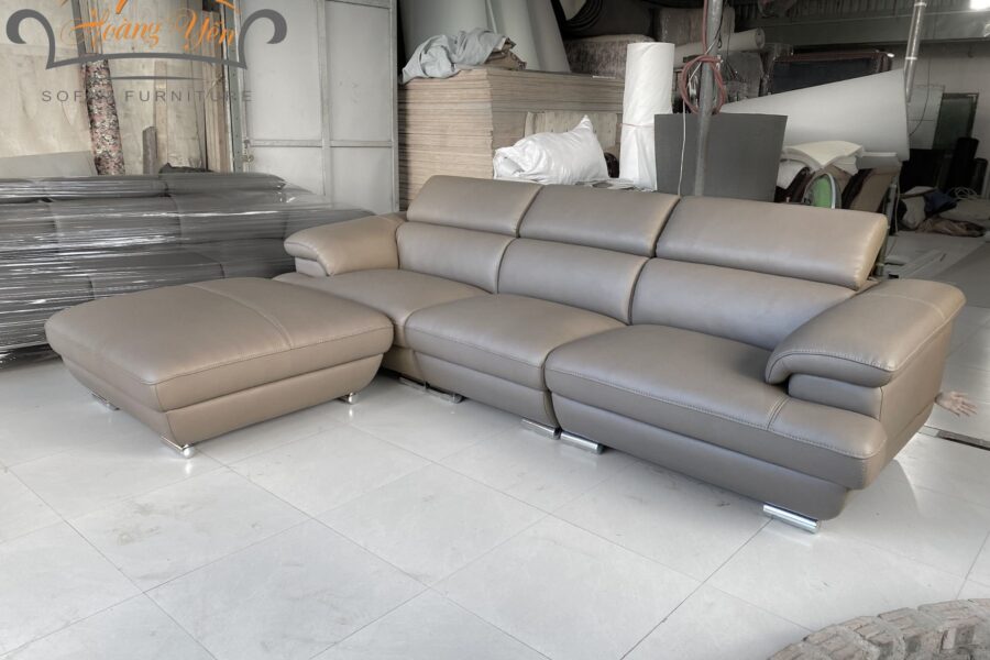 Sofa da góc SHY339 có màu ghi rất dễ phối đồ và phù hợp với nhiều lứa tuổi.