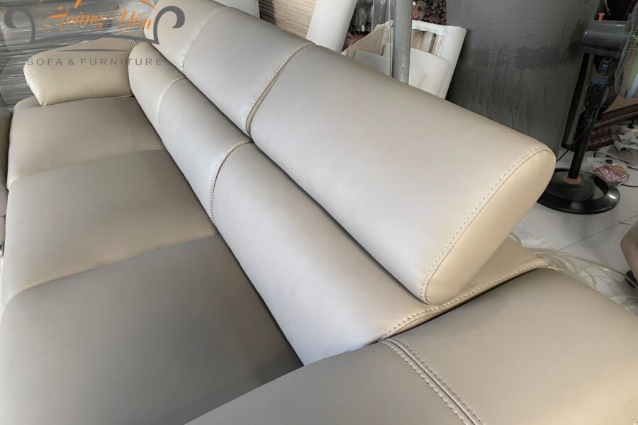 Đệm ghế sofa da góc L SHY339 phồng nhẹ, trơn phẳng và chia theo từng khoan tạo điểm nhấn mạnh mẽ và thẩm mỹ.