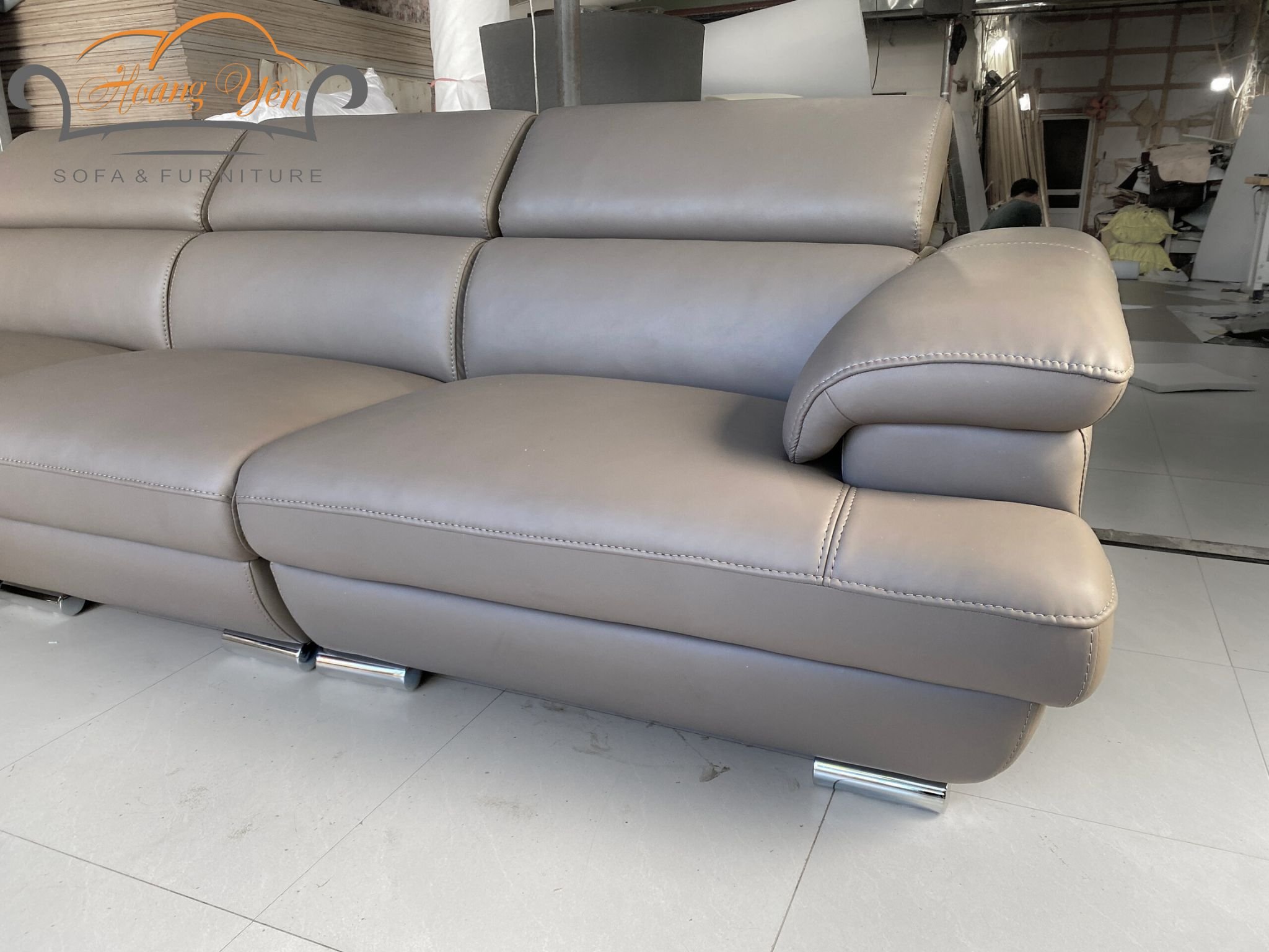Bề mặt da ghế sofa góc L trơn nhẵn, bóng bẩy và tinh tế.