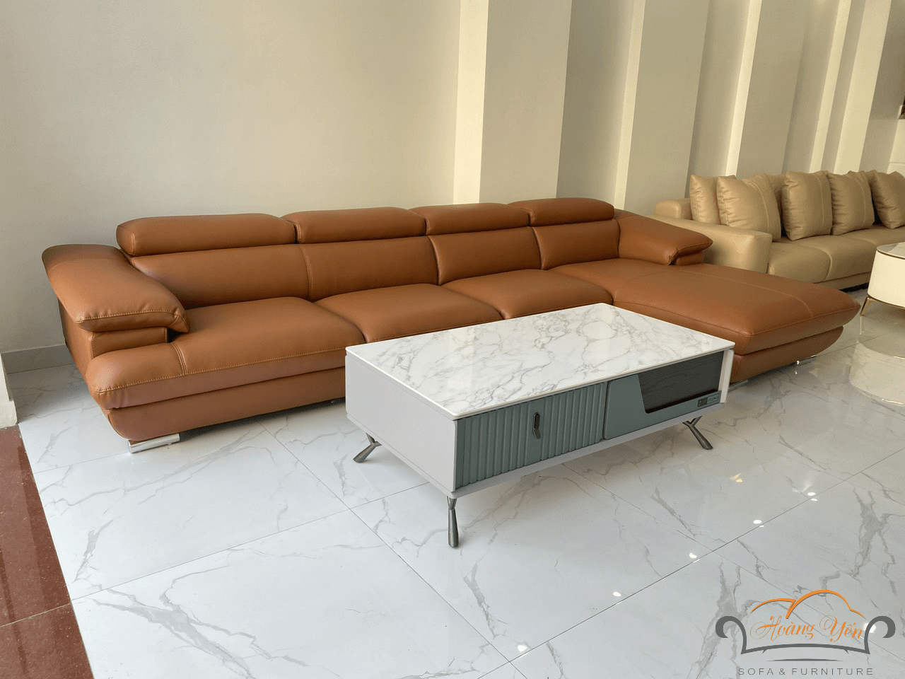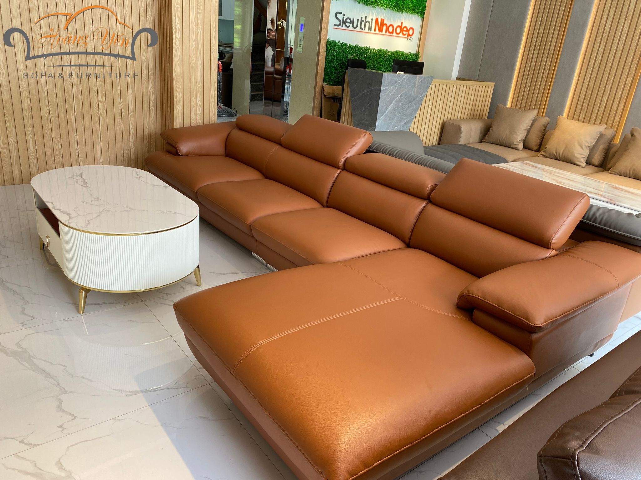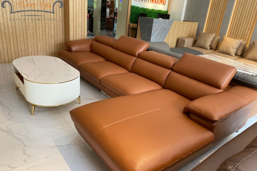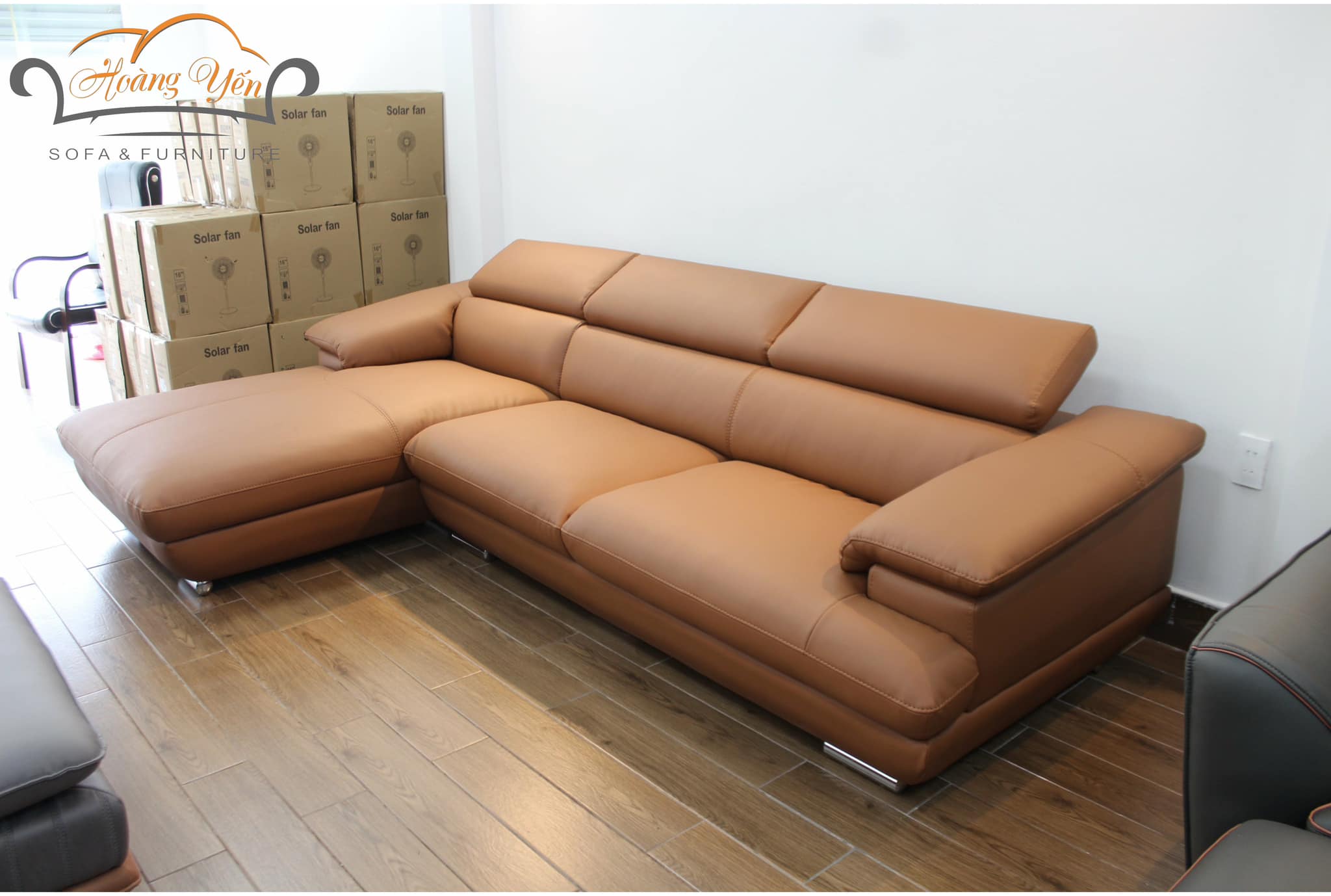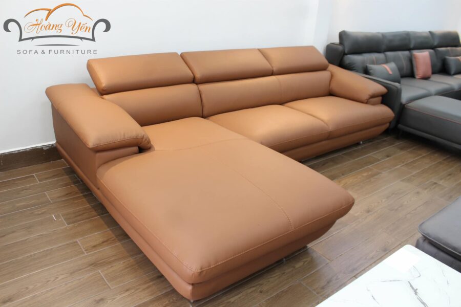 Sofa L SHY339 màu vàng bò, thiên chút màu cam mang nét trẻ trung, hiện đại.