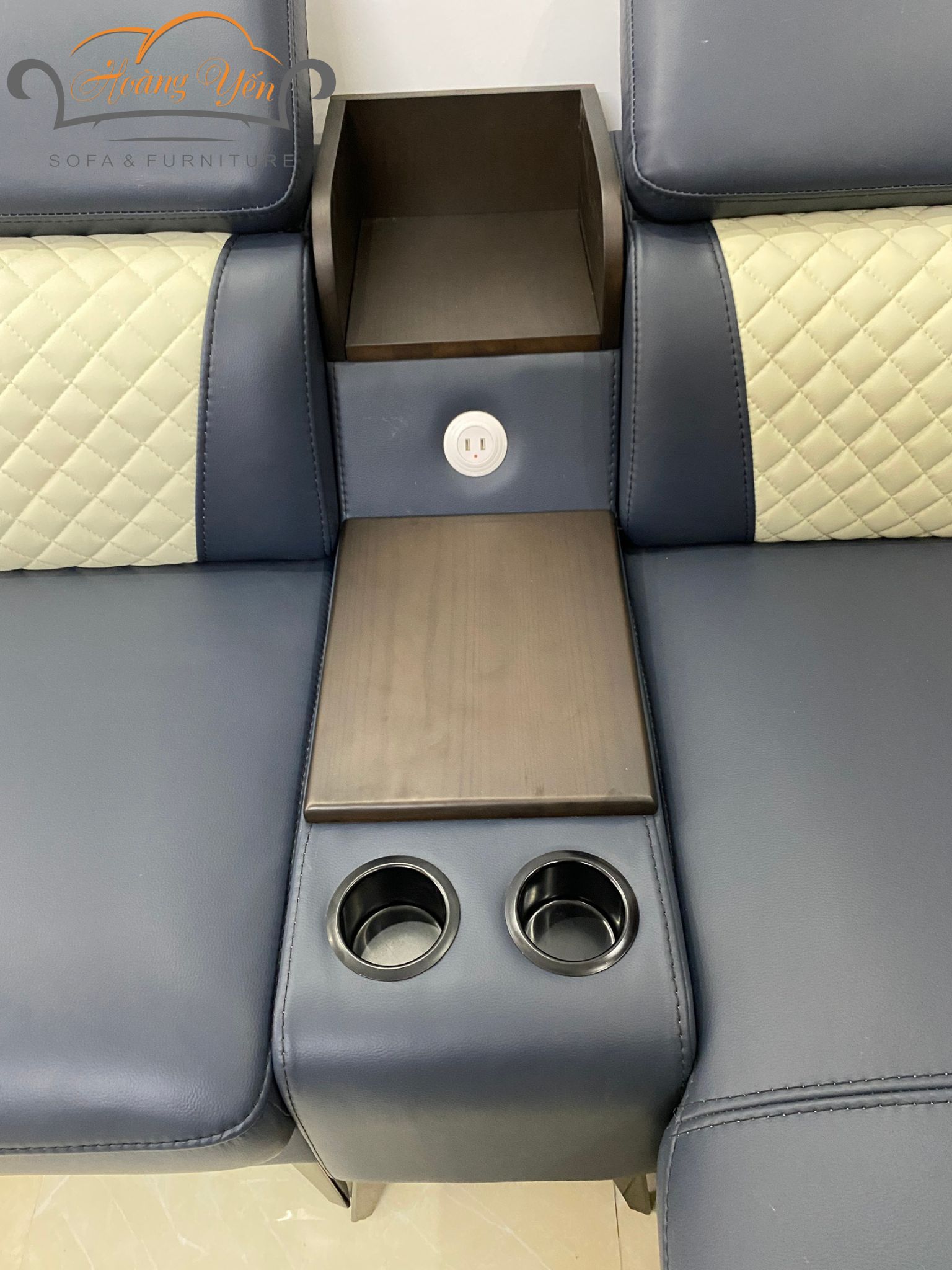 Phần tráp của sofa da SHY354 cũng là sự kết hợp hoàn hảo giữa da và gỗ, có ngăn để cốc nước, để lọ hoa rất tiện lợi.