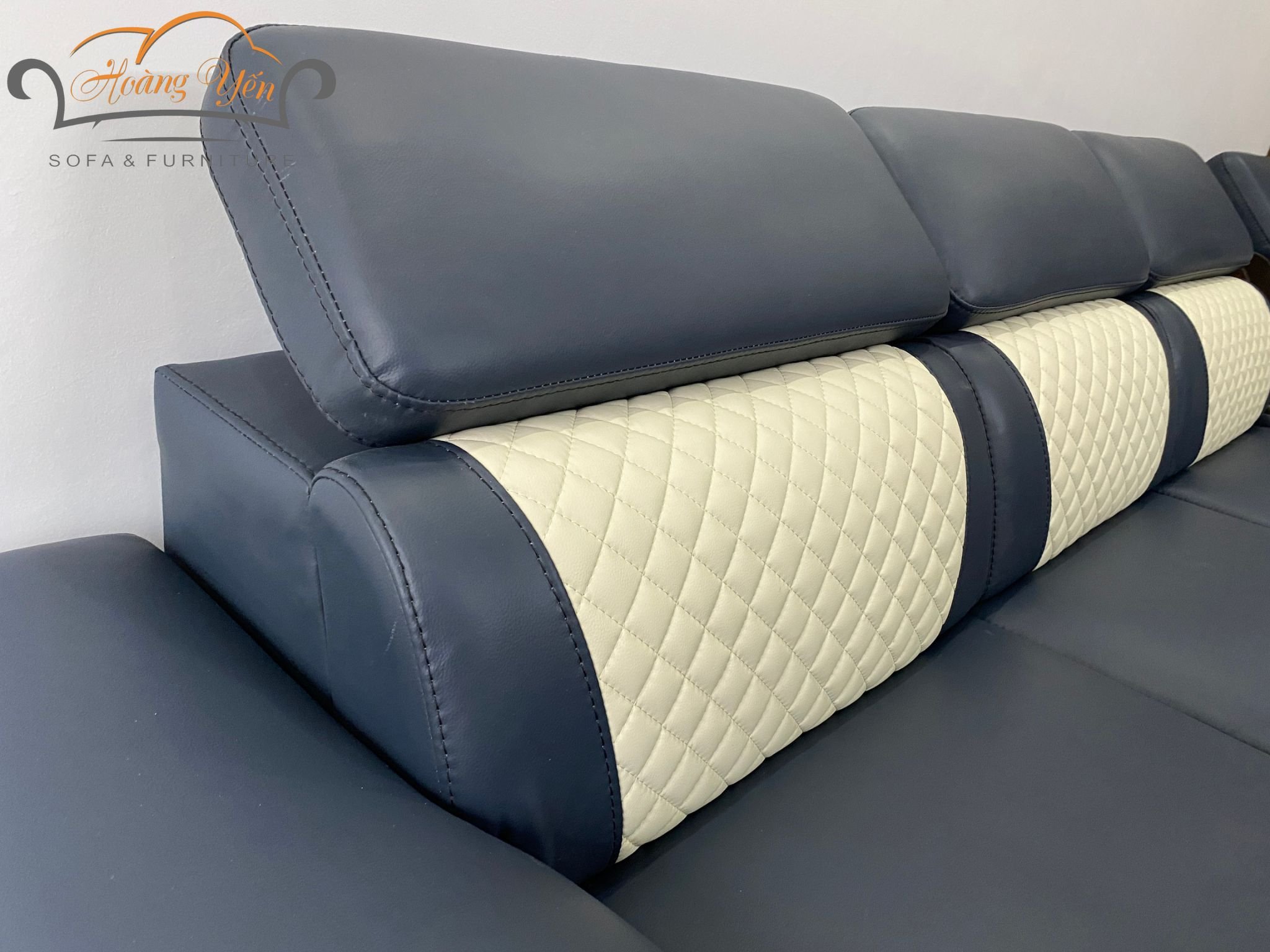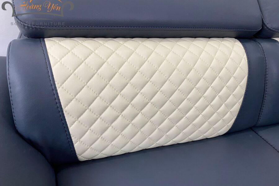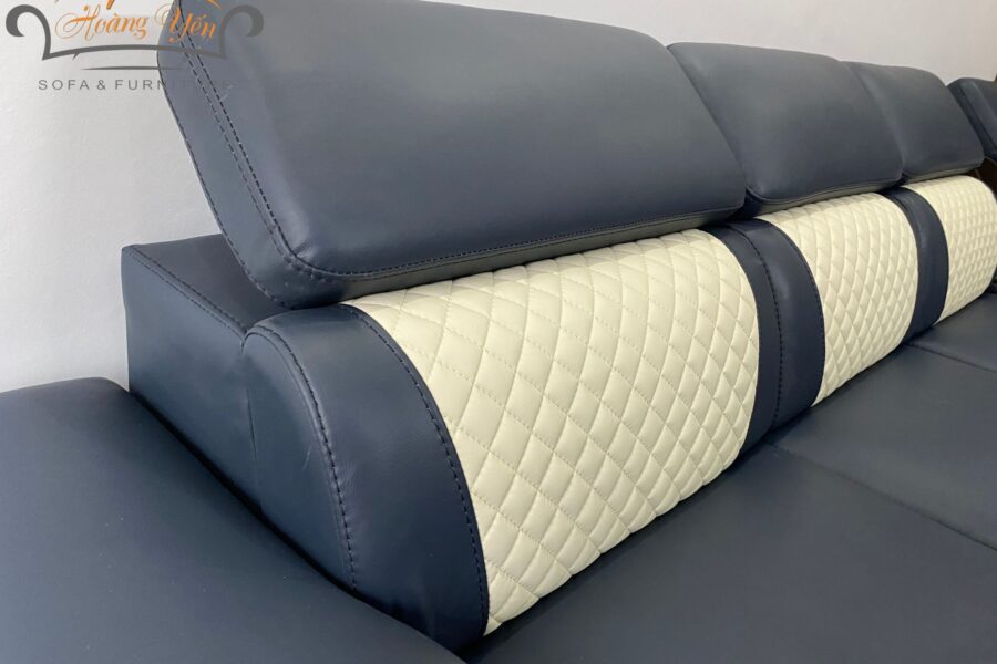 Sofa góc L SHY354 xanh đậm của đại dương kết hợp với màu trắng bọt biển đan chéo đầy nổi bật.