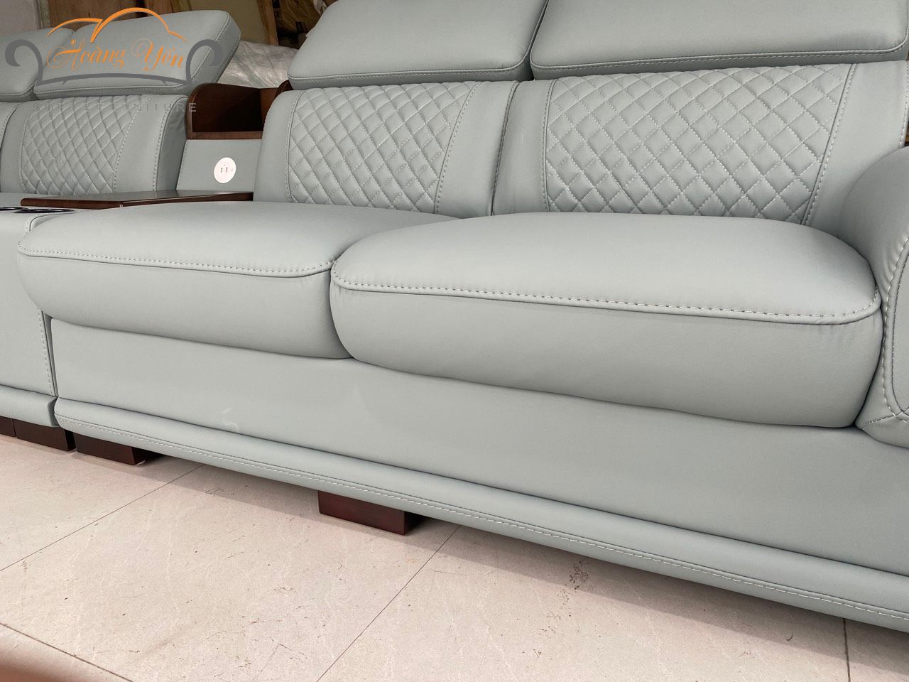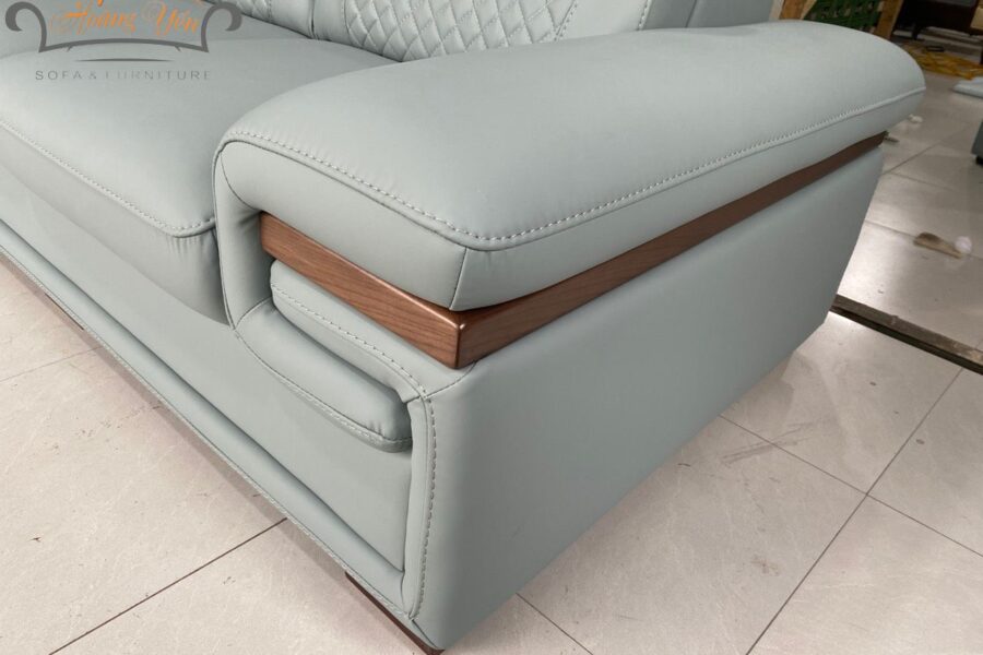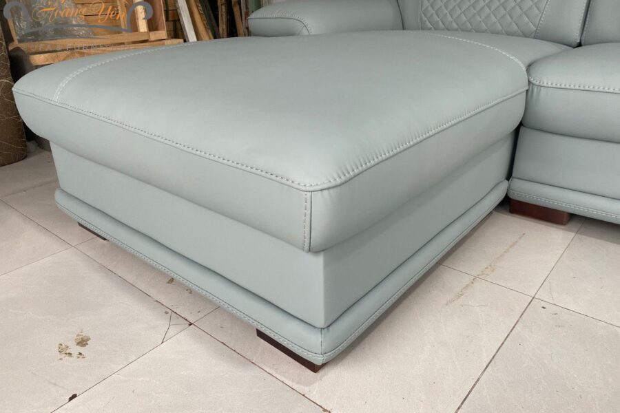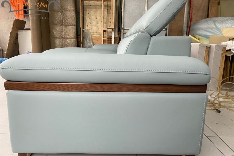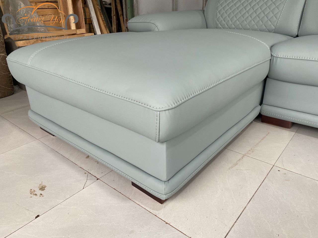 Sofa da góc L SHY354 có màu xanh nhạt, là tông màu sáng, giúp phòng khách trở nên sáng sủa và rộng rãi hơn.