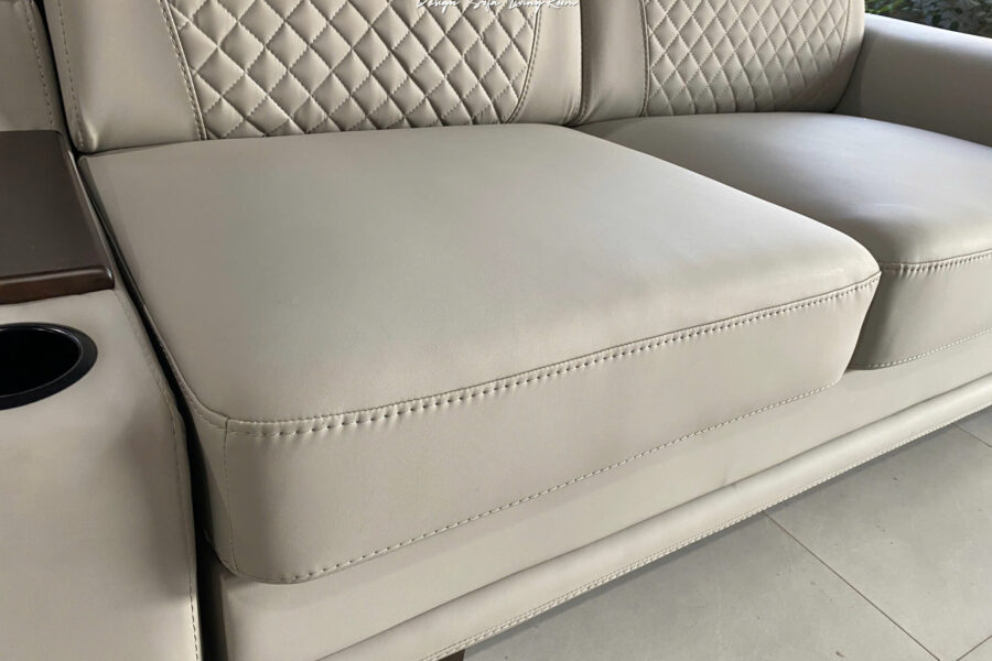 Đệm ngồi được thiết kế phẳng, dày và vuông vức, chia khoang rõ rệt theo từng vị trí ngồi.