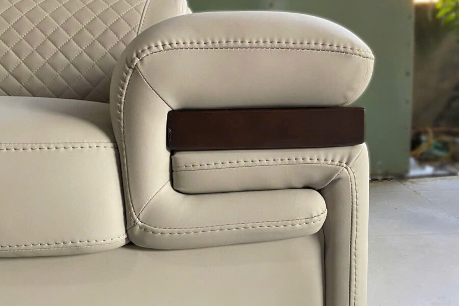 Chỉ may thẳng làm tổng thể bộ sofa rất chỉn chu, gợi cảm giác mạnh mẽ và tinh tế.