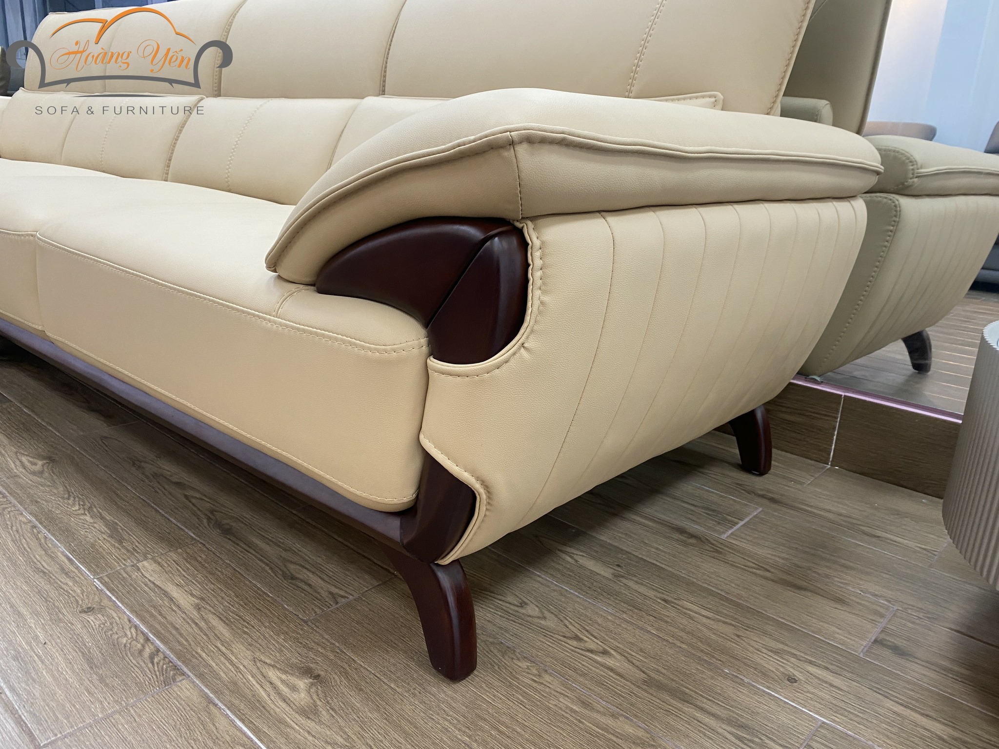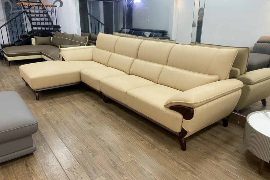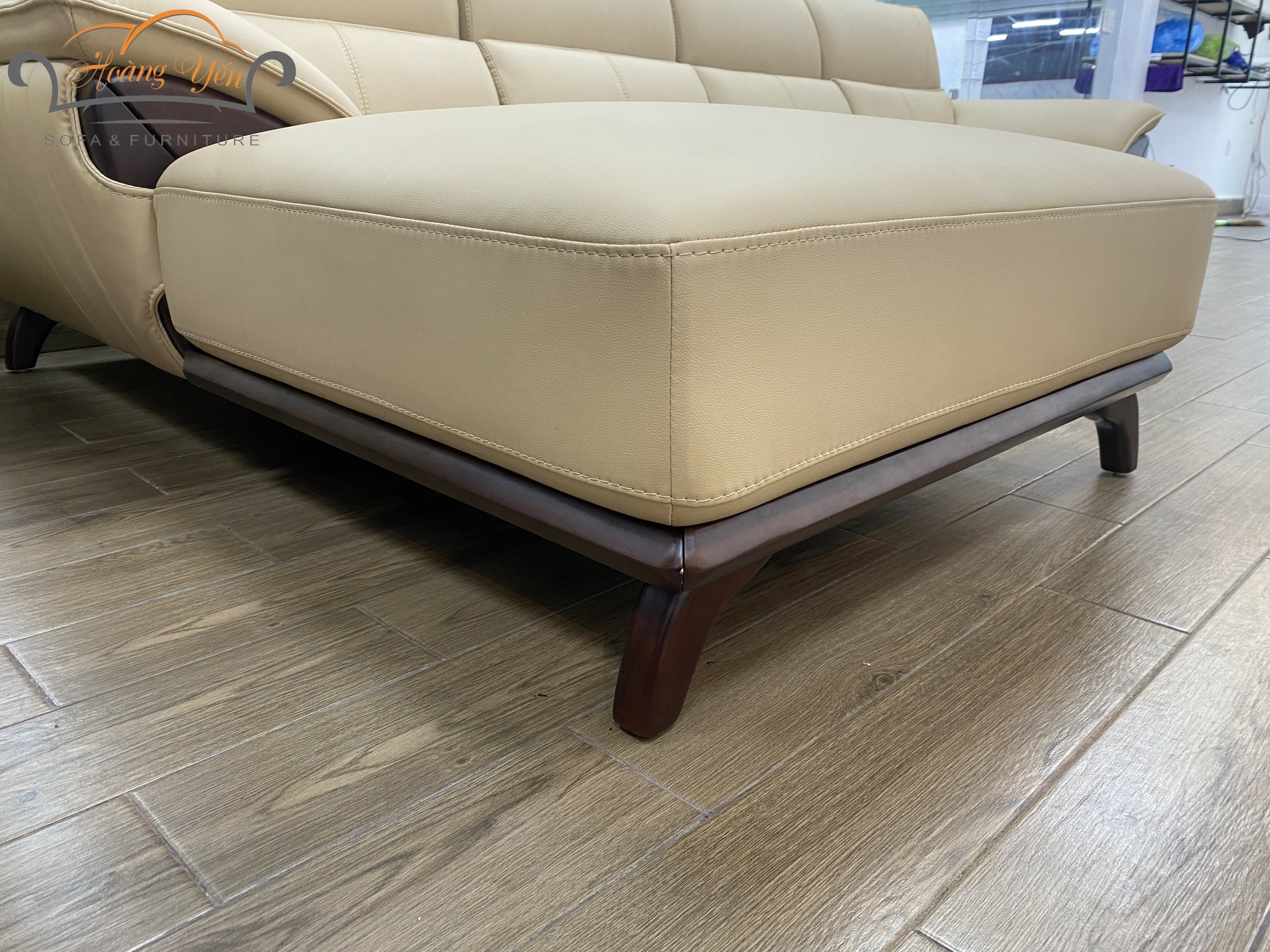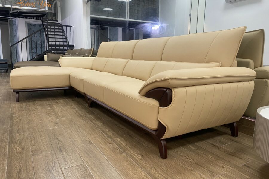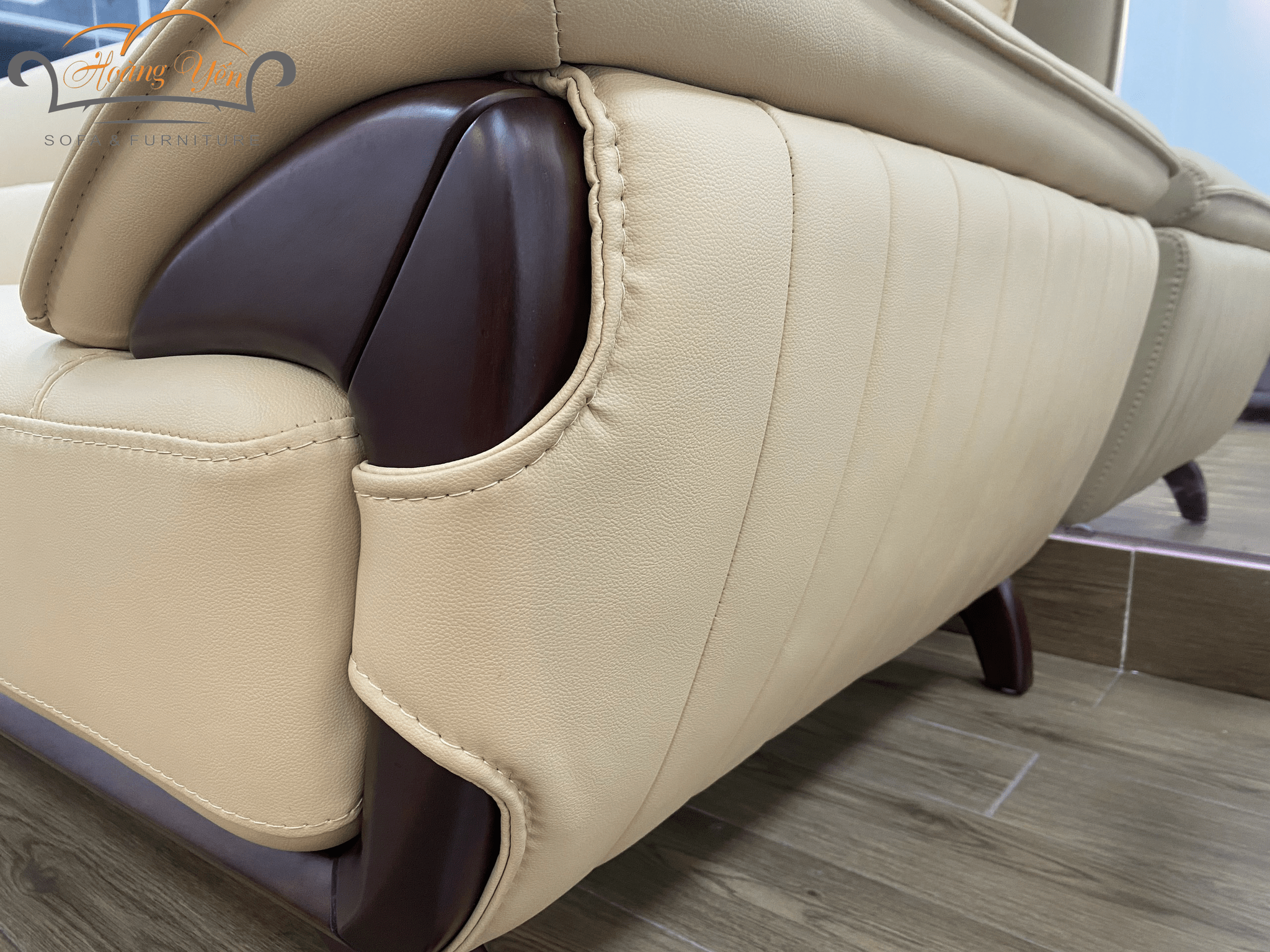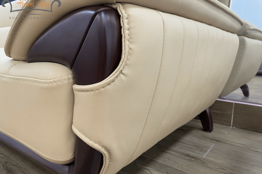 Điều đặc biệt nữa của sofa da góc L SHY360 đó là có phần viền gỗ chạy dọc theo chân ghế, làm bộ sofa thêm thẩm mĩ và sang trọng hơn.