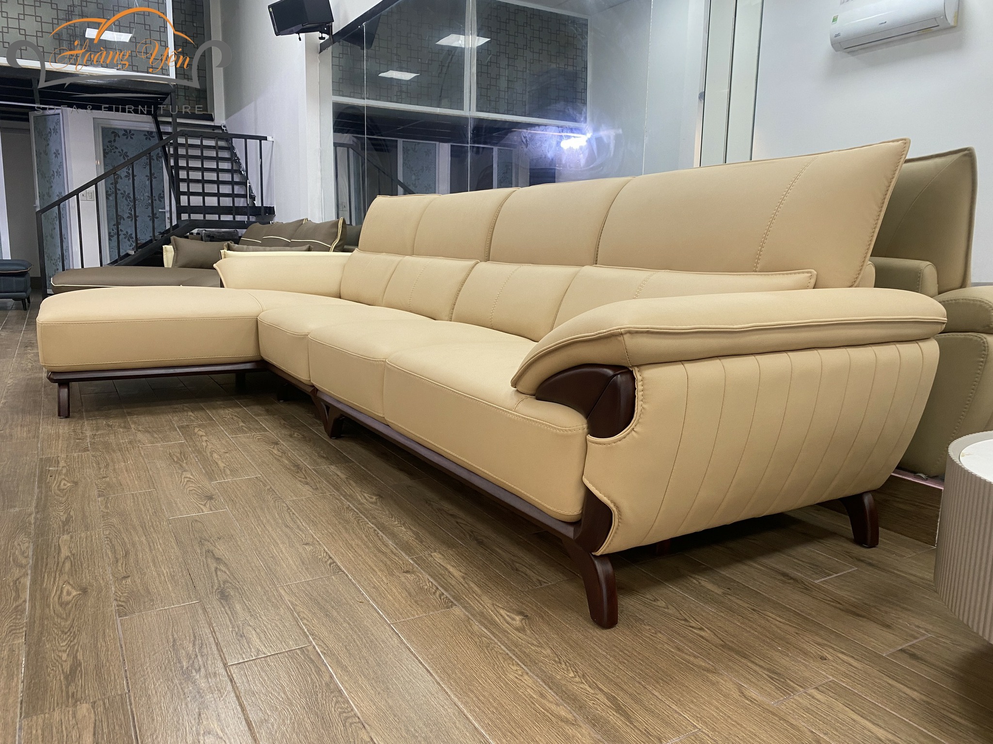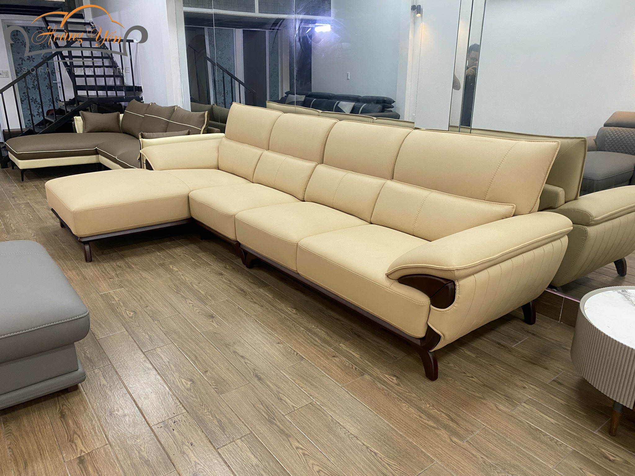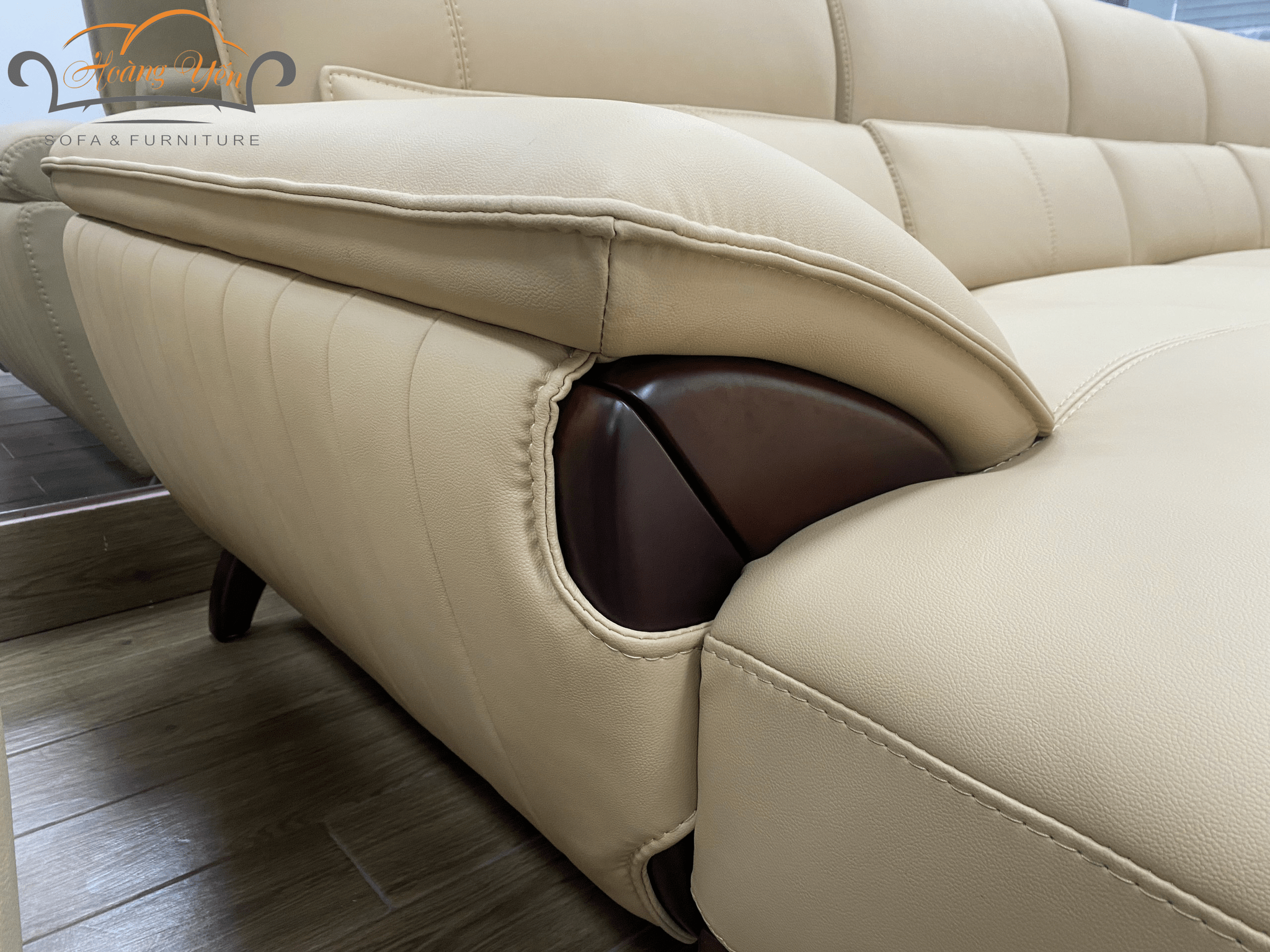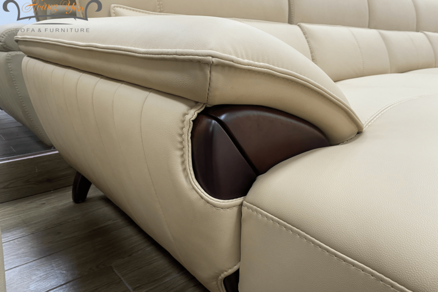Điều đặc biệt nữa của sofa da góc L SHY360 đó là có phần viền gỗ chạy dọc theo chân ghế, làm bộ sofa thêm thẩm mĩ và sang trọng hơn.