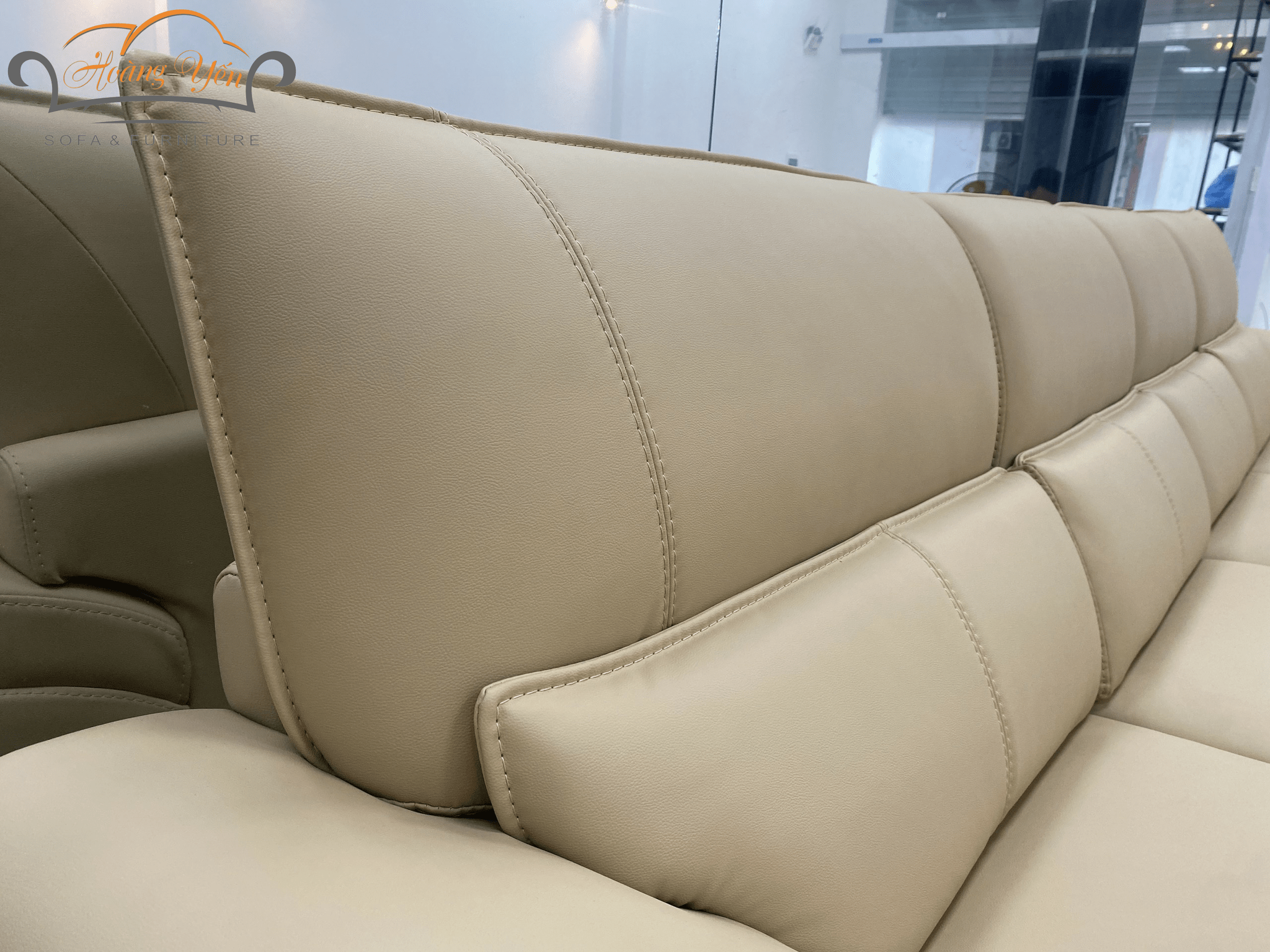Sofa da SHY360 màu kem, tông màu sáng giúp nhà sáng sủa hơn.