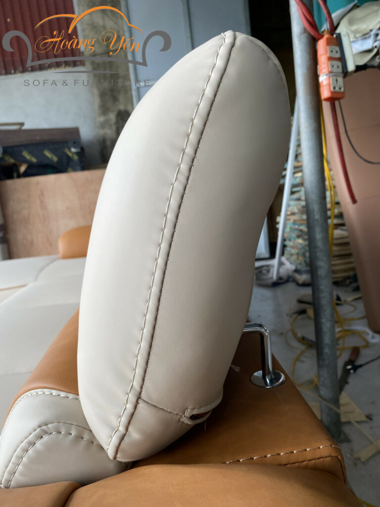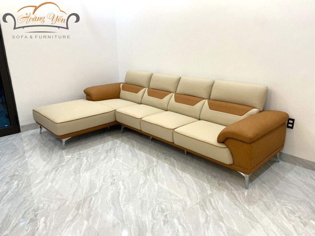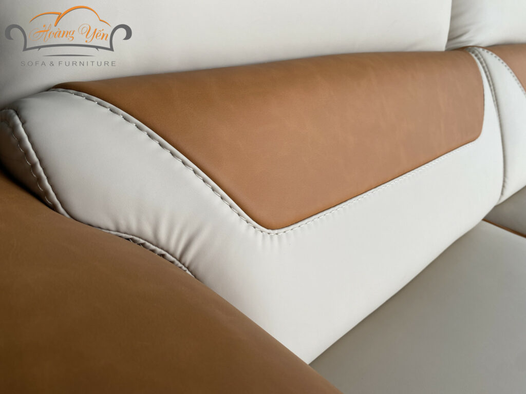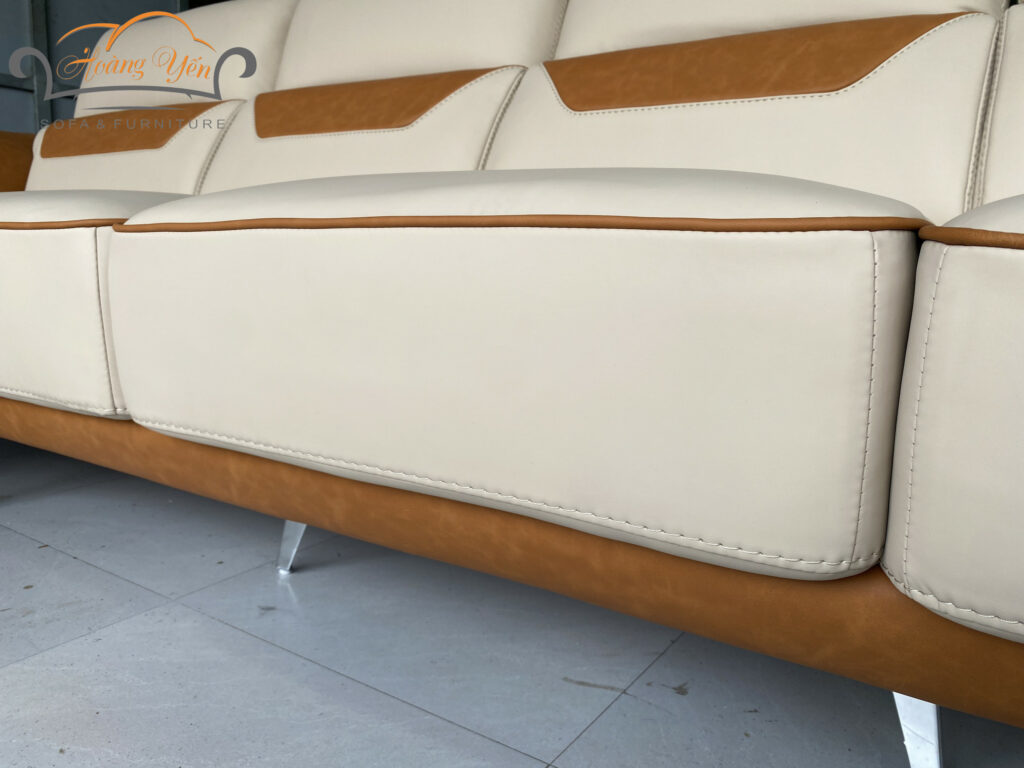 Điều đặc biệt của sofa này là sự đan xen giữa 2 màu cam nâu và kem sáng vô cùng nổi bật, tạo điểm nhấn cho phòng khách thêm thẩm mỹ hơn.