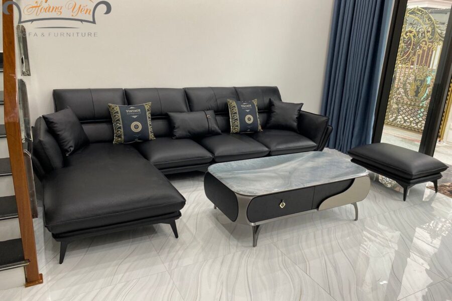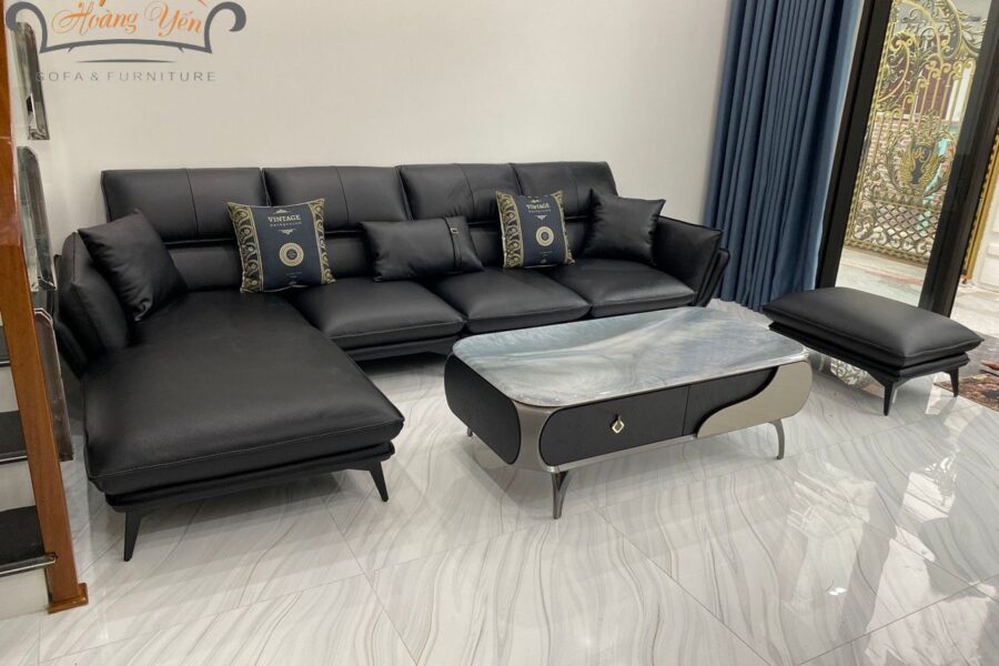Sofa da góc L SHY391 là một mẫu sofa góc L màu đen mới nhất hiện nay.