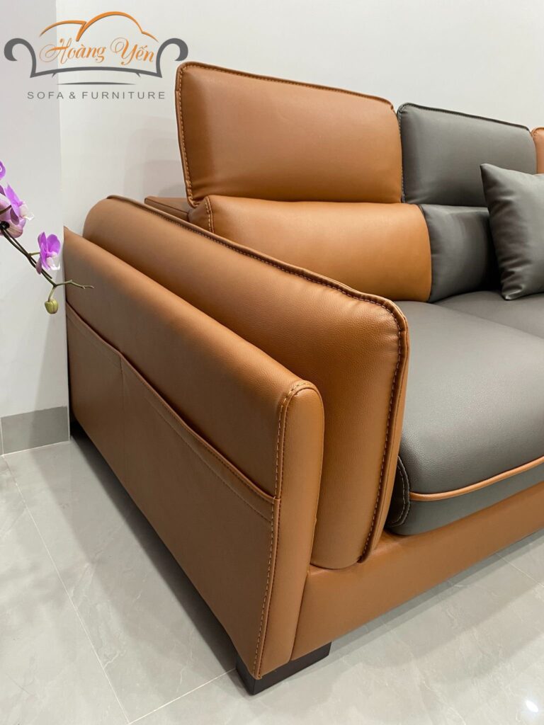 Sofa da đẹp SHY402 được phối hai màu tinh tế, hiện đại, tạo chiều sâu thị giác.
