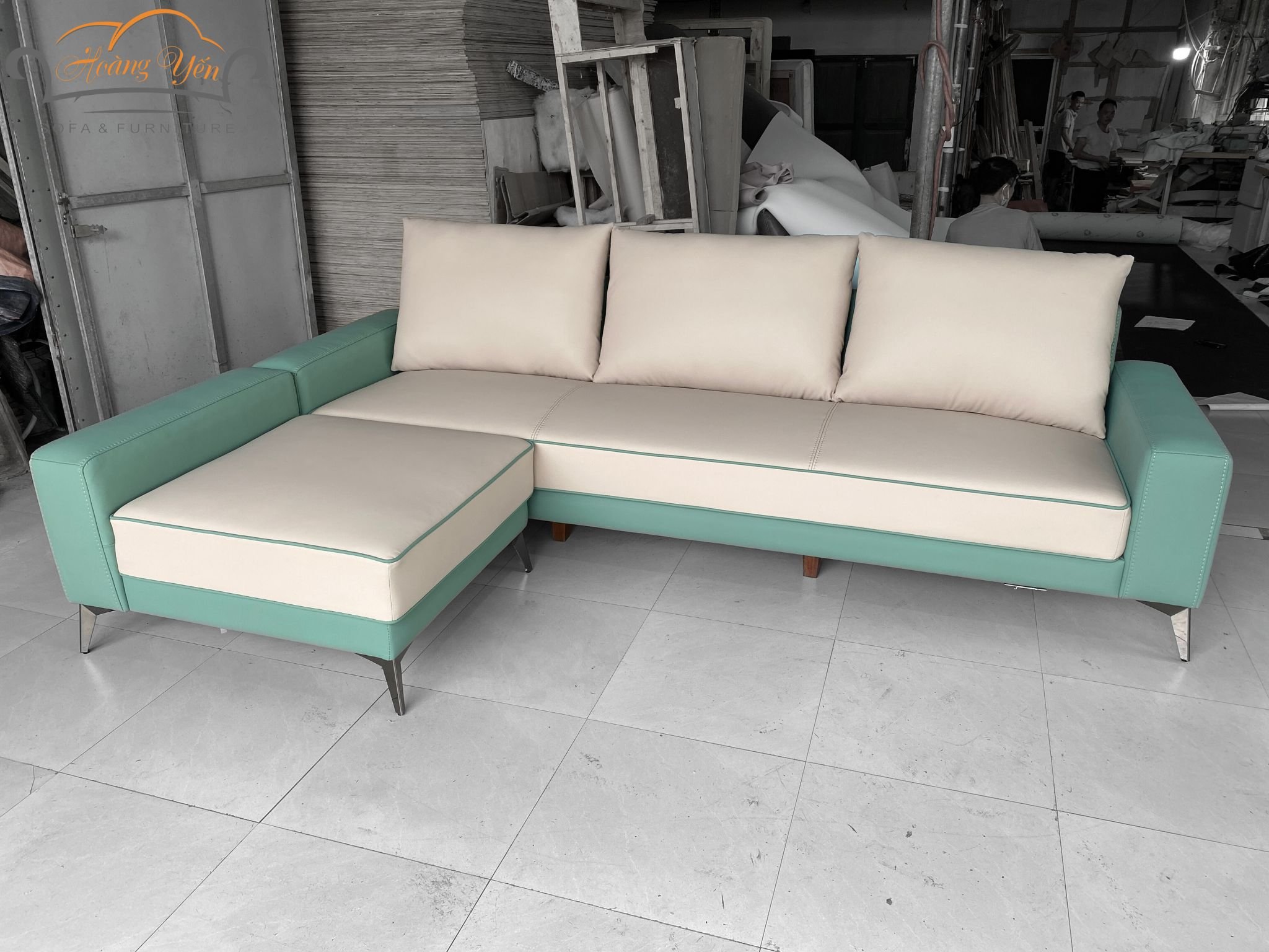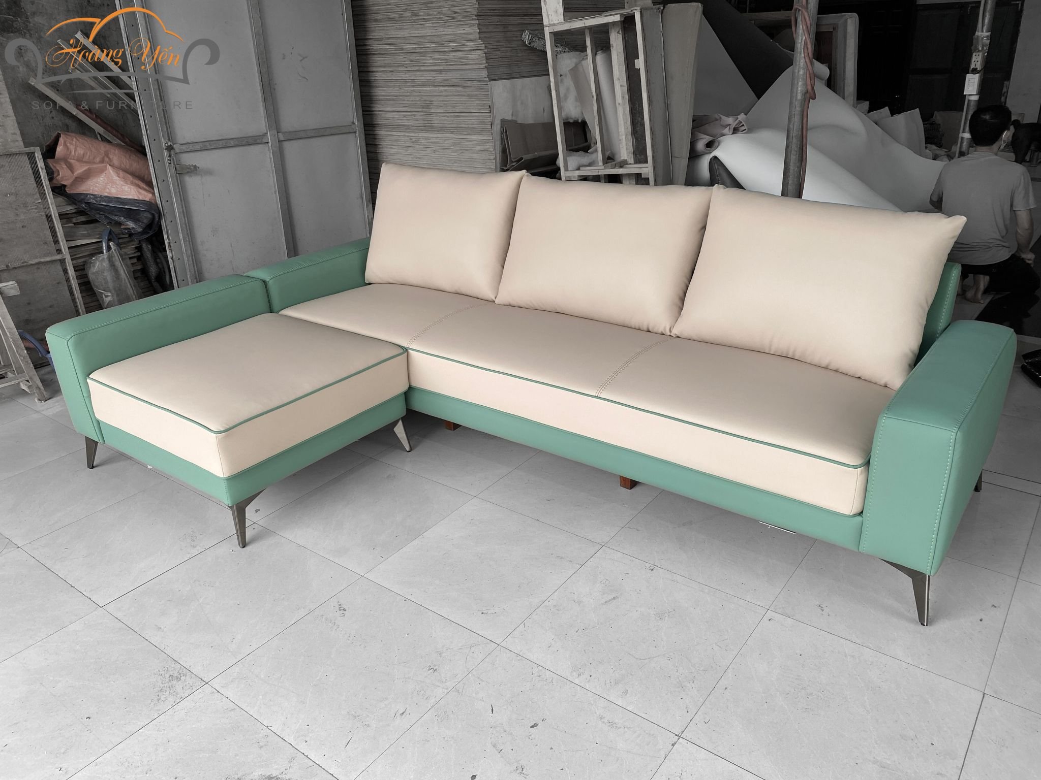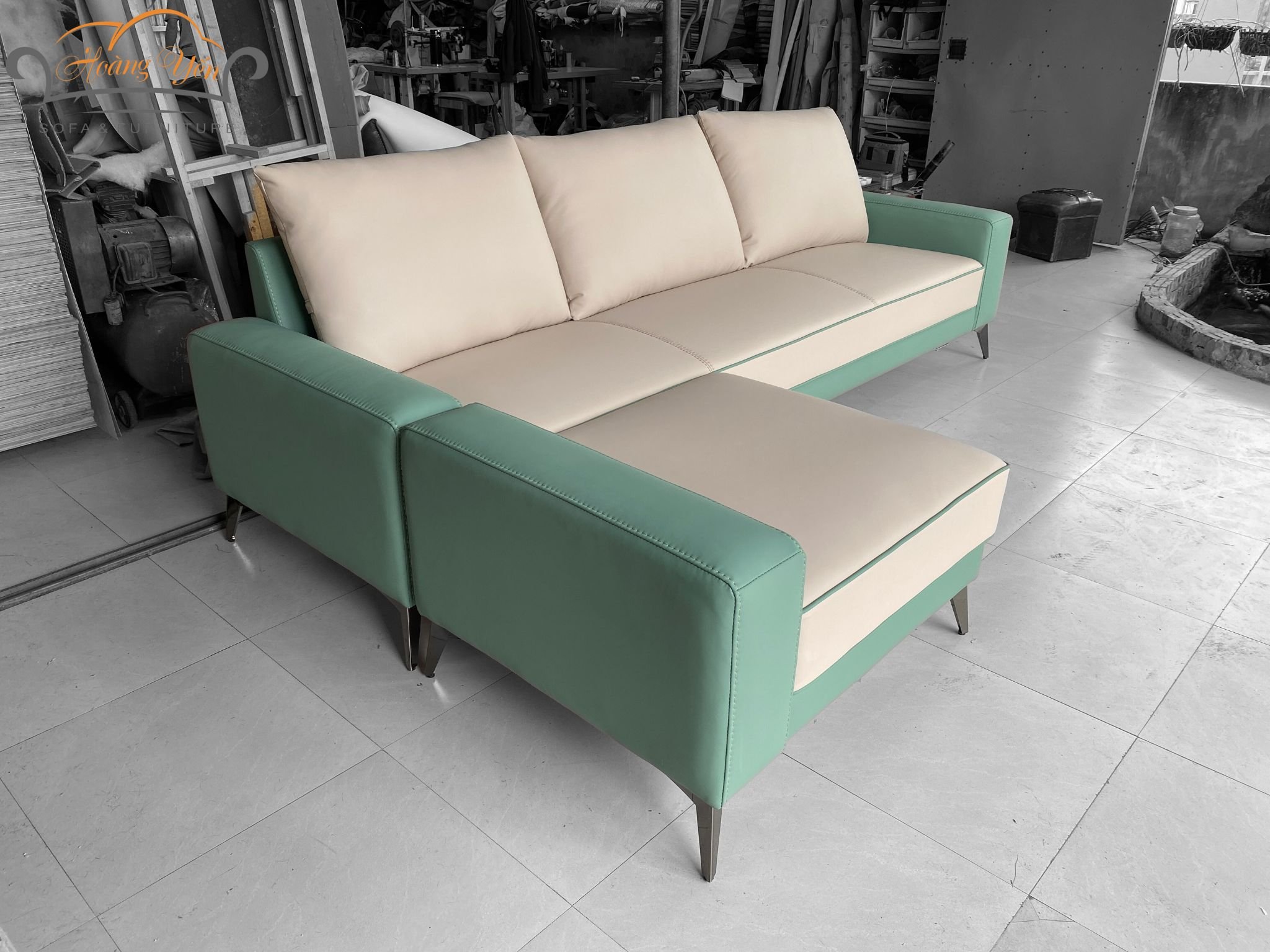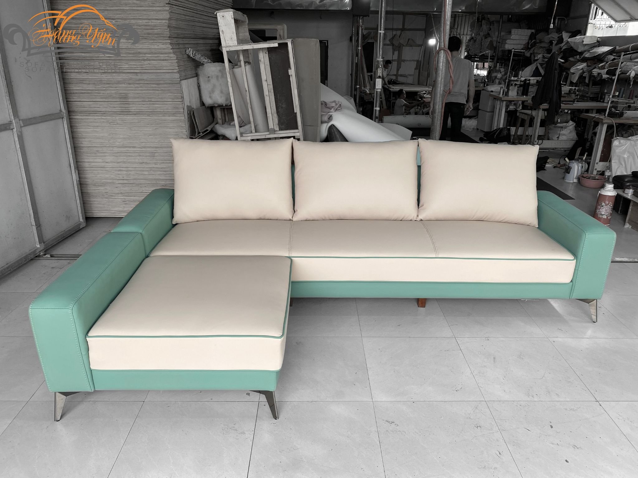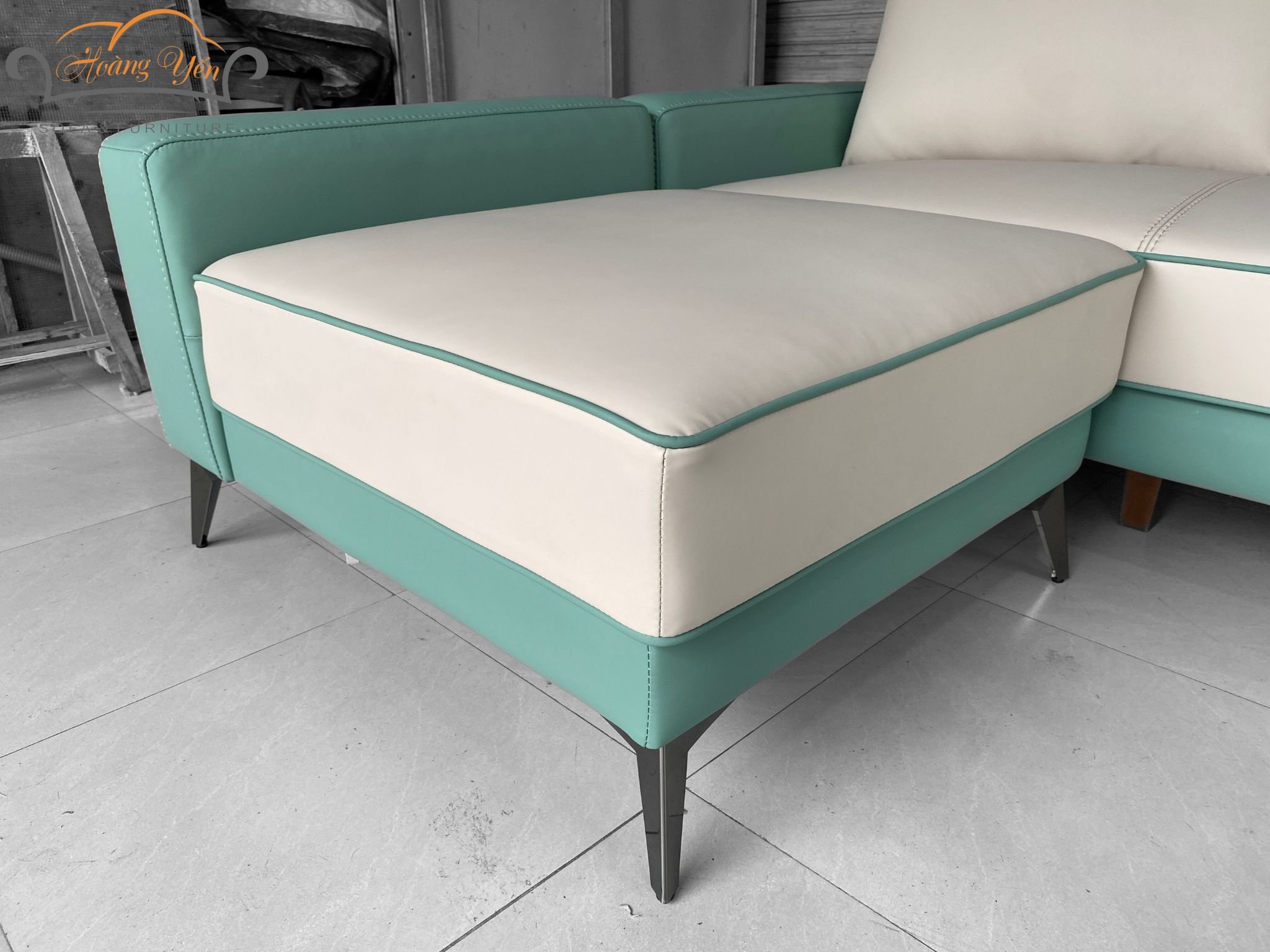 Sofa da góc L SHY404 pha trộn giữa 2 màu sắc trẻ trung, thiết kế dạng góc tối ưu diện tích.