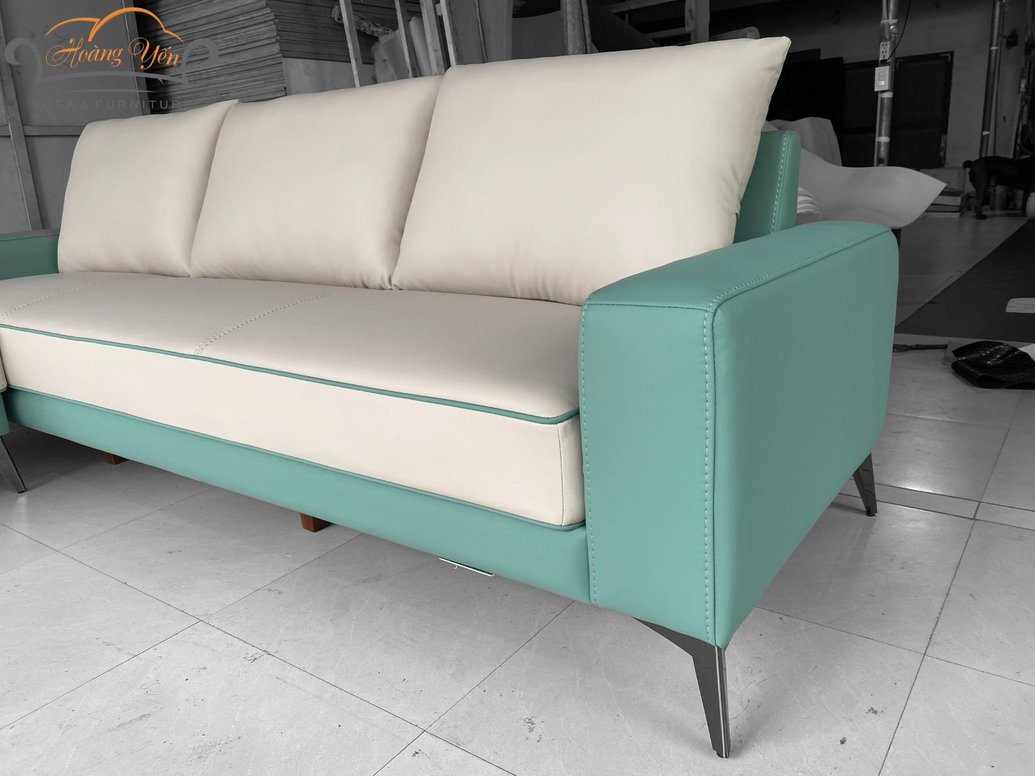 Sofa da thanh lịch, tông màu dịu mát, rất phù hợp với khí hậu nhiệt đới hoặc không gian cần “refresh”.