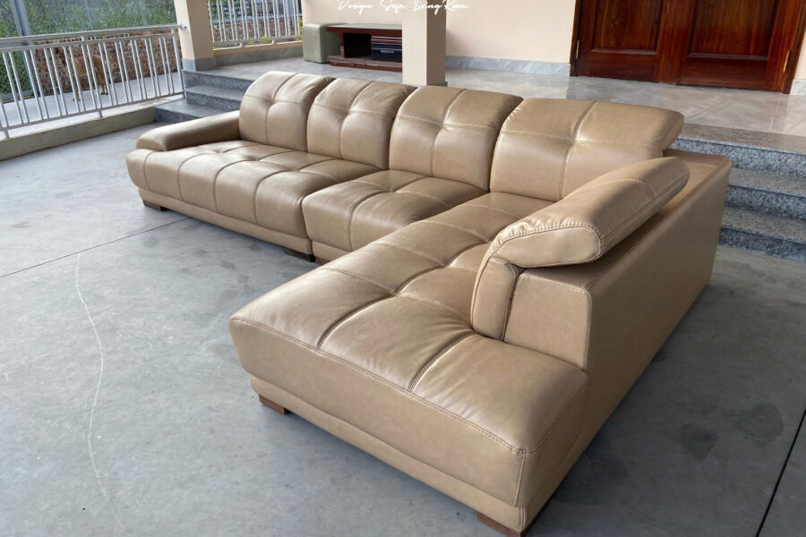 Sofa da góc L SHY418 be loang nhã nhặn, một sắc độ trung tính, tạo chiều sâu thị giác.
