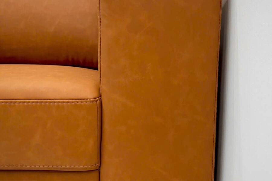 Hông ghế liền khối với tay, đồng màu cam đất, mang lại cảm giác chắc chắn, liền lạc và mạnh mẽ.