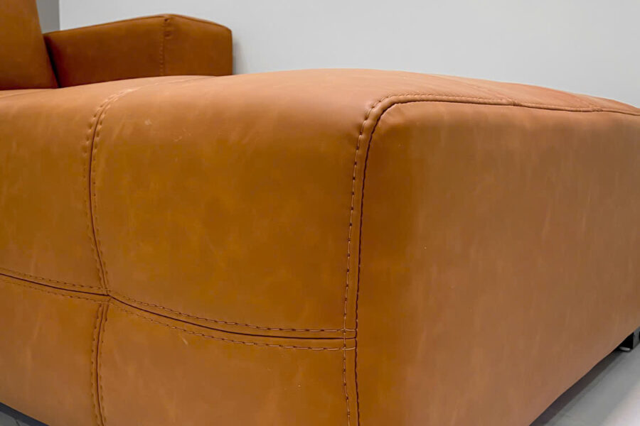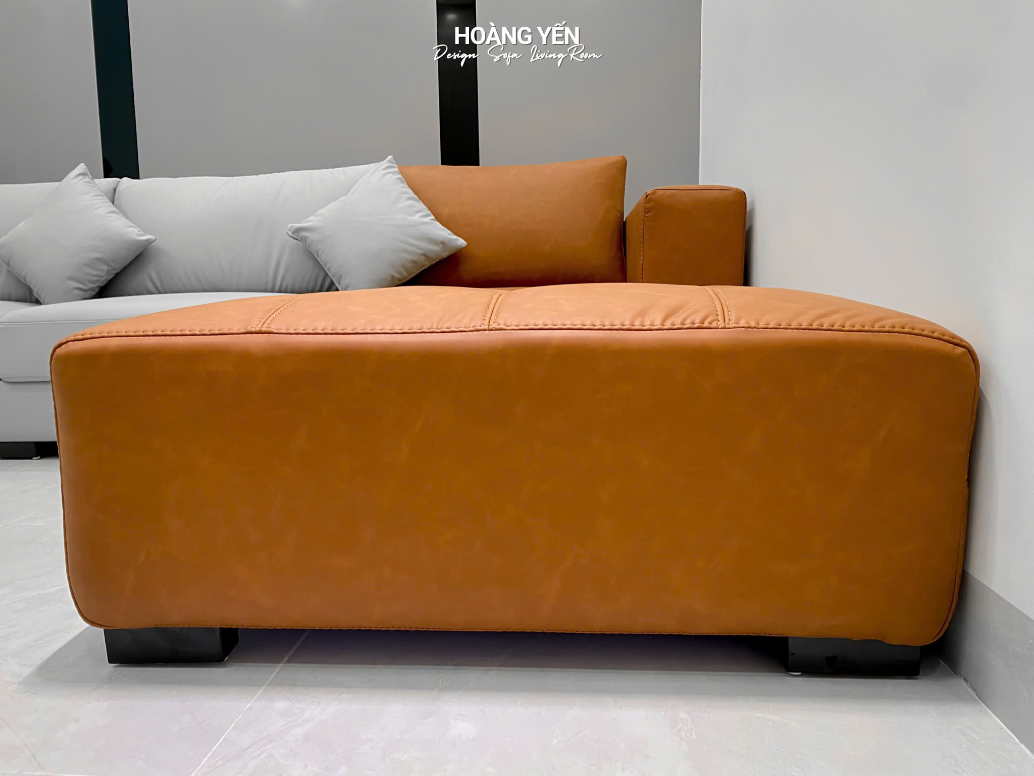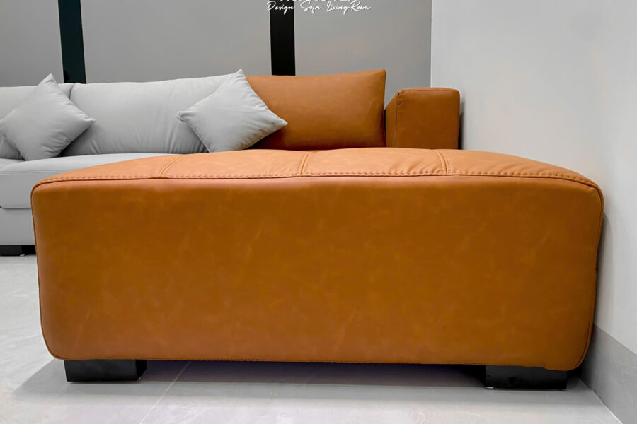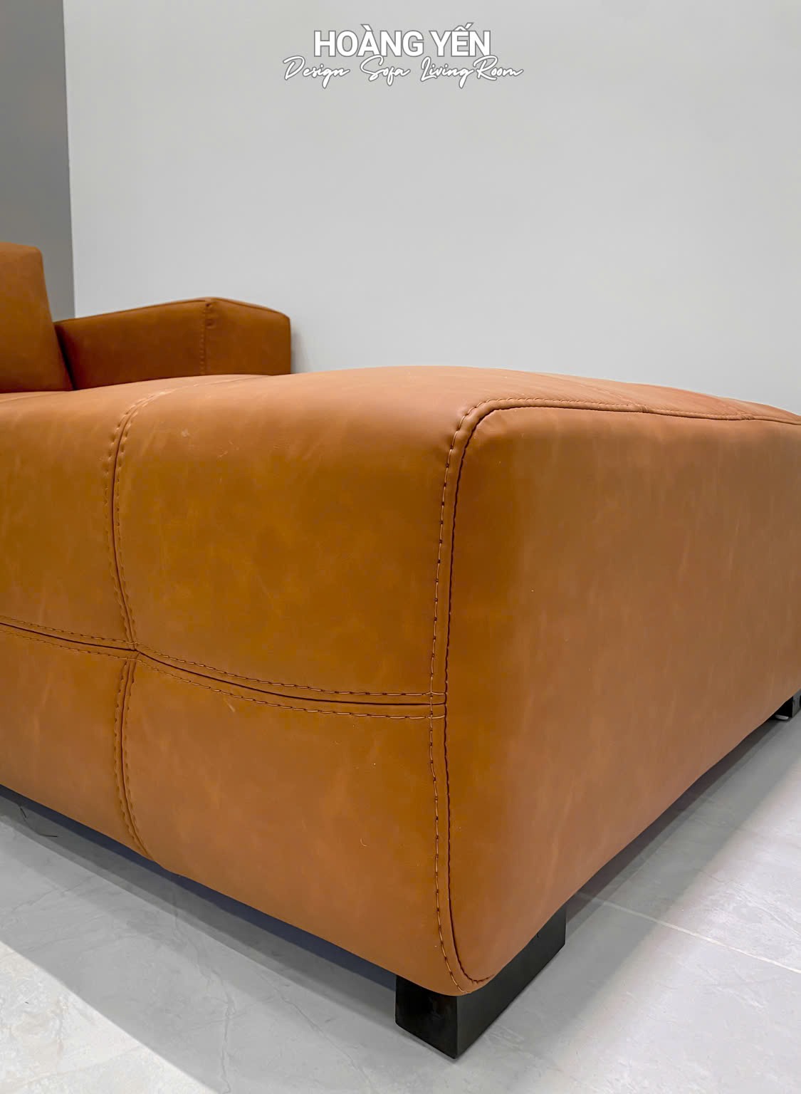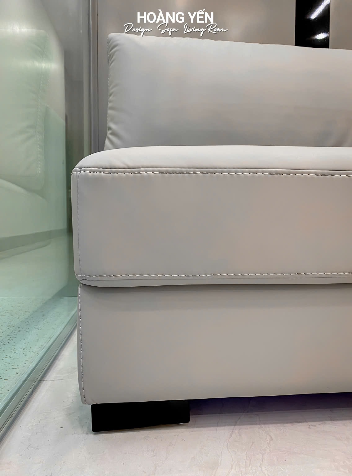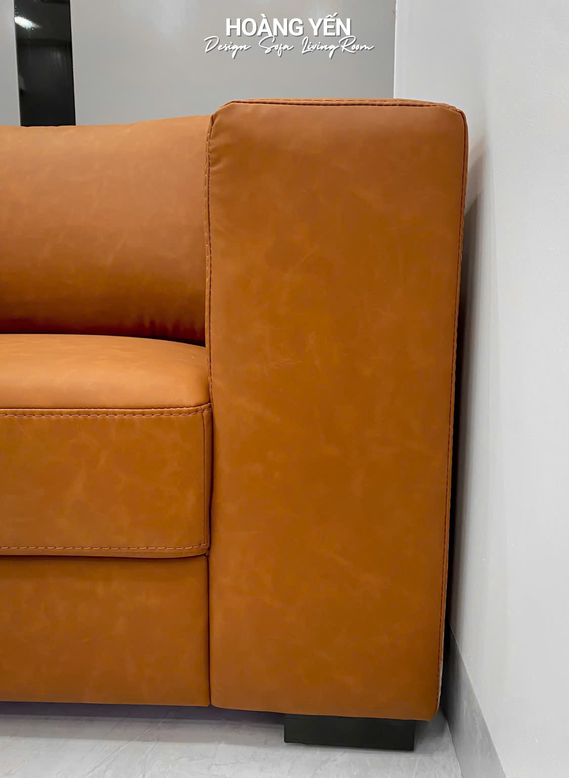 Sofa da có một tay ghế có độ dày lớn, bo tròn nhẹ các góc cạnh, tạo sự mềm mại vừa đủ nhưng vẫn giữ dáng khỏe.